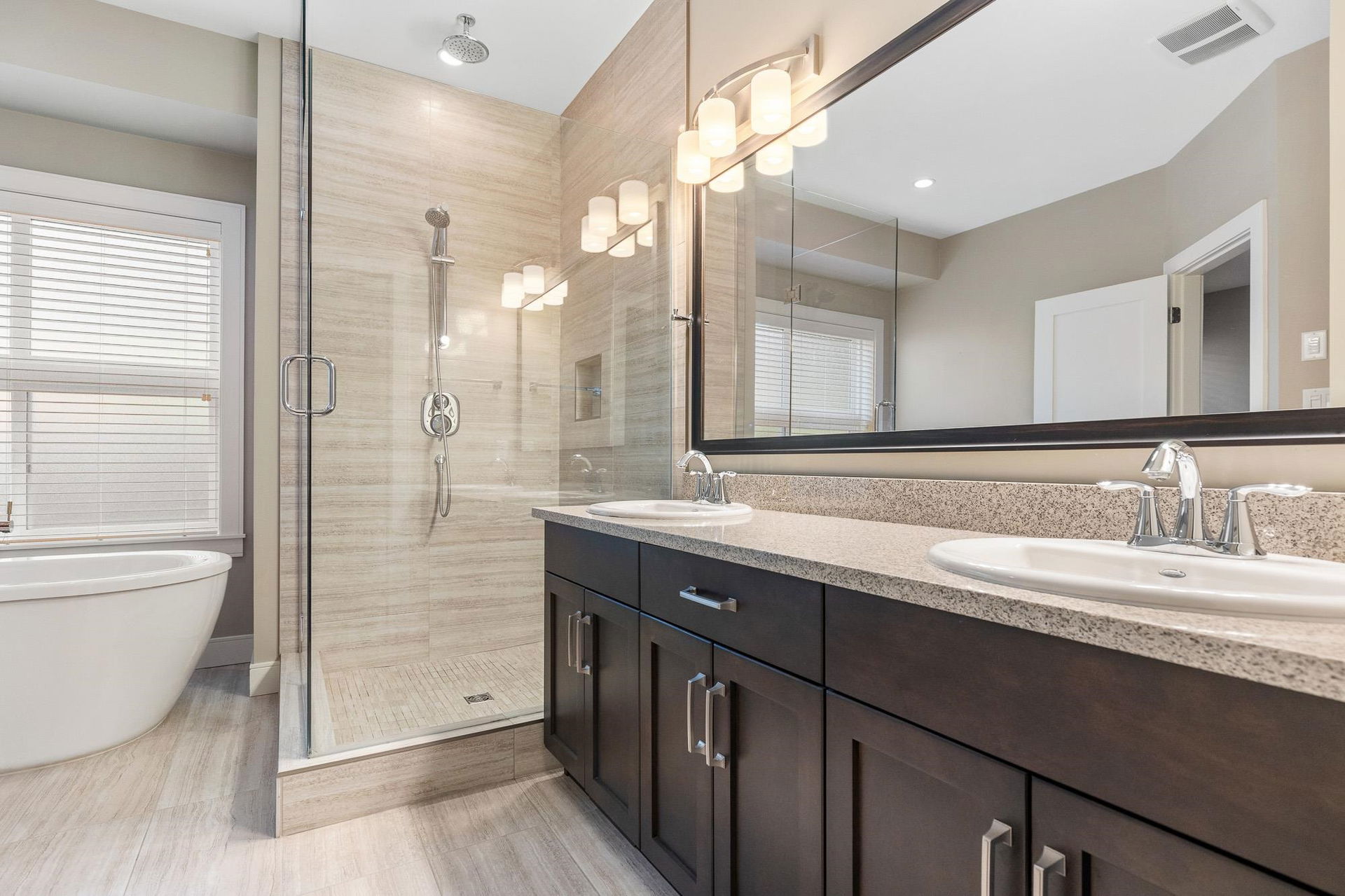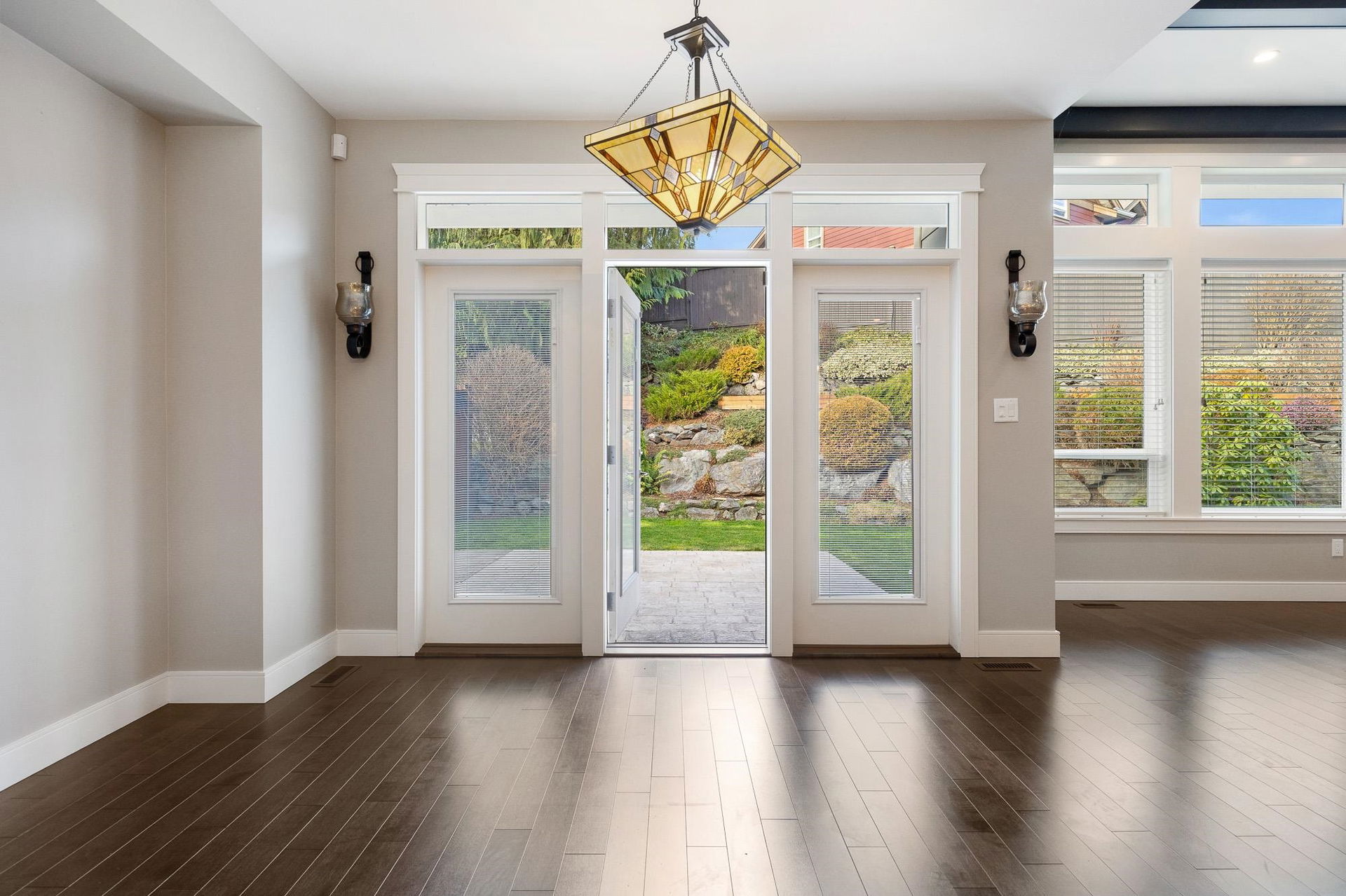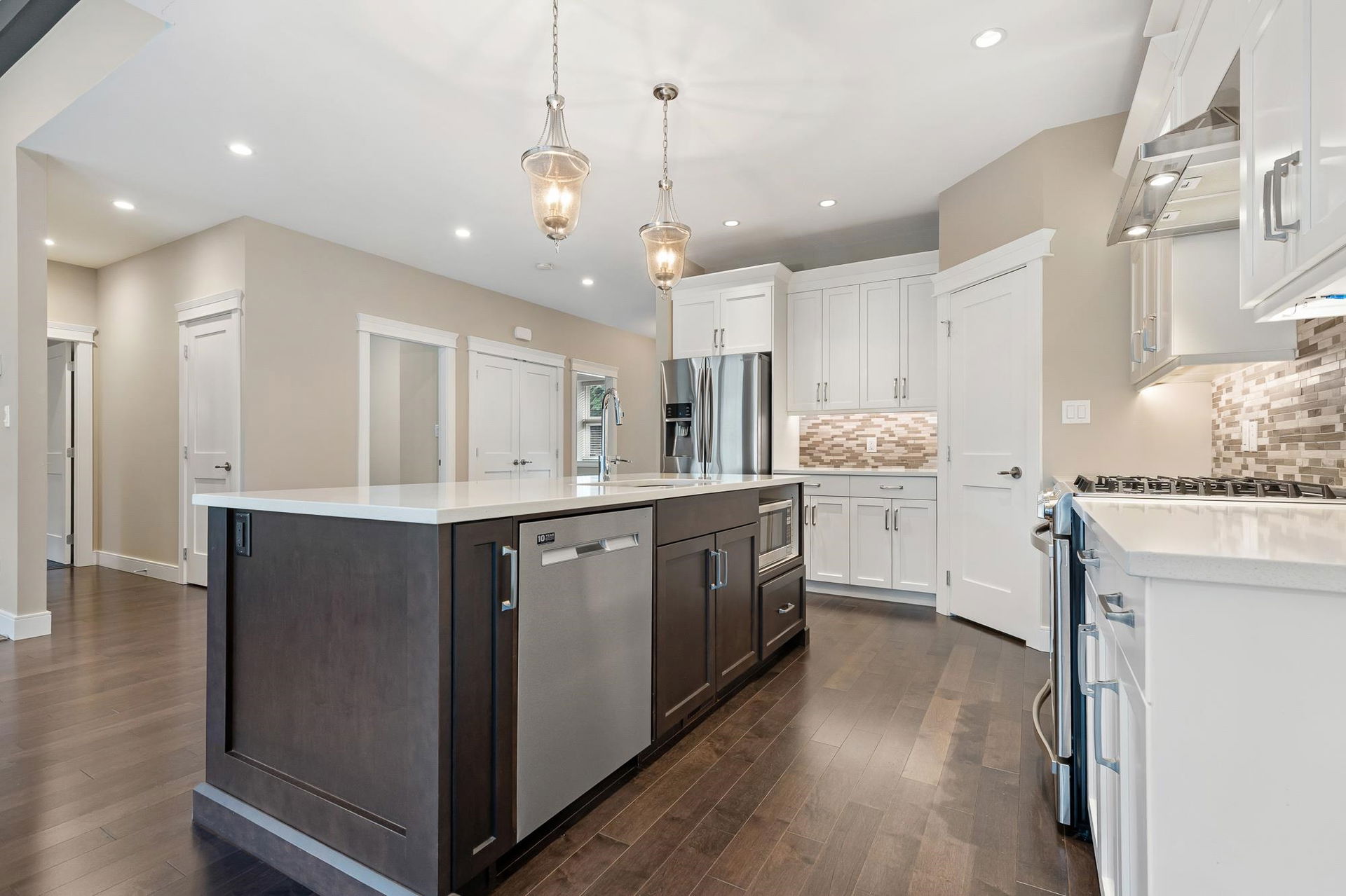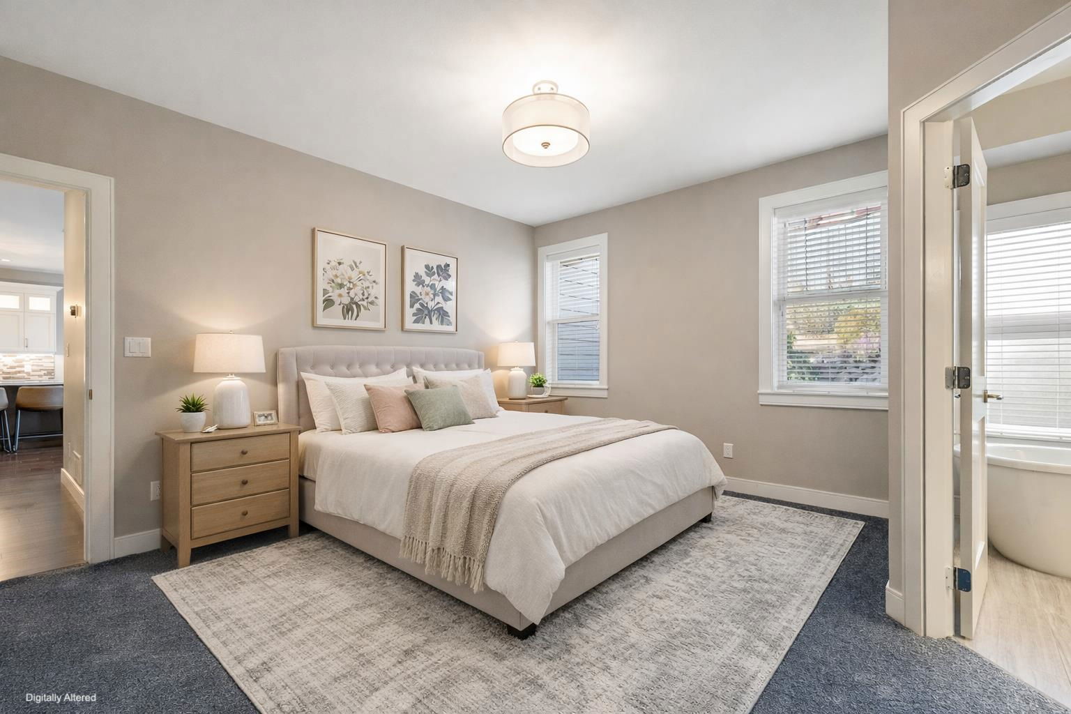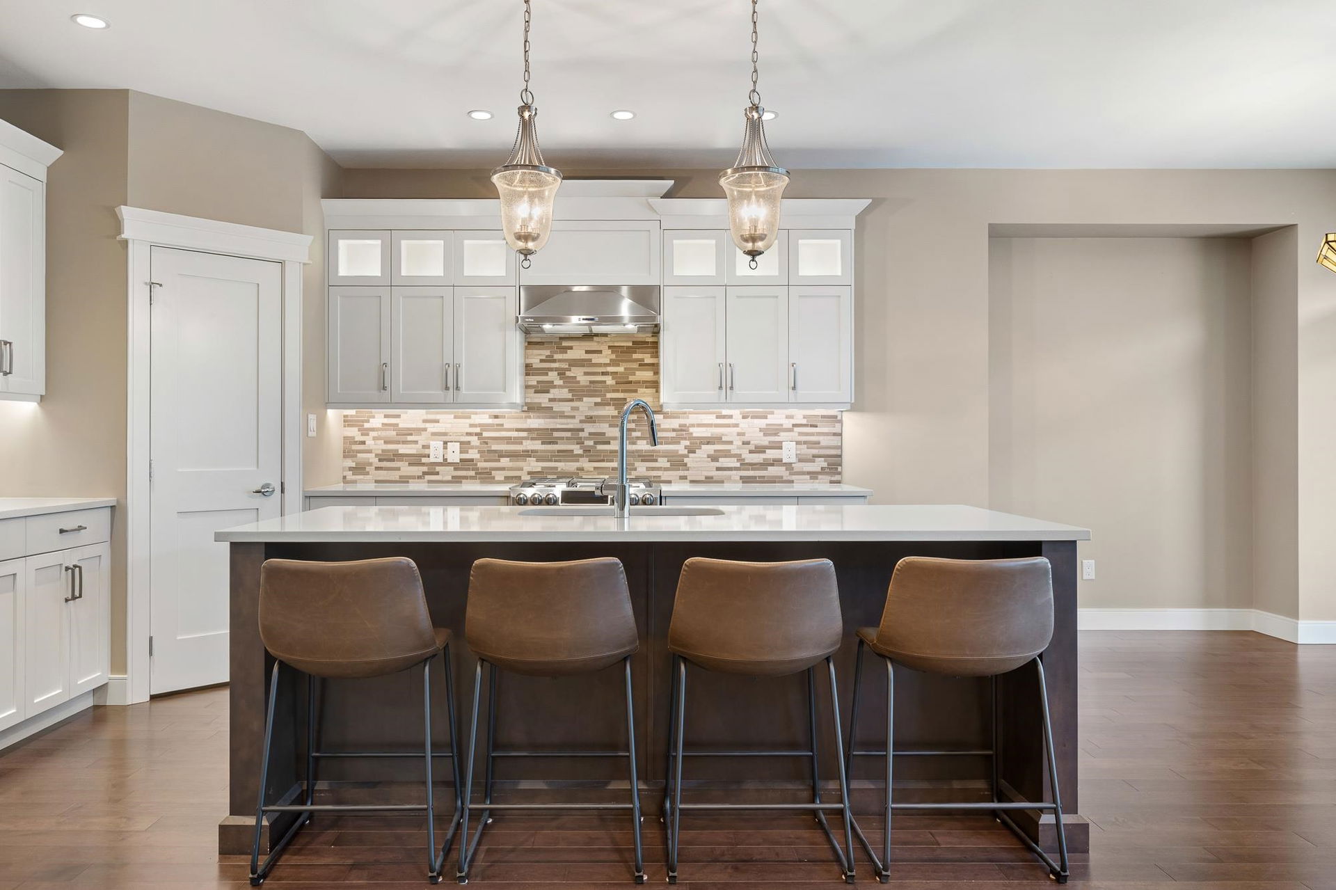 SPECTACULAR rancher in the sought-after Riverstone Estates community! This wheelchair accessible home offers an impressive open concept layout w/hardwood floors throughout. The spacious kitchen features a pantry, high-end SS appliances, gas range, quartz counters, & a generous island w/eating bar, flowing seamlessly into the dining & living areas — IDEAL for entertaining. Enjoy the serene back patio & private fenced yard. The living room boasts vaulted 9’ ceiling w/beams, gas f/p, & MASSIVE windows allowing for TONS of natural light. The primary bedroom features a W.I.C. & spa-like 5 pc ensuite w/dual sinks, glass W.I. shower & sep. soaker tub. Additional bedroom, office/hobby space, DBL garage, PLUS carport w/fence for added security. BONUS: triple-width DW w/space for a 40+ ft RV!