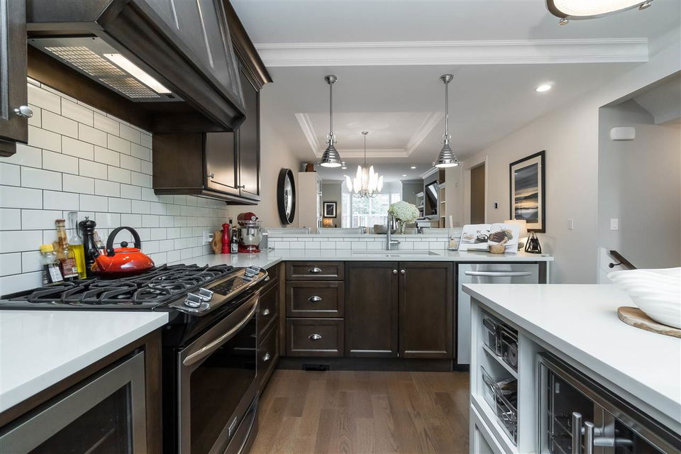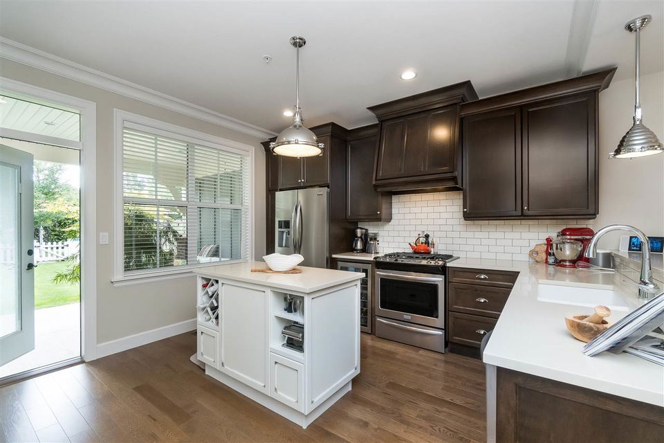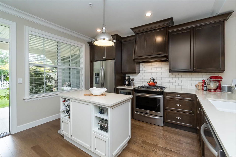 PREMIER LOCATION @ Brixton Station’s Best Address- PENNY LANE! Master crafted by Algra Brothers, this 1944 sq ft END UNIT home is LOADED w/ extras- HARDWOOD FLOORS, b.i. speakers, AIR CONDITIONING, soundproof concrete common walls- you name it. Spacious and BRIGHT living room featuring fireplace w/ built in custom bookshelves. RARE den on main floor w/ views of the tree lines boardwalk. AMAZING KITCHEN w/ quartz counters, tiled backsplash, high end SS appliances incl. GAS RANGE & b.i. wine fridge. Upstairs you’ll find a huge msater bedroom w/ 5 piece spa like ensuite w/ soaker tub & glass tiled walk in shower. Finished bsmt w/ rec room, storage, & access to your ENCLOSED PRIVATE DOUBLE GARAGE. Large covered patio w/ gas hookups & the BIGGEST & most PRIVATE YARD IN COMPLEX.