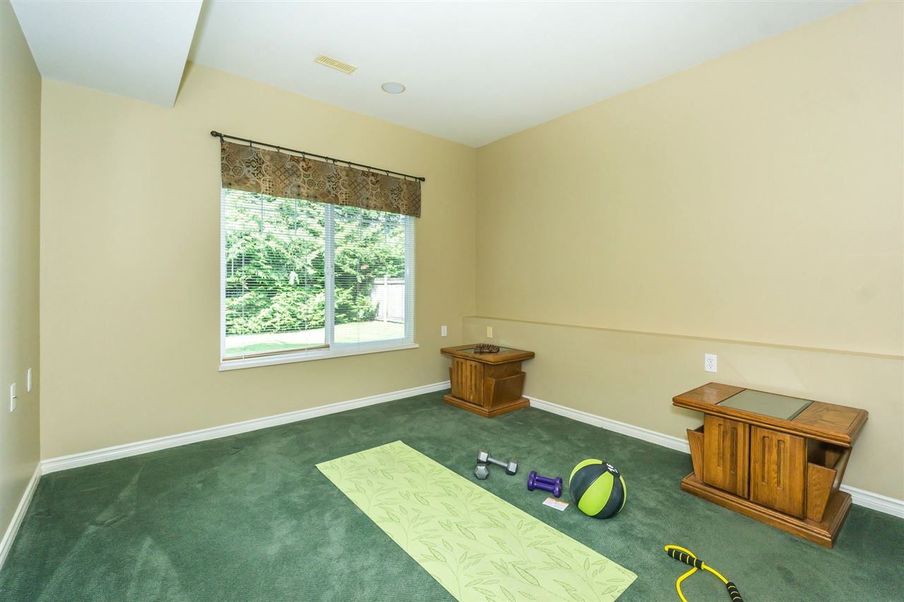 Gated Community 19+ Stunning RANCHER w/ Walk Out Basement. Best location! Right next to the community club house which is equipped with a games room, pool table and full kitchen for events! Your private patio and backyard boast peace and serenity while backing protecting greenspace. Master on the main w/ a custom closet system, full ensuite with a soaker tub and walk in shower. This main floor has everything you need, including 2 living rooms, both with gas fireplaces. Great entertaining space in your basement rec room with built in speakers. Basement also features 2 bedrooms, full bathroom, laundry room and HUGE storage area. Extra features include new hot water tank, AC, crown mouldings, b.i vaccume and security system and RV PARKING! Pets welcome