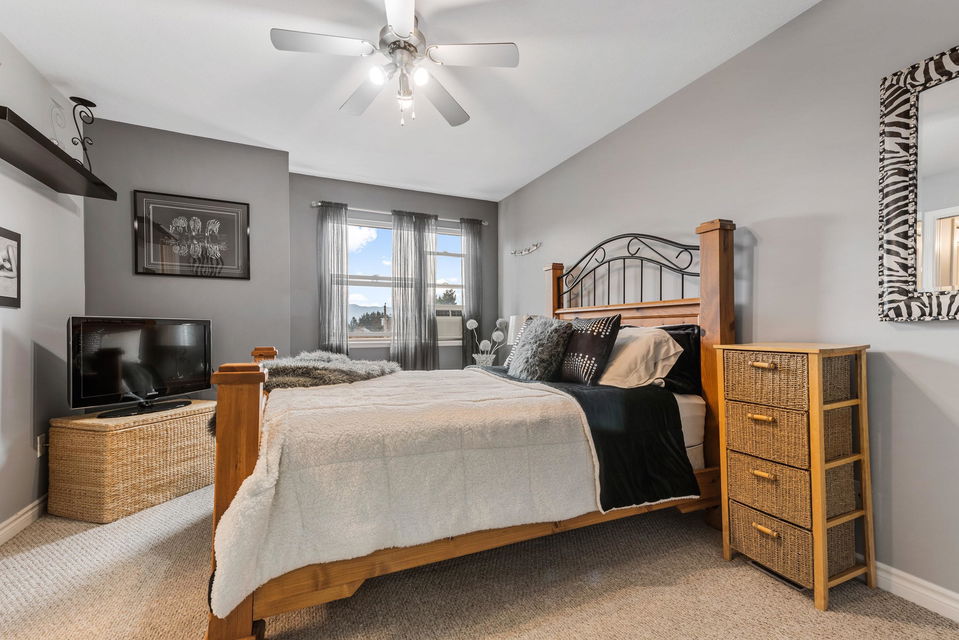 BEAUTIFUL RENOVATED 3 bdrm TOWNHOME @ Eden Park! This centrally located family & pet friendly complex is the perfect place to raise your family. Great location near visitor parking & with a nice FULLY FENCED sunny south facing yard! Main floor w/ modern paint colors & decor, spacious kitchen w/ stylish black appliances, large pantry & eating area that opens up to the covered patio. HUGE living room w/ gas fireplace & ceiling fan. Upper floor w/ 3 bdrms, master feat. 3 piece ensuite & w/i closet. Ground level w/ 2 piece powder room, recreation room, & access to the low maintenance yard w/ river rock & Astroturf. Oversized single garage w/ side storage & storage cabinet. Updated WASHER/DRYER 2021, new hot water tank 2021, & all NEW ROOFS in 2021 as well! OFFERS AS THEY COME!!