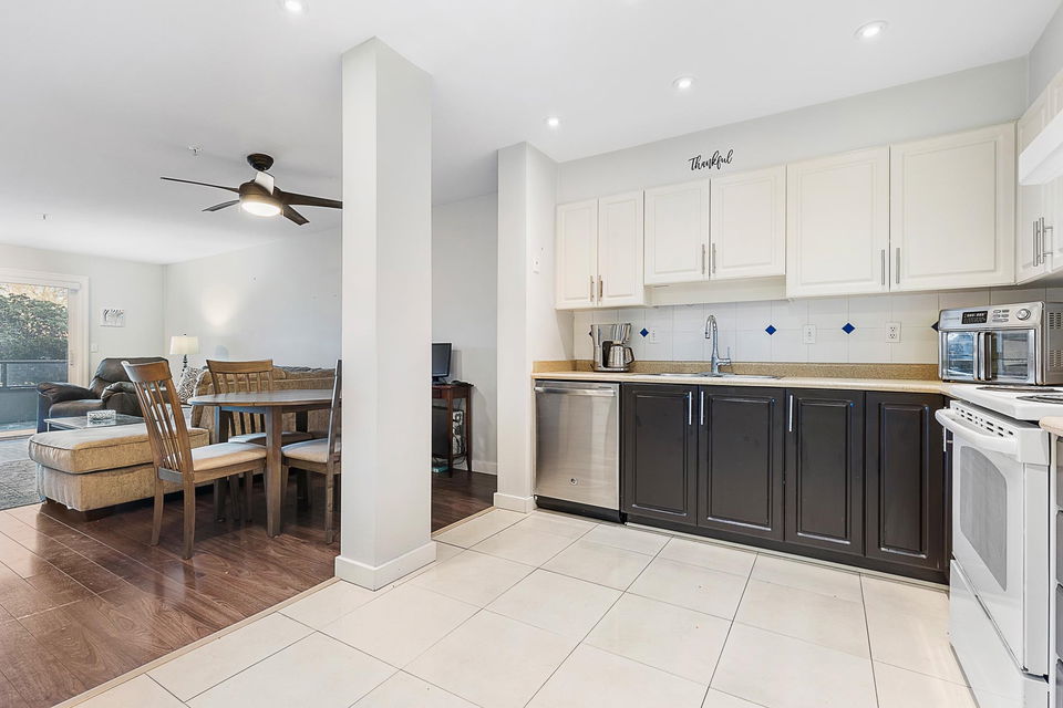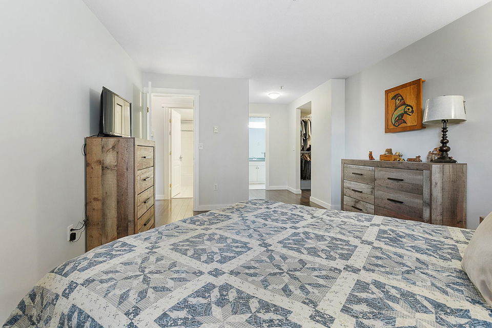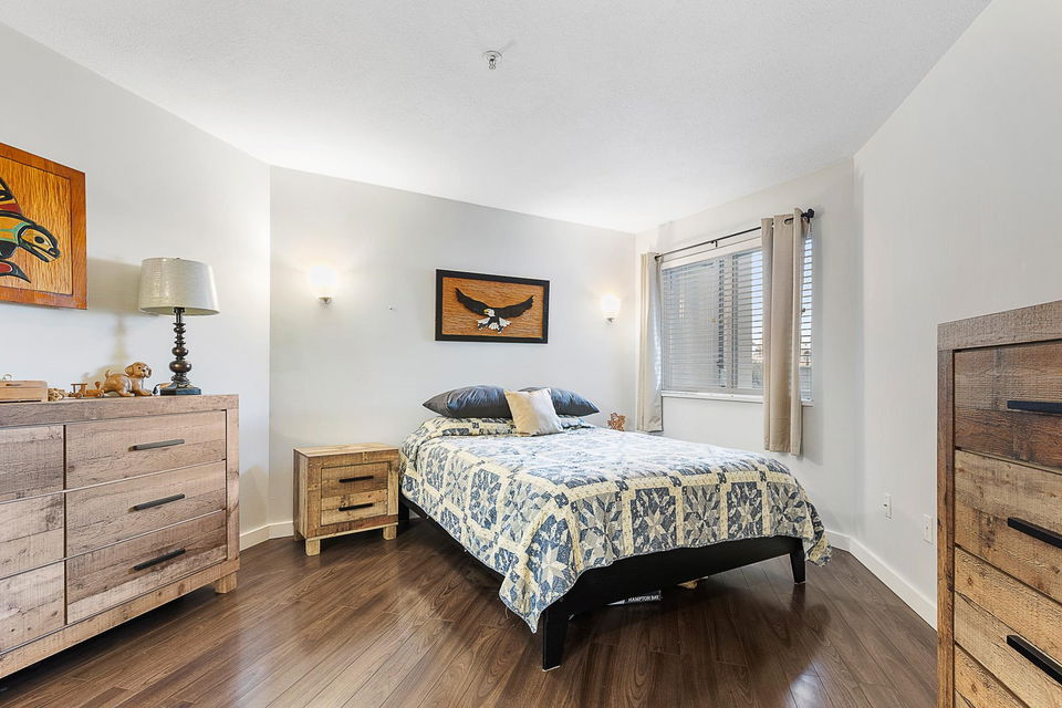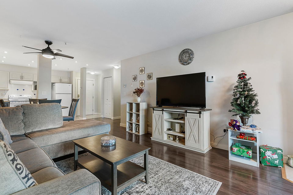 Welcome to Morningside! This well managed, pet & rental friendly building in such a convenient location close to shopping, restaurants & all the great Sardis amenities you need. Located on the first floor near the lobby & mailboxes means you can skip the elevator wait. This open concept floor plan offers two bedrooms, two full baths and separate laundry room. The spacious primary bedroom has a massive walk in closet and ensuite featuring a large soaker tub and lots of counter and storage space. Updated flooring through most of unit and the living area opens to a pleasant outdoor space to enjoy the morning sun. Built-in vacuum, a storage locker, secure underground parking and a guest suite too. Don’t miss out, this unit wont last long!