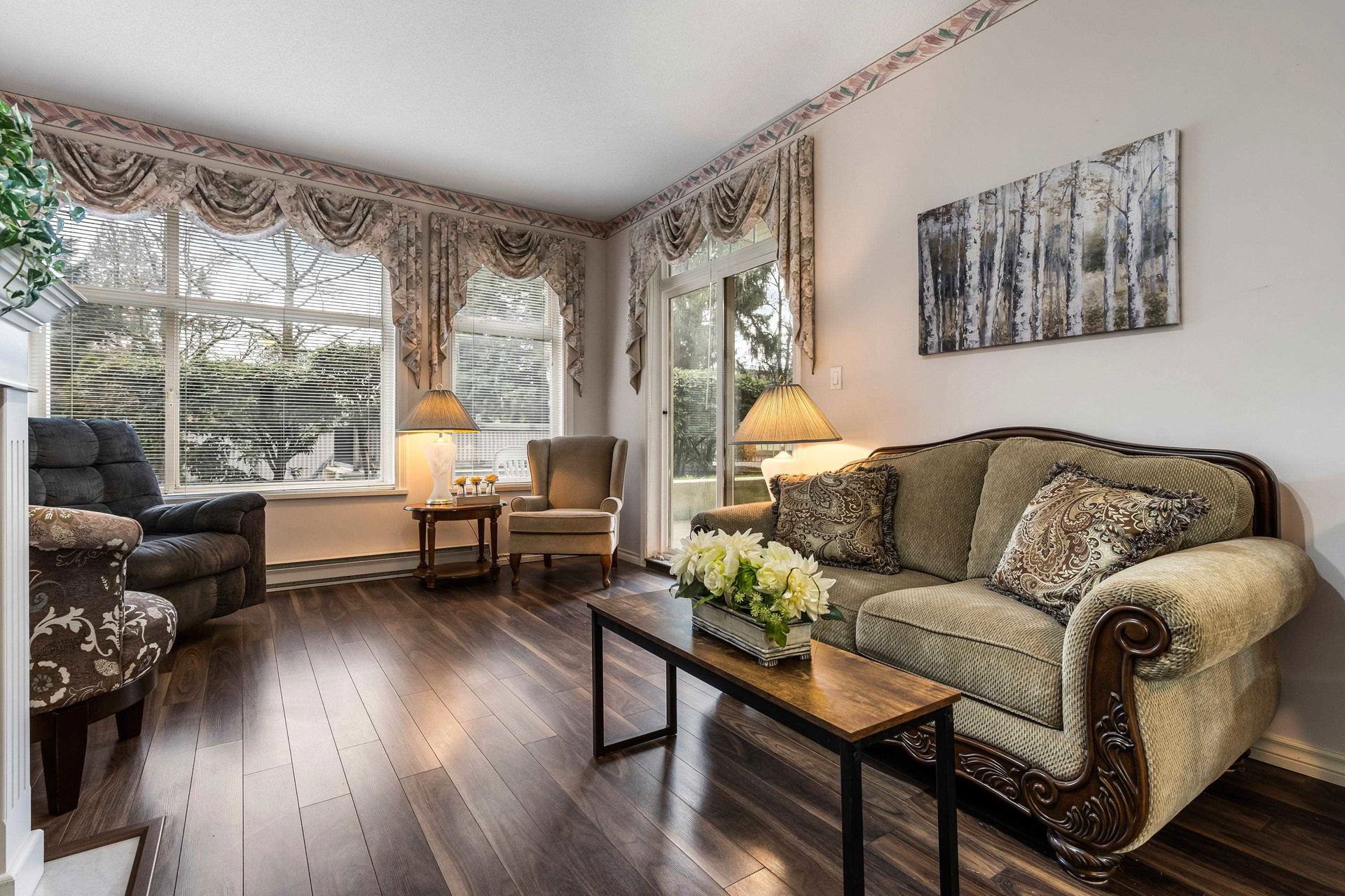 FABULOUS 1 bedroom GROUND FLOOR unit in the Devonshire! Offering 835 sq. ft. of comfortable living, this home is IDEAL for first-time buyers or downsizers! Enjoy west-facing exposure and an UNBEATABLE location within walking distance to Downtown Chilliwack, District 1881, shopping, recreation, and transit! Step into a spacious layout with AMPLE storage, a generous kitchen seamlessly flowing into the dining and living areas, complete with a cozy gas fireplace and tons of windows for natural light! The 4 pc bathroom with separate soaker tub is an added bonus. A large outdoor patio makes this home PERFECT for entertaining OR relaxing outdoors. An incredible blend of lifestyle AND value — this home won’t last long!