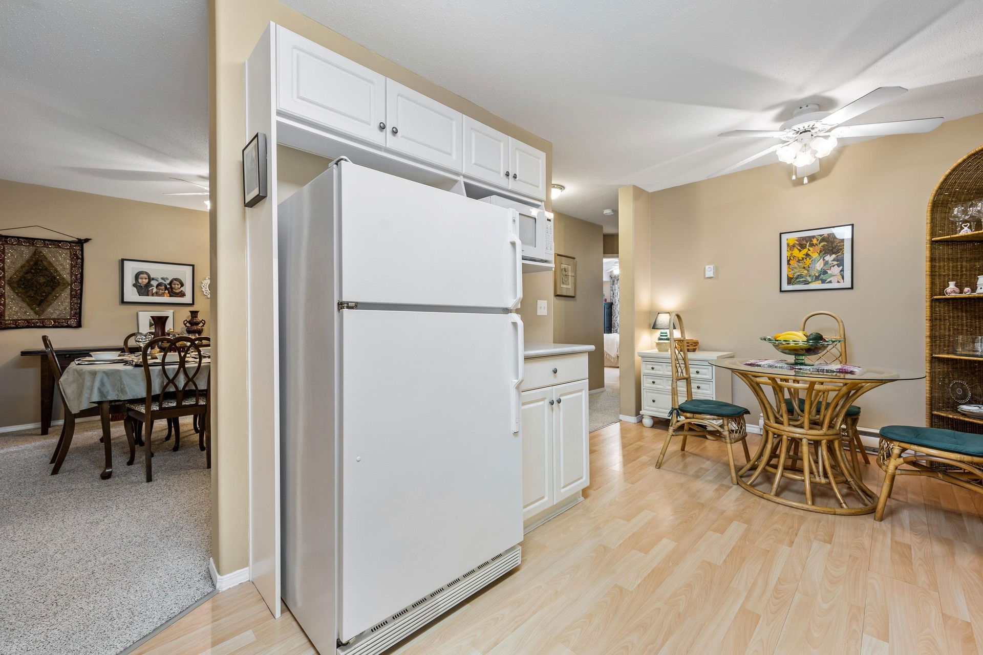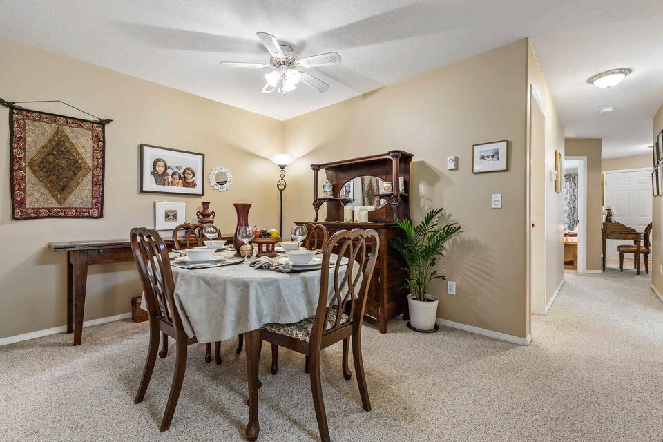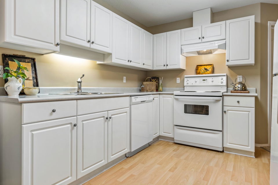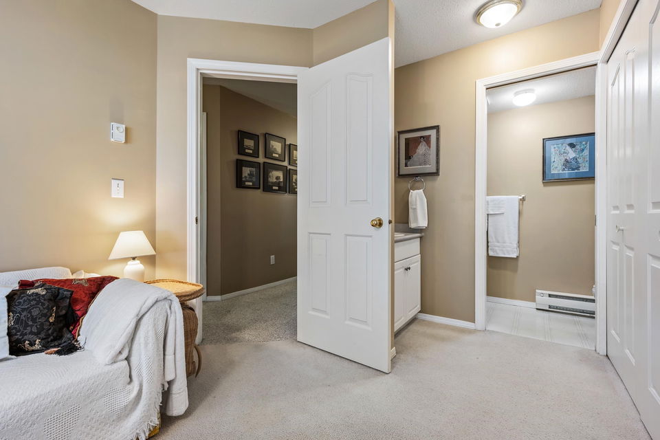 This 2 bed 2 bath, ground floor townhome has been extremely well maintained and looking for new owners! Inviting layout opens up to a spacious foyer, leading into the eating nook & BRIGHT kitchen w/ white cabinetry. Cozy living room w/ gas fireplace and large glass sliding doors, letting in PLENTY of natural light! Walkout access to your PRIVATE patio backing greenspace – PERFECT for pets! This home also features a large primary bedroom with 3 piece ensuite, generous secondary bedroom & 4 piece bath w/ tub. Nestled in the back of the complex, this is a fantastic retirement location or starter home! Clubhouse w/ workshop and lots of visitor parking. Pets and rentals allowed, come make Little Mountain Meadows your home!