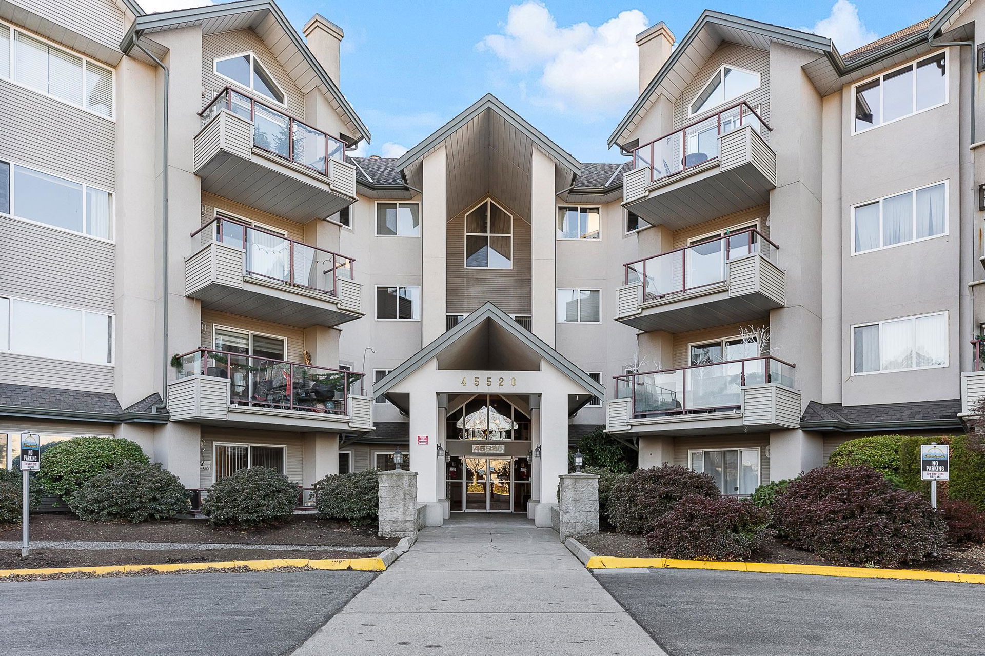 Fantastic 2 bed / 2 bath listing smack dab in the heart of Chilliwack! Steps to Malls/Shopping/Amenities/Medical you name it & its within your grasp! Spacious 1,000 sqft ground floor unit with convenient (Wheelchair accessible!) access to underground parking & SECURE front entry to building. Enter the front door to a spacious dining room leading into a functional kitchen space gazing across your COZY living room (N/G Fireplace!). Master bedroom has a convenient 3 piece ensuite with another great size guest room down the hall for family or company visits. This home has a light/modern aesthetic with turn key living ready for you to move into & start leading your best life. Morning-side is a professionally managed strata offering an amenities room, guest suite & individual storage lockers!
