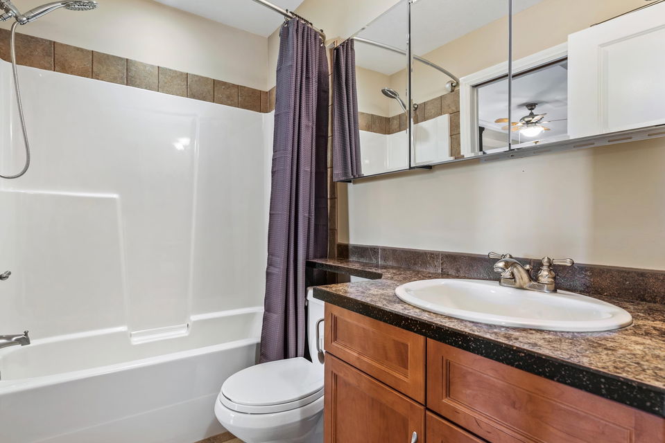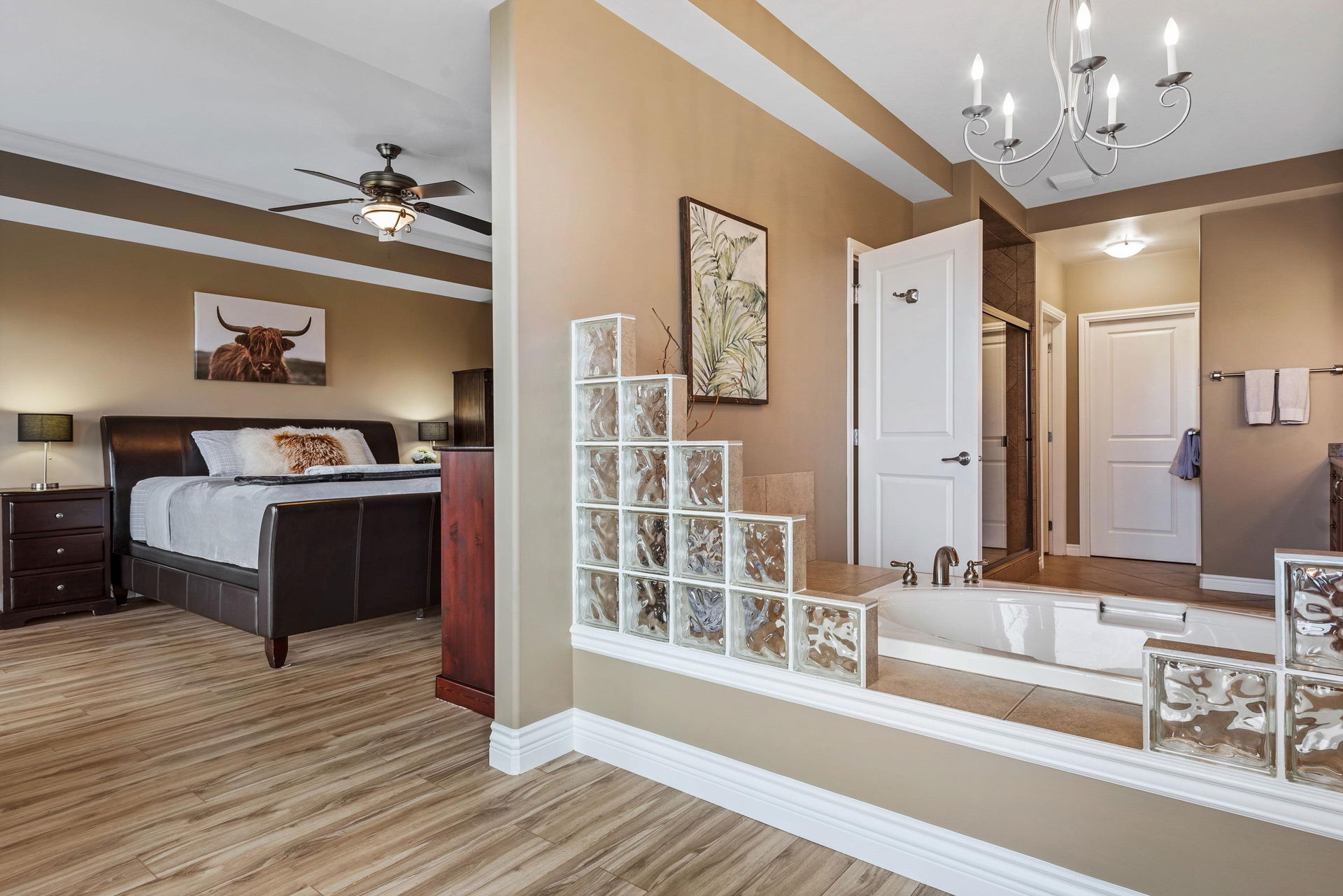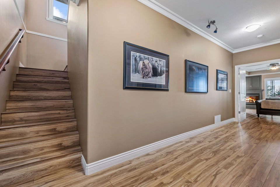 FAIRWAY LIVING & TRIPLE GARAGE! This pristine 3 bdrm/3 bathroom 3232 sq ft home features breathtaking views of the golf course, valley, & surrounding mountains. Main floor w/ HUGE entertainers kitchen w/ newer SS appliances, oversized island w/ attached eating bar, walk in pantry, & access to a large covered VIEW patio for year round enjoyment (gas heater & BBQ outlet!). Updated flooring & modern paint. TRIPLE GARAGE (2 cars + golf cart). Lower level with hotel inspired master bedroom featuring a spa-like 6 piece ensuite, reading nook, & gas fireplace! Direct walk out access to the lower covered patio w/ hot tub. New heat pump AC, HWT, & MORE!! Ample storage, large laundry room, mud room off the garage, & den/media area- this is THE BEST layout & location in the complex! DO NOT DELAY!