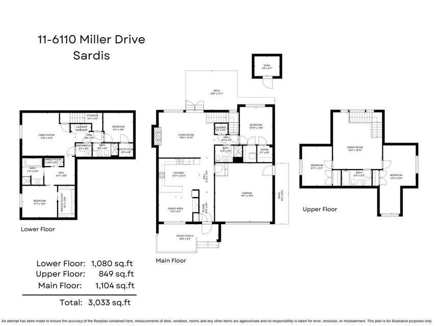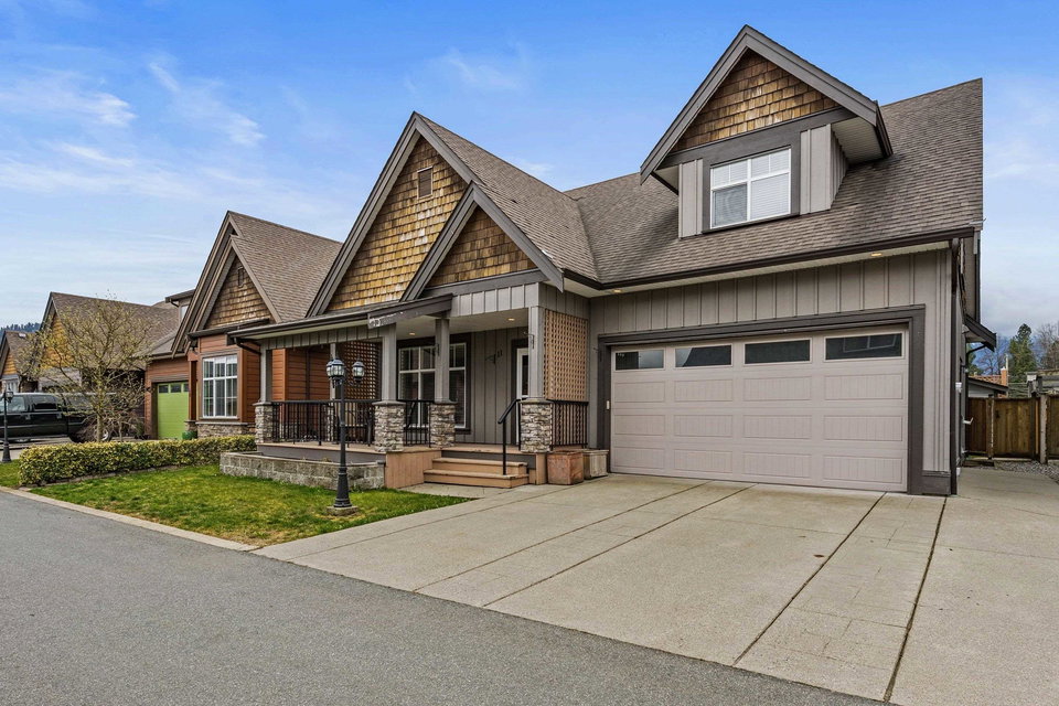 Welcome to MILLER ESTATES located in central Sardis, steps to Garrison Crossing, parks, schools, shopping, restaurants, & world class trails! This 3016 q ft 5 bdrm 4 bhrm home has a unique custom floorplan w/ 2 MASTER SUITES- one on main & one in bsmt! Enter the lovely main level w/ hardwood & tile flooring, airy kitchen w/ granite counters & built in sideboard, dining area overlooking the covered front porch, & a BRIGHT living room w/ gas f/p. Master on main (set up as formal dining rm) w/ w.i. closet & room for an ensuite washroom. Upper floor w/ family room, 2 MASSIVE bdrms, & full washroom. Finsihed bsmt w/ 2 bdrms (2nd mstr w/ huge closet & soaker tub in ensuite), storage, & rec room. Fully fenced backyard w/ extended concrete patio, artificial turf, & storage shed! Great VAULE!!
