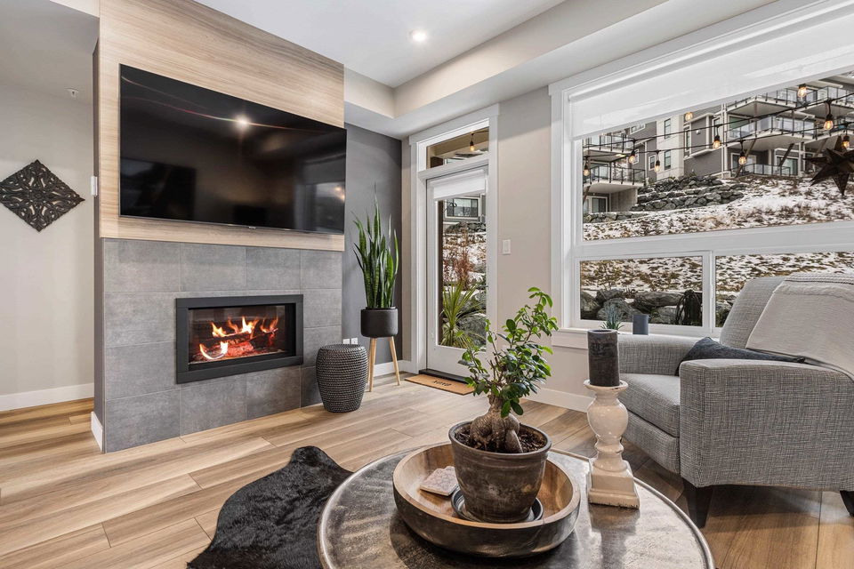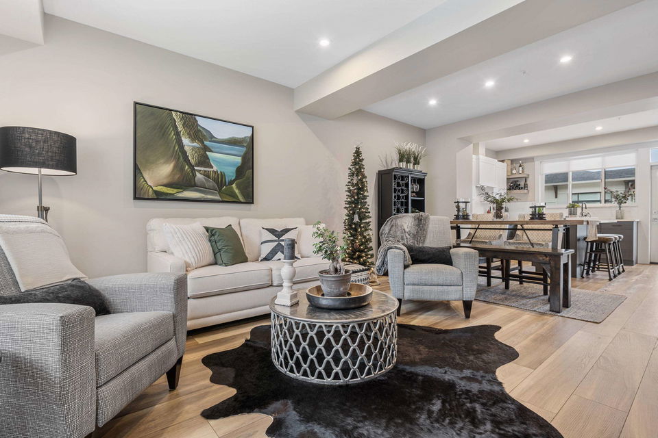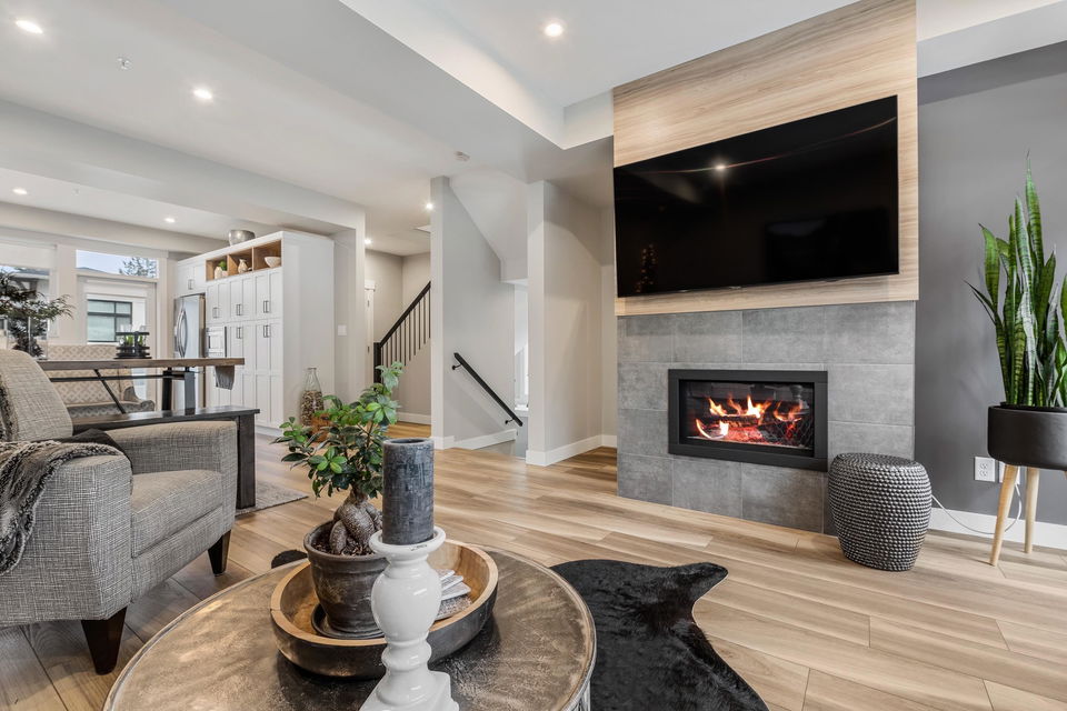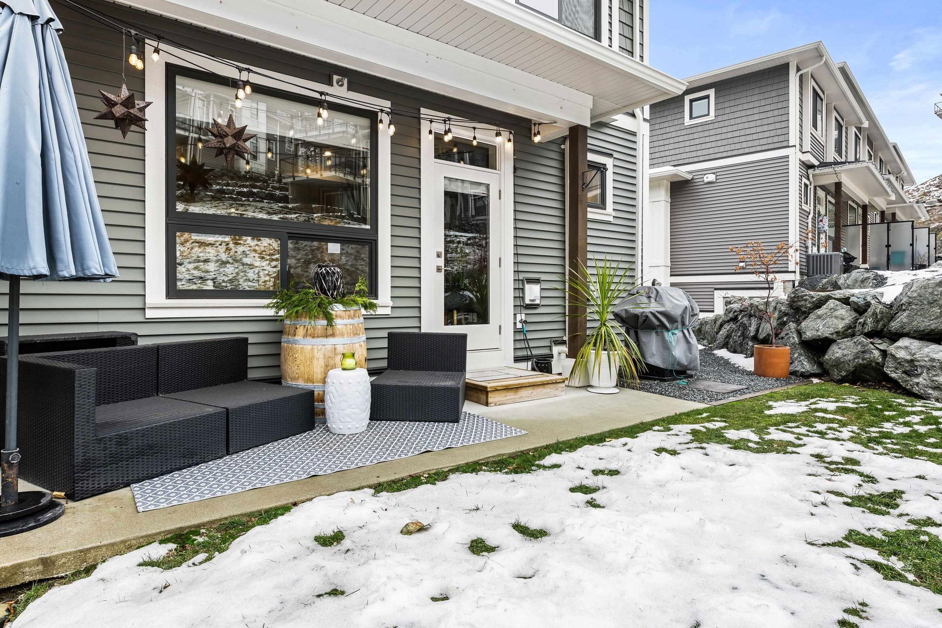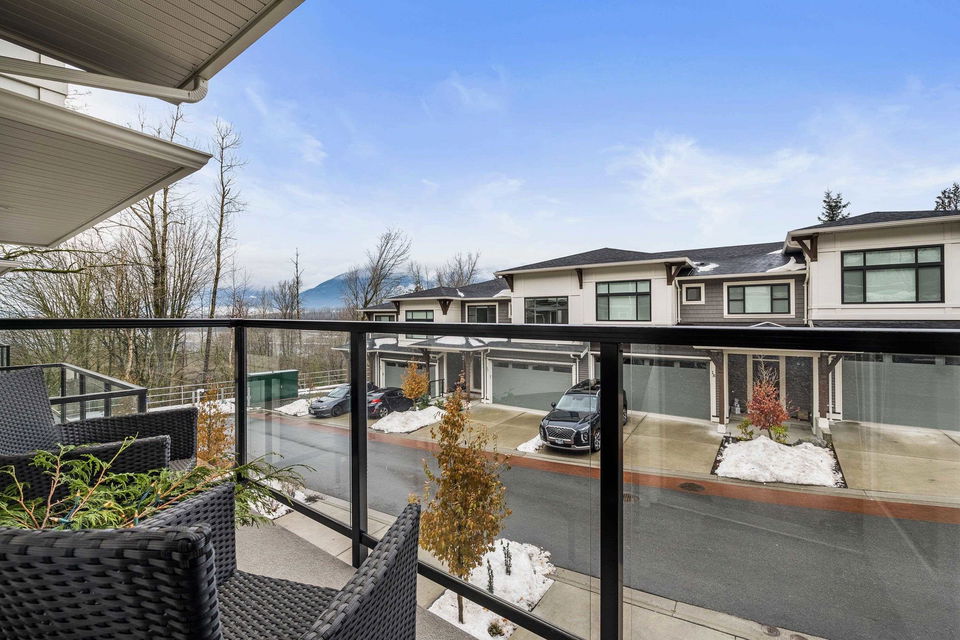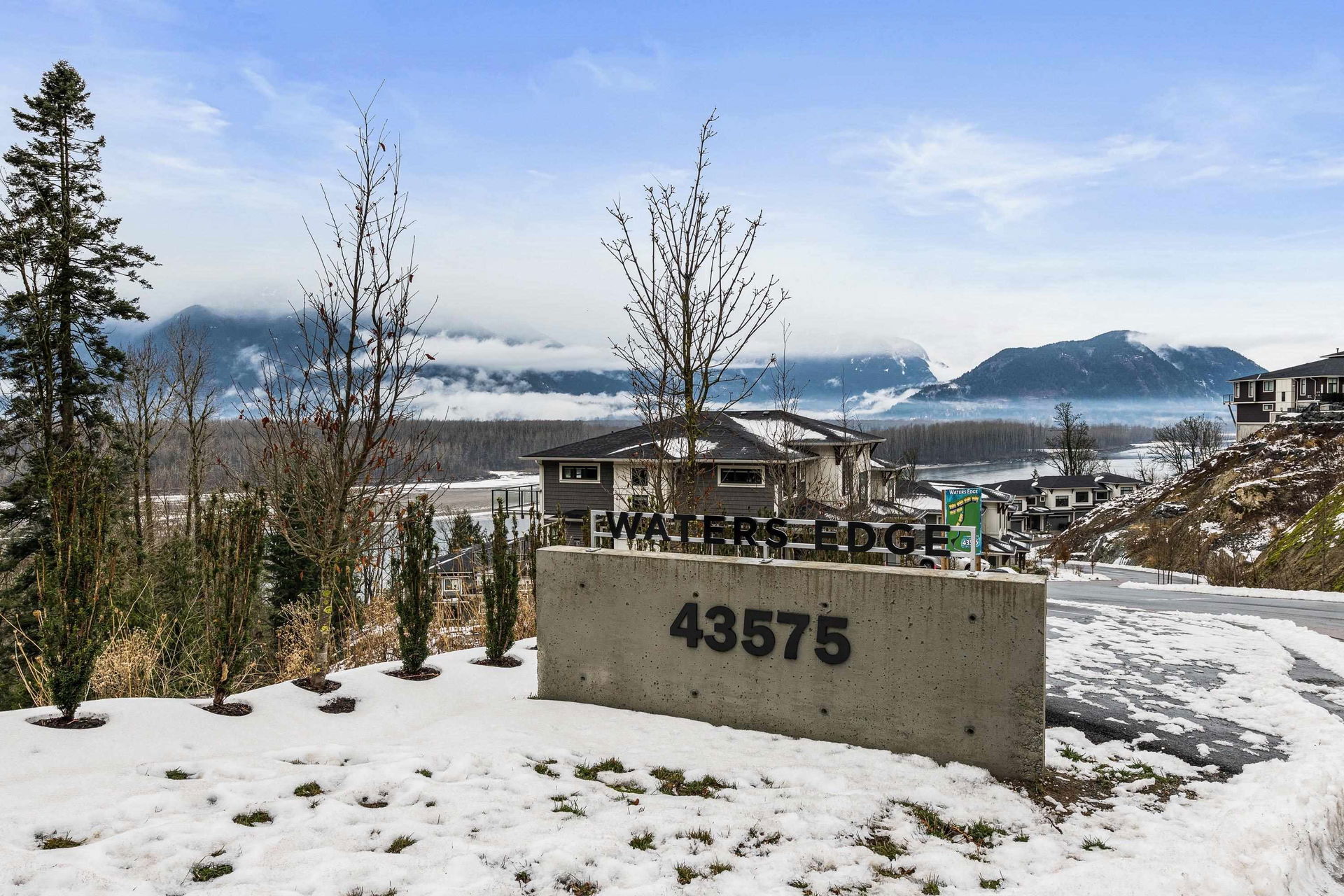 Live your best life @ Water’s Edge! Located on beautiful Chilliwack Mountain surrounded by nature & FRASER RIVER VIEWS, sits this END UNIT TOWNHOME priced at $669,900! Built in 2020 and still under warranty, enjoy NEW with NO GST. Wonderful open concept main floor w/ direct walk-out access to the backyard; great for pets & access to the greenspace & fire pit! Modern kitchen w/ white shaker cabinets, quartz counters, SS appliances, feature shelving, & ample storage. Inviting living room w/ gas fireplace & front patio w/ partial river views. Upper level w/ 3 bdrms, master w/ w.i closet & spa ensuite. Full driveway & double car garage w/ added side storage for tires, xmas decor, bikes, etc. BONUS lower level w/ great flex space for gym/media/family room! Pets & rentals welcome, 5 mins to Hwy!