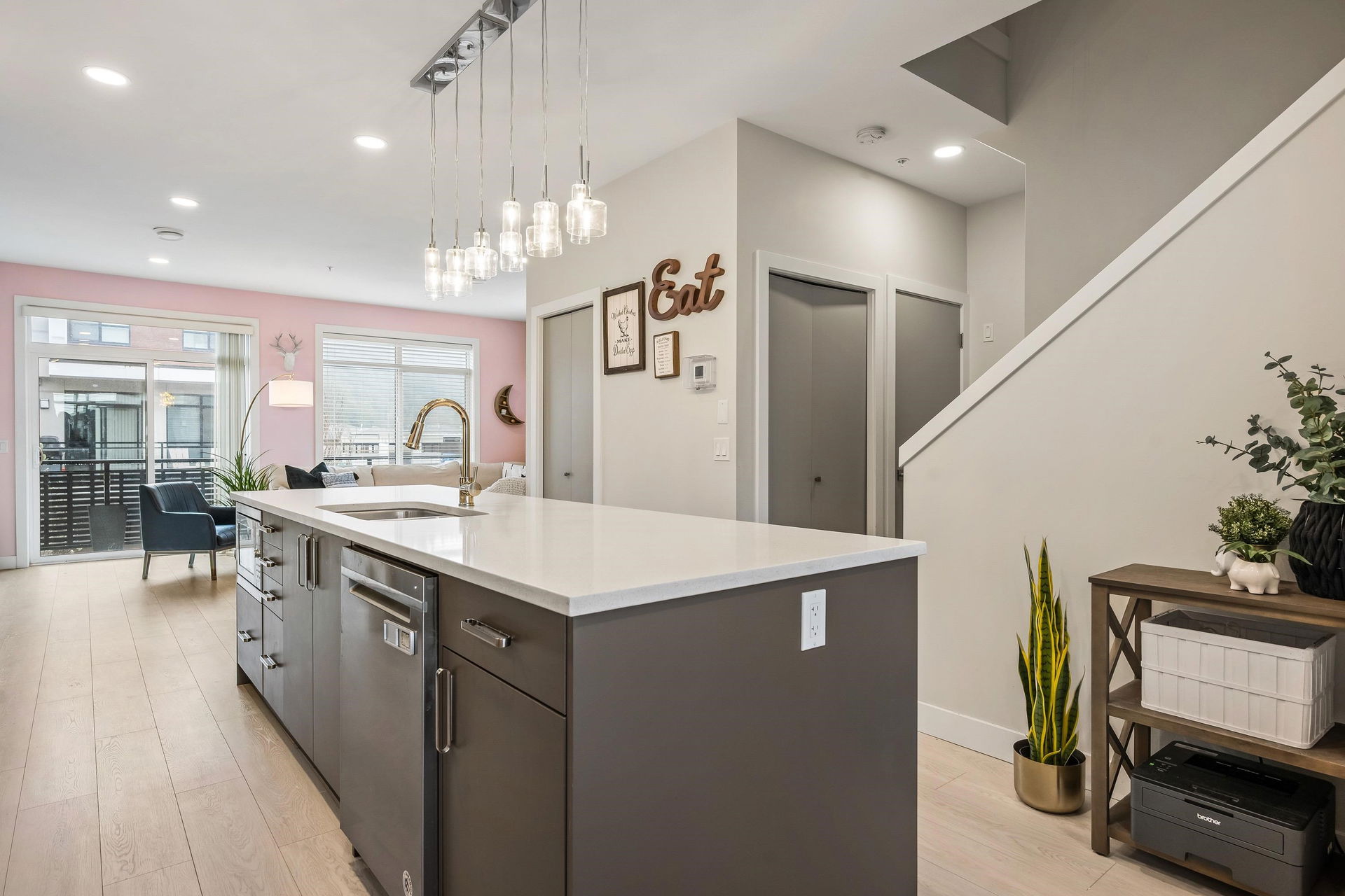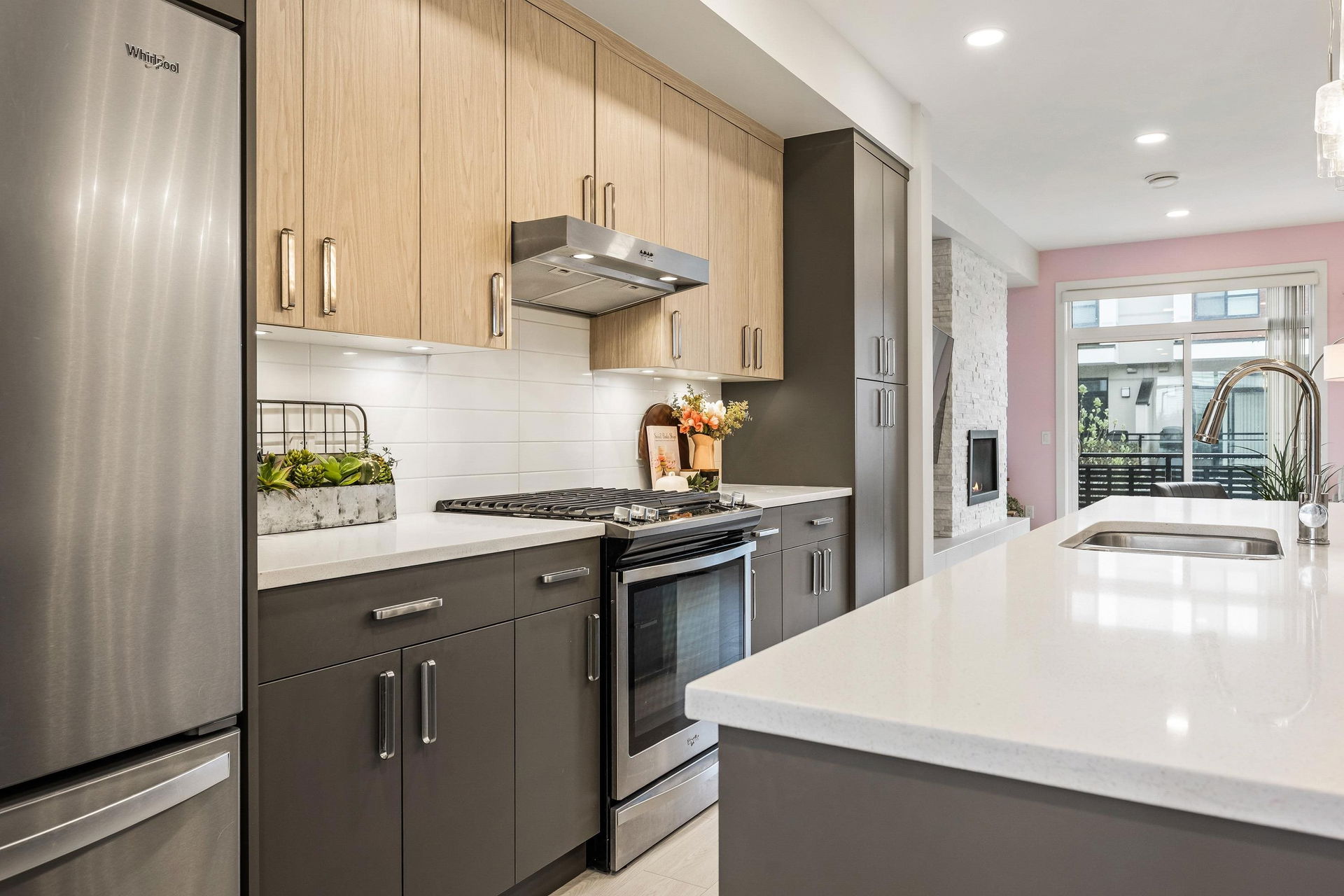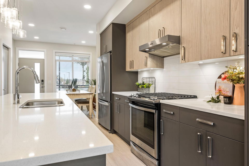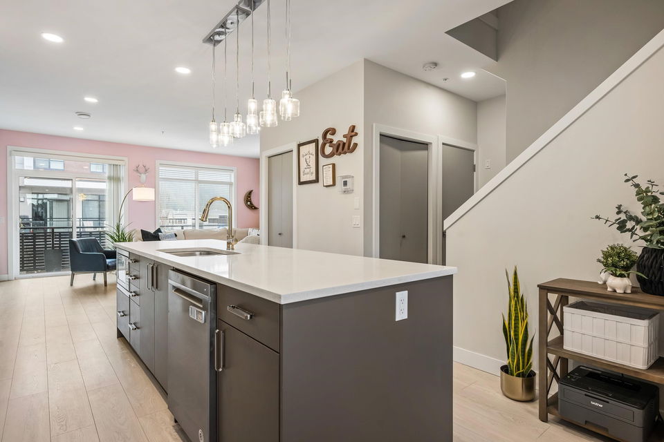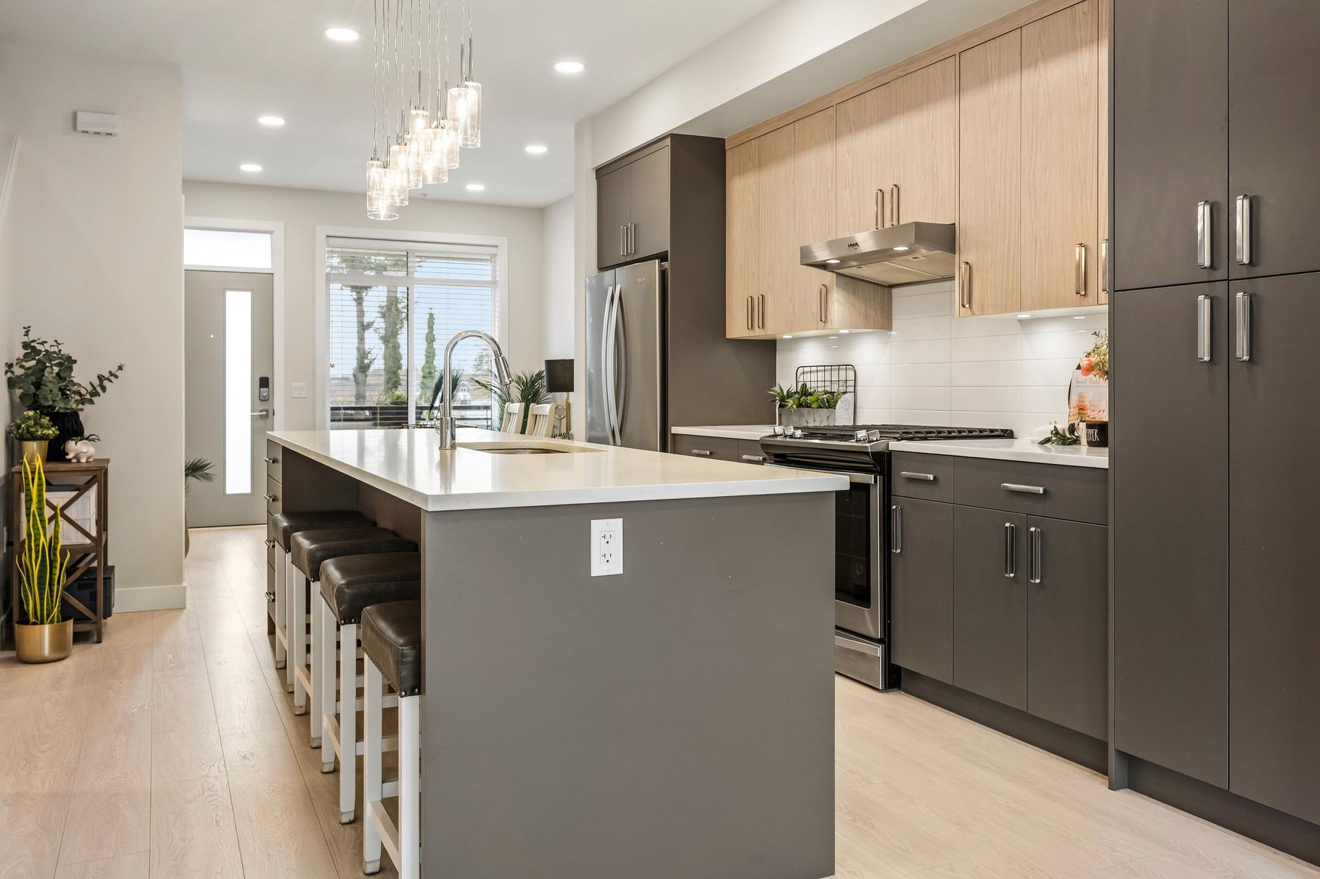 GORGEOUS END UNIT w/1 bed suite in the CENTRALLY located Base 10 complex! Only STEPS away from schools, transit, shopping & MORE! Step into the OPEN & BRIGHT main floor w/large kitchen featuring S/S appliances, chic light fixtures & MASSIVE island w/AMPLE storage. Seamlessly blending into the FABULOUS living room w/stone faced gas f/p & HUGE balcony w/ gas hookup. Upstairs you will find the SPACIOUS master bedroom w/an EXQUISITE 4 pc ensuite w/dual vanity & ENORMOUS walk-in glass shower. Two more bright bedrooms & full bath up w/laundry make this an ideal choice for families! Not to mention – hot water on demand, new flooring & a 1 bed basement suite w/4 pc bath, AMPLE natural light & designated parking spot. Don’t miss out!