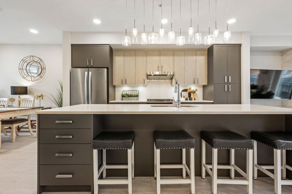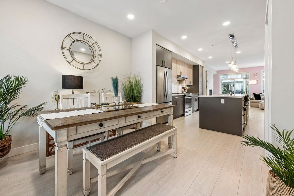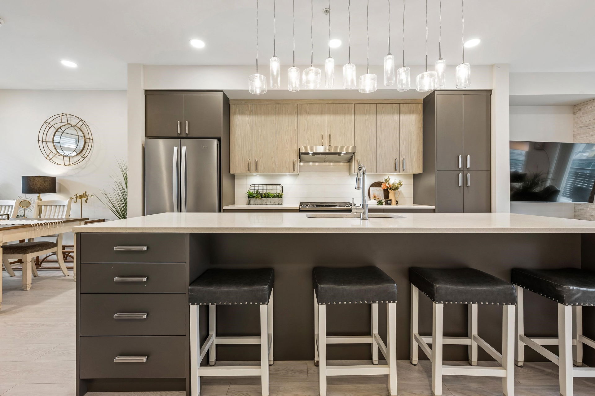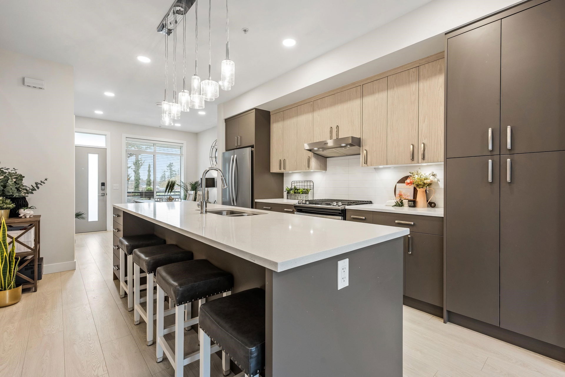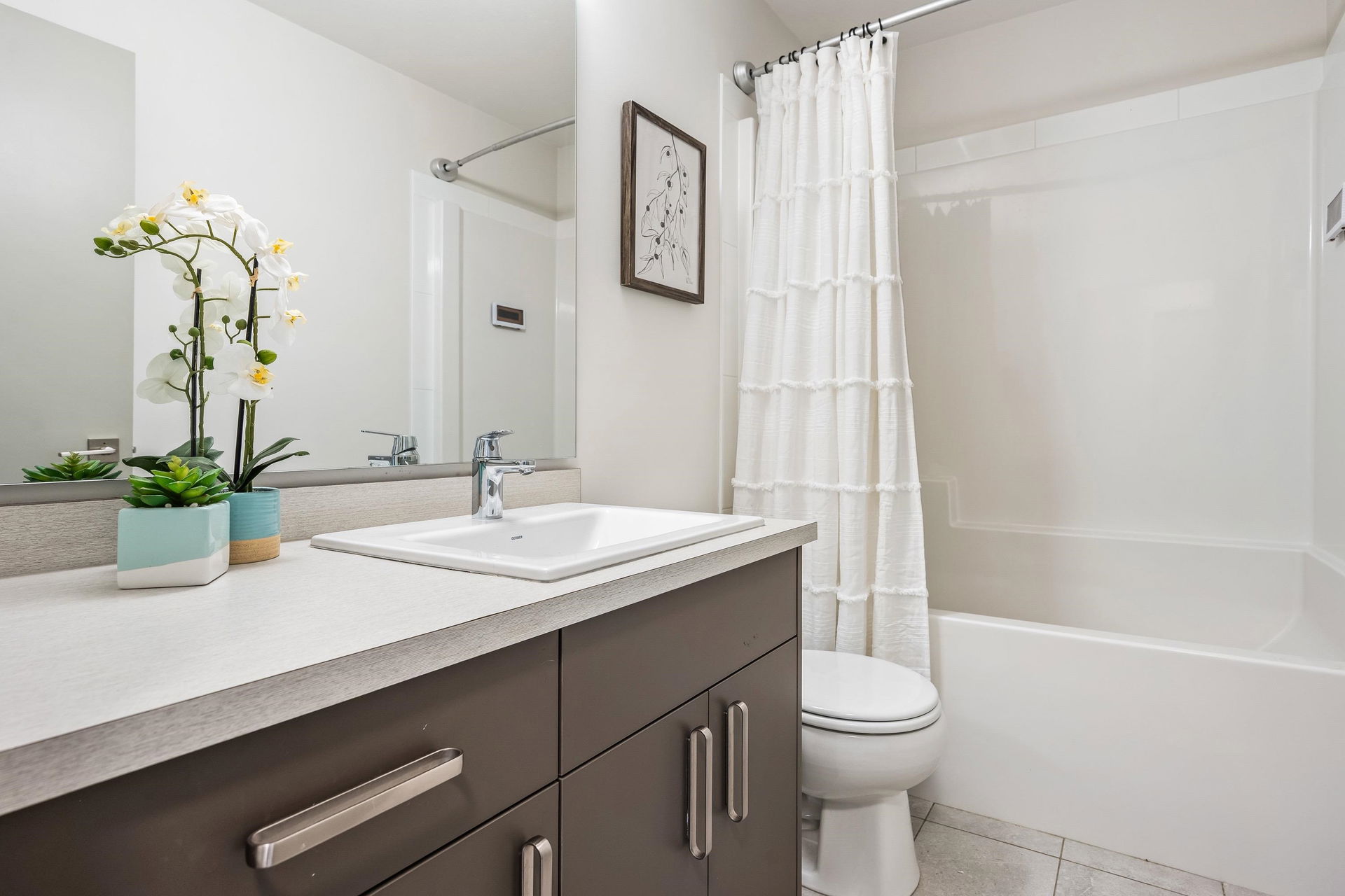 GORGEOUS END UNIT w/1 bed suite in the CENTRALLY located Base 10 complex! Only STEPS away from schools, transit, shopping & MORE! Step into the OPEN & BRIGHT main floor w/large kitchen featuring S/S appliances, chic light fixtures & MASSIVE island w/AMPLE storage. Seamlessly blending into the FABULOUS living room w/stone faced gas f/p & HUGE balcony w/ gas hookup. Upstairs you will find the SPACIOUS master bedroom w/an EXQUISITE 4 pc ensuite w/dual vanity & ENORMOUS walk-in glass shower. Two more bright bedrooms & full bath up w/laundry make this an ideal choice for families! Not to mention – hot water on demand, new flooring & a 1 bed basement suite w/4 pc bath, AMPLE natural light & designated parking spot. Don’t miss out!