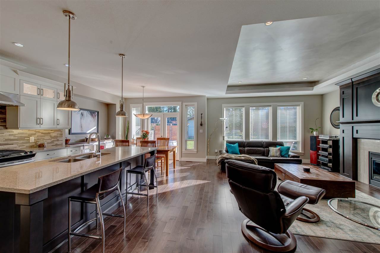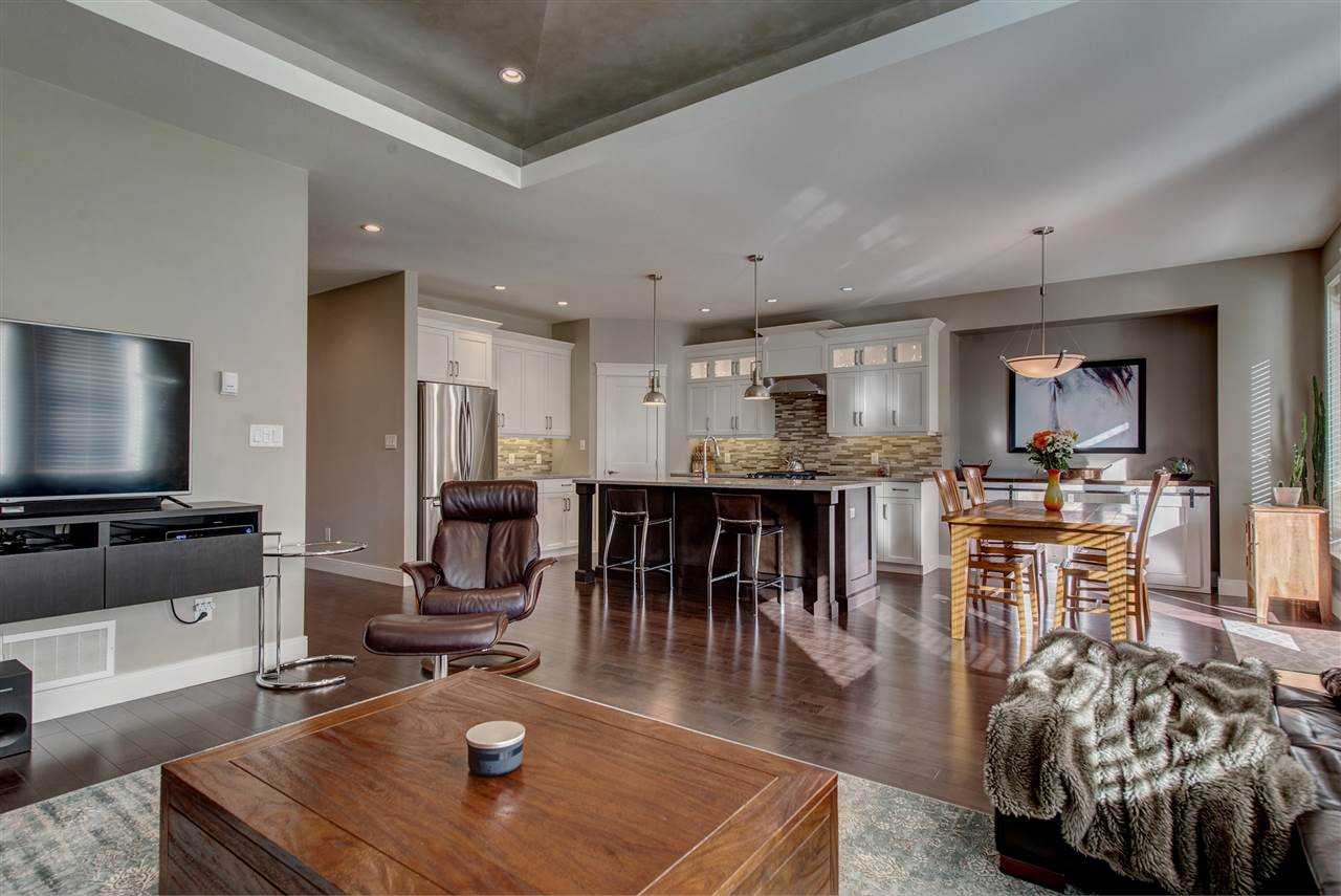 ORIGINAL SHOWHOME! This stunning 3 bedroom & 2 full bathroom RANCHER located in the prestigious gated complex of “Riverstone Estates” is one for the MUST SEE list. Open concept kitchen w/ modern white shaker cabinetry, quartz counters, tiled backsplash, undercabinet lighting, & upgraded SS appliances w/ GAS RANGE. Relax in your tranquil living room next to the fireplace and enjoy the peaceful views of mother nature. The MANICURED fenced backyard features a massive stamped concrete patio, private hot tub space, raised garden beds, PLUS a fully insulated & powered 15 x 20 “man cave workshop”- WOW! Add on AMAZING mountain views, double garage, AND a heated 5′ crawl space! Only minutes to Garrison Crossing & Cultus Lake.