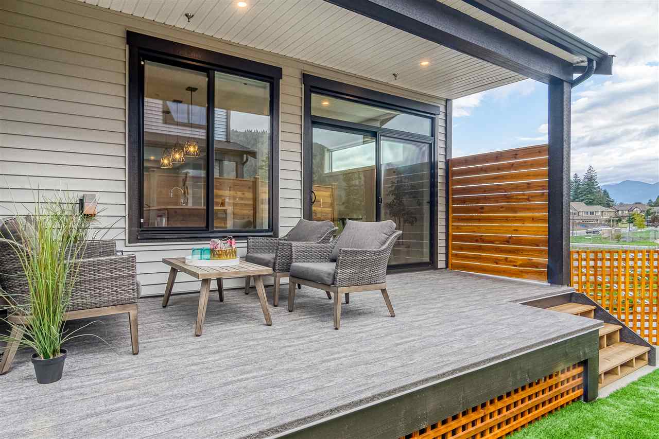 “GREYSTONE” @ Webster Crossing! An exclusive collection of the LATEST & GREATEST for townhomes in Sardis’ most sought after area. Steps to the Vedder River, numerous parks, UFV, Unsworth Elementary, Garrison Crossing, & 5 mins to highway 1 & Cultus Lake– the location CANNOT be beat. This PRIME END UNIT features a stunning main floor with vinyl plank floors, modern colors, open concept kitchen w/ white shaker cabinets & stainless steel appliances, & direct walk out access to a FULLY FENCED BACKYARD. Master w/ vaulted ceiling, walk in closet, & full ensuite washroom. Want more? How about a large finished rec room in the bsmt! Rentals & pets of all sizes are welcome. Don’t miss your chance to call Greystone your home! End units are rare and DO NOT LAST!