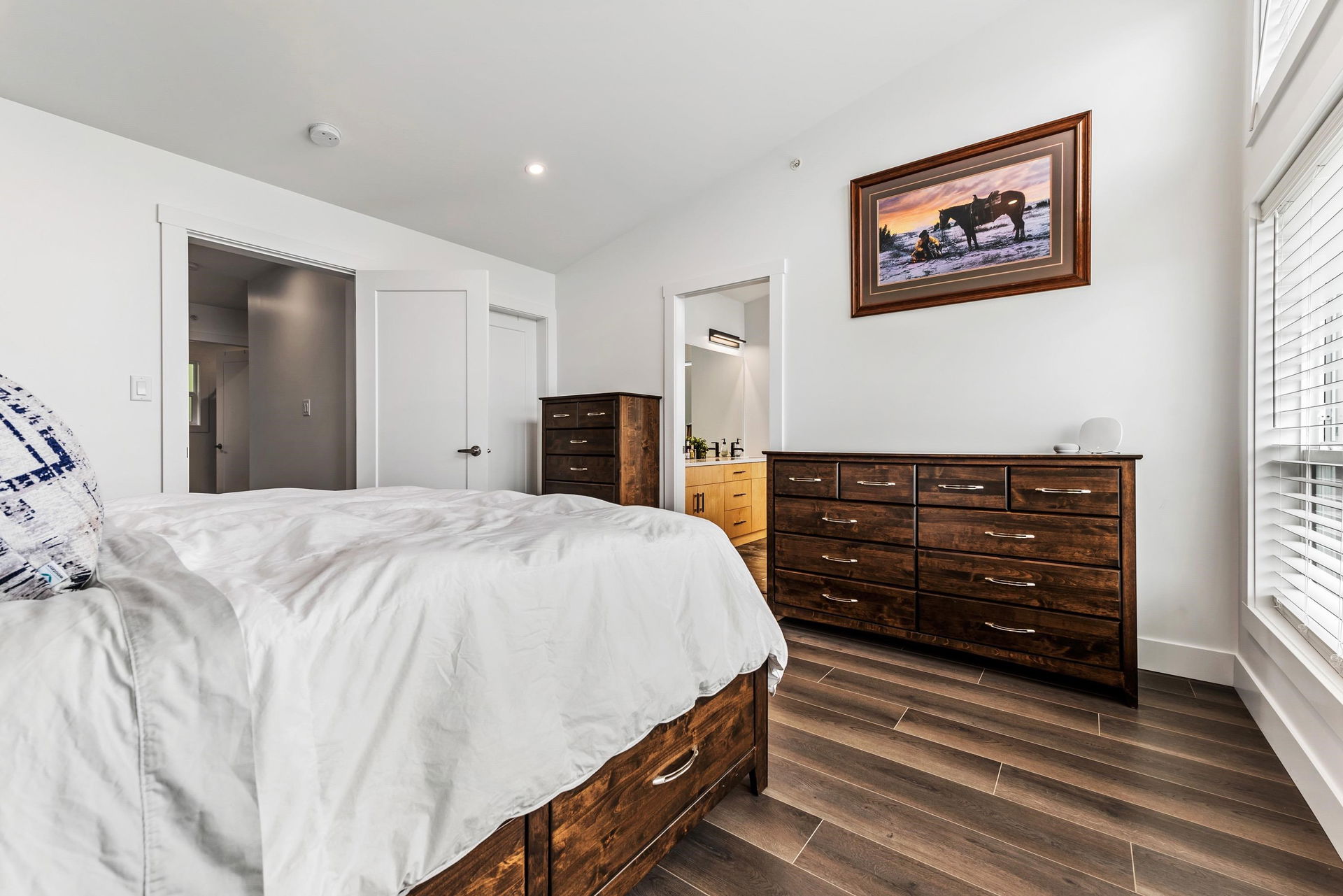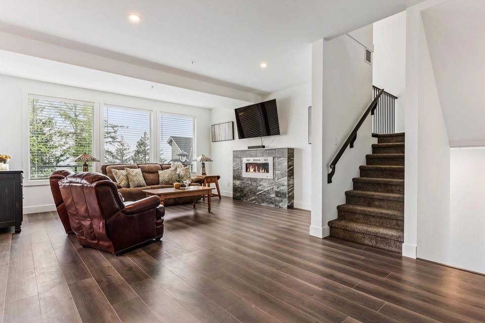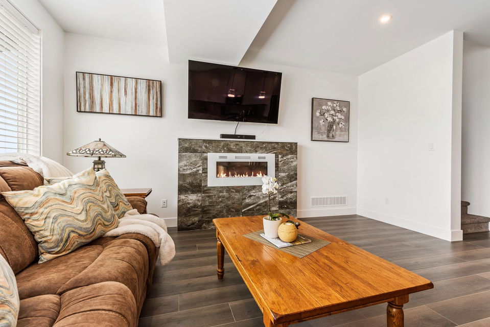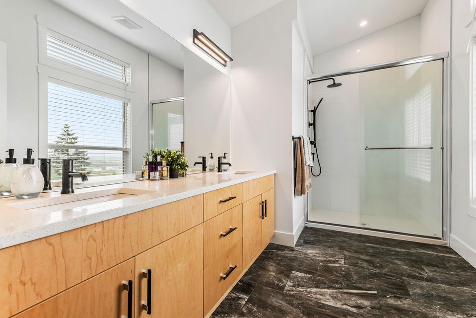 VIEWS VIEWS VIEWS! Live on vacation every day with panoramic valley and mountain views- breathtaking sunsets & ample privacy backing GREENSPACE! This nearly new 5 bdrm+ 2 den home was crafted in 2021 and has beautiful modern finishes top to bottom. Open concept kitchen w/ quartz counters, flat panel 2 tone cabinets, & SS appliances. Living room w/ linear fireplace, large office on main w/ barn doors, & extensive front covered patio for year round enjoyment. Fenced backyard w/ hot tub hookups & gas bbq outlet. Upper floor w/ 3 bdrms (potential for 4); master w/ VAULTED ceilings, views, & luxury ensuite w/ dual vanities & 6′ shower. Fully finished bsmt w/ rec room incl. wet bar r/i, bdrm, full bath, storage, & 2nd office. AC, double garage, b.i. vac – WOW!