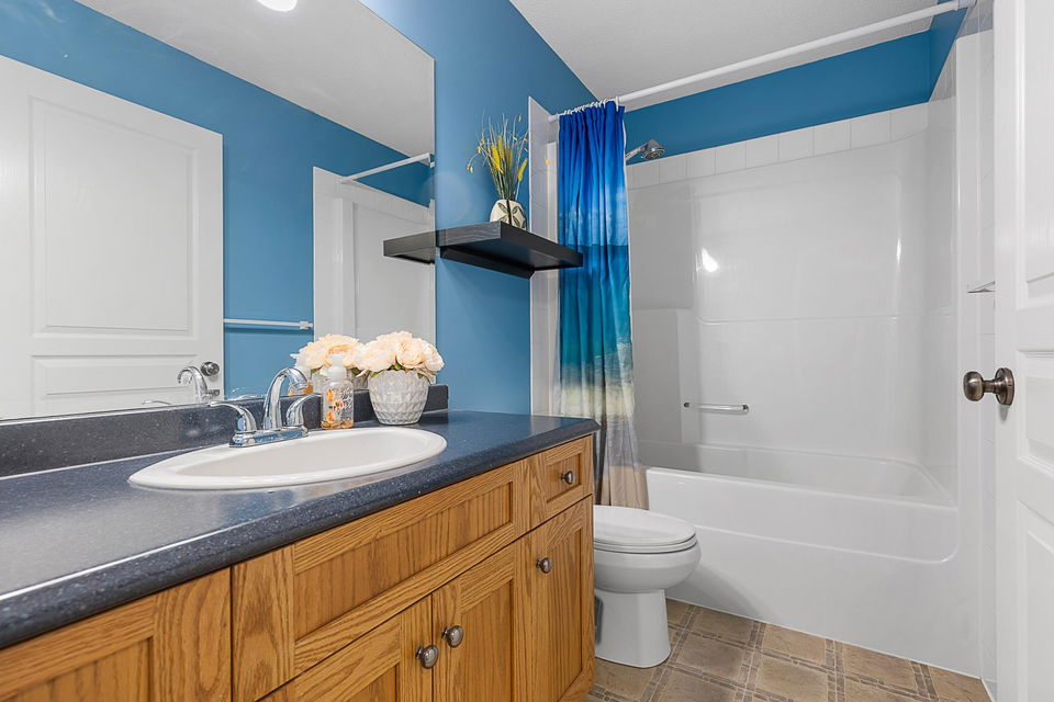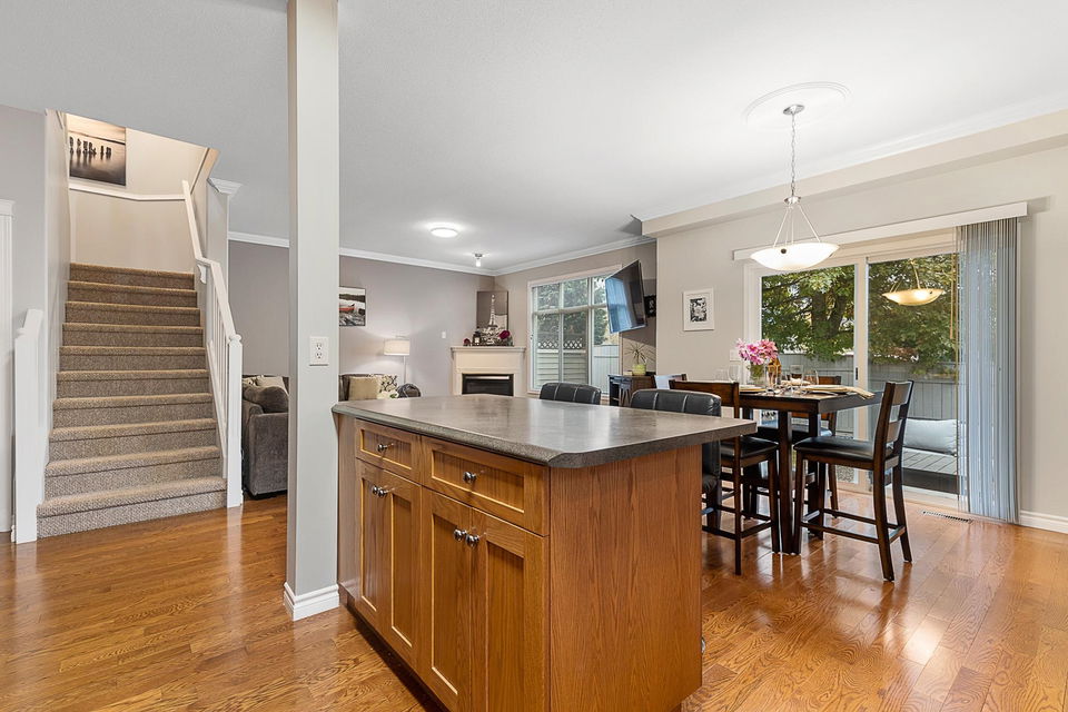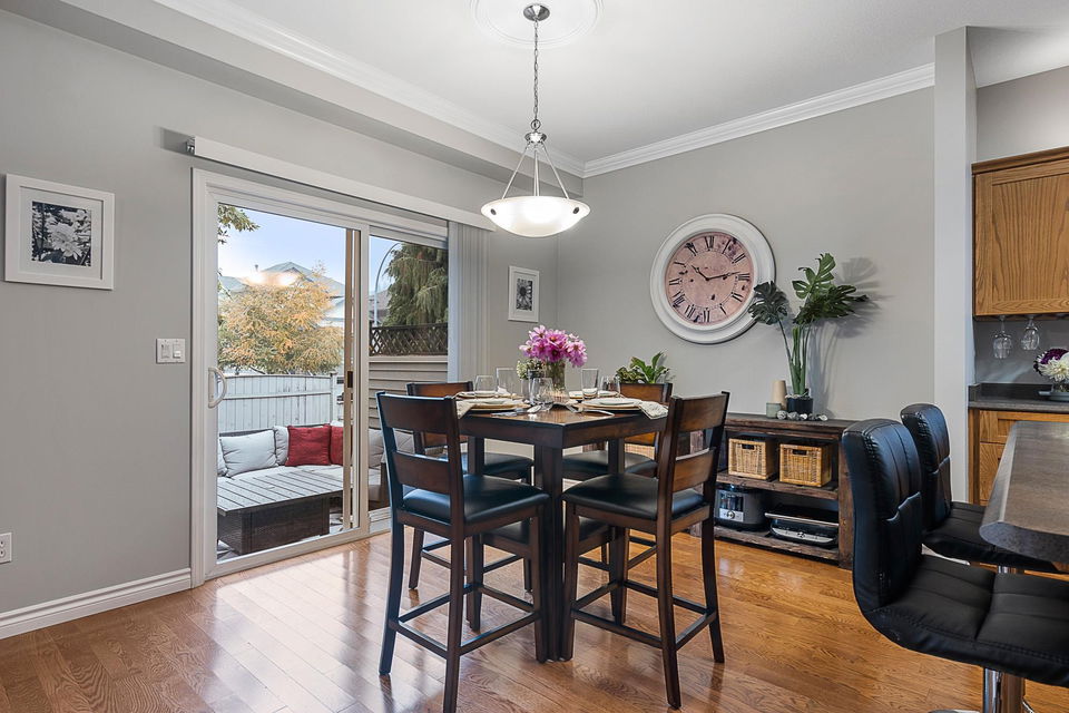 Welcome to the sought after Apple Creek! This popular family complex offers a pet friendly environment with great views & an amenities building w/ a games room & exercise equipment. This two story end unit features 3 bedrooms and 2.5 bathrooms and just over 1400 sq ft of living space. The main floor features an open concept living area & private back patio. Upstairs you’ll find your master suite w/ walk-in closet & 3pc ensuite, plus two additional large bedrooms and separate laundry room. Double garage & ample visitor parking. Walking distance to schools, parks & trails. Rentals allowed!