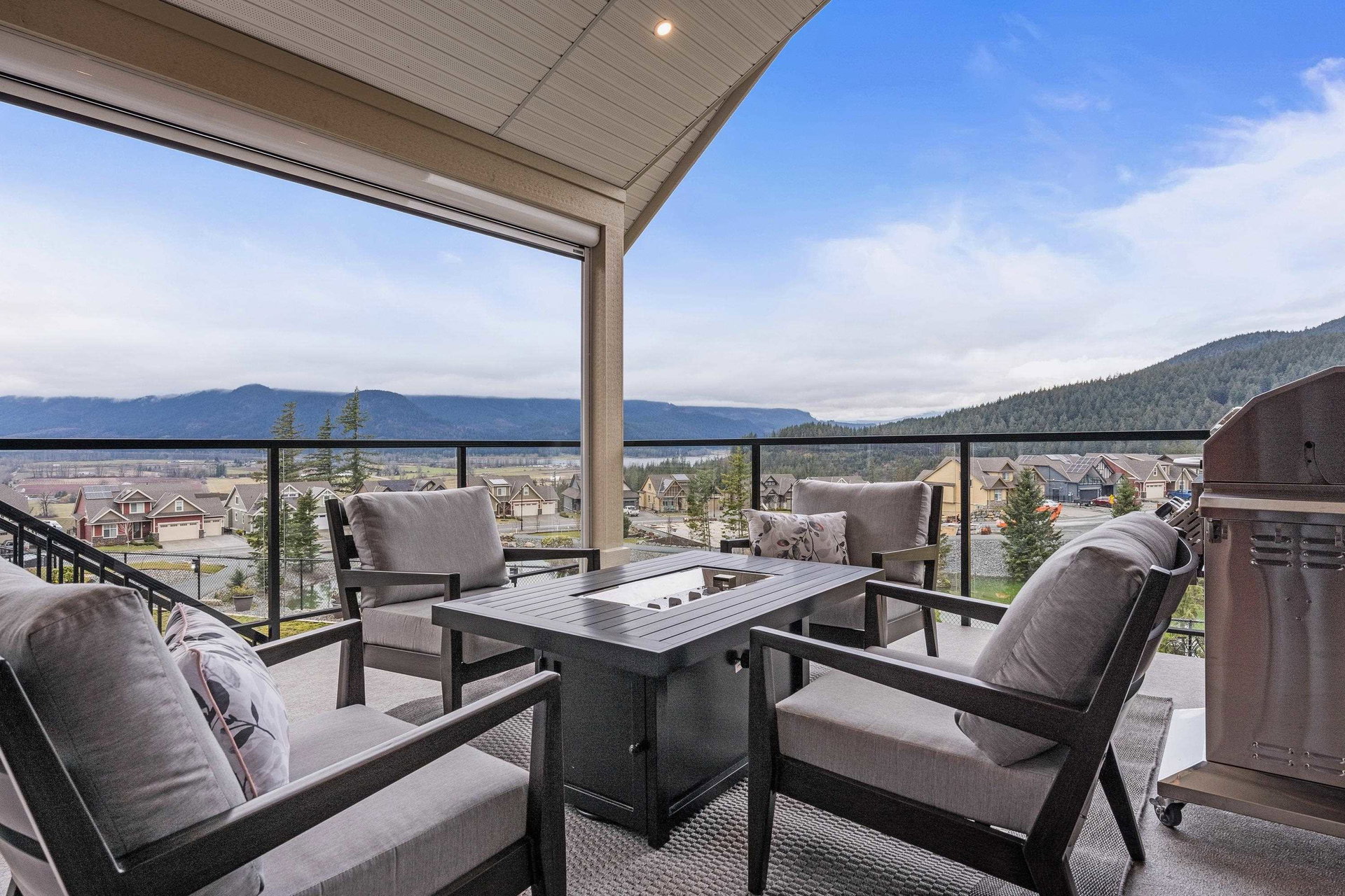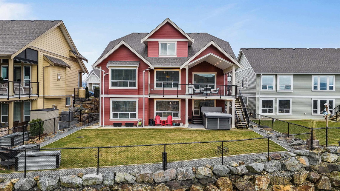 PERFECT LOCATION in prestigious HARRISON HIGHLANDS, overlooking the FRASER RIVER, pond & mountain ranges for days! This meticulously crafted residence boasts 6 beds & 2 dens, incl. a 2-bedroom WALKOUT SUITE (could be 3 bed/2 bath!) w/ sep heating controls, laundry & entry- perfect for the kids/inlaws! BRIGHT open concept w/ VAULTED great room, upgraded kitchen w/ quartz, gas range, w.i. pantry, w/ auto privacy shade. MASSIVE COVERED PATIO to enjoy year-round! Primary SUITE w/ custom closets, 5 pc bath w/ heated tile & patio access. 2 additional bdrms up, one w/ ensuite, + a massive rec room w/ w.i. closet (3rd bdrm). Extensive upgrades totaling OVER 200k incl. Heat pump A/C, hot water on demand, r.i generator, inground sprinklers, HRV & gemstone lights. Dbl garage w/ epoxy & LONG DRIVEWAY!