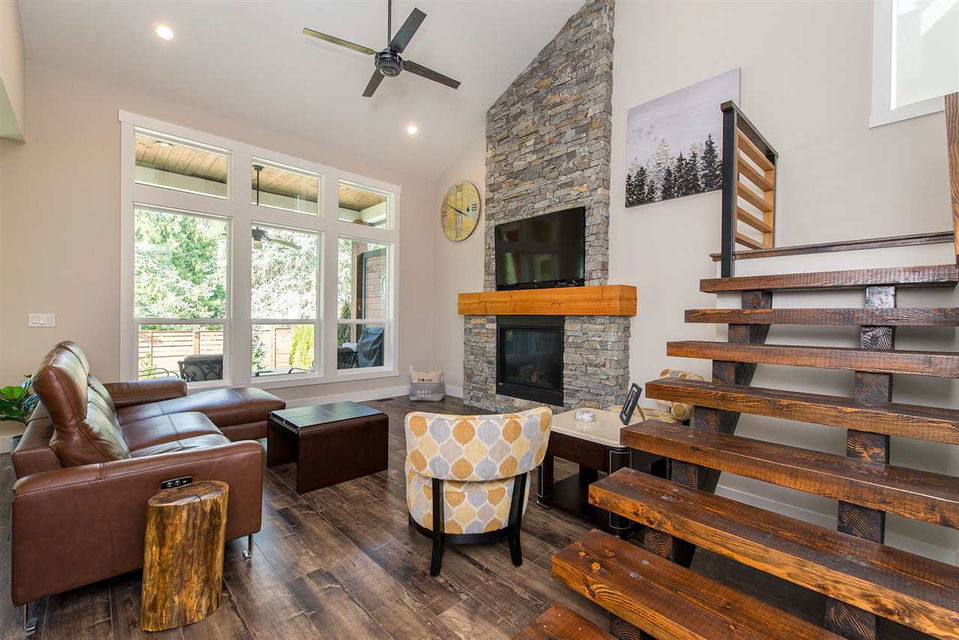 TOP OF THE LINE FINISHES + Custom Designed + NO GST + Great Private Location= WOW! Spectacular 3 bdrm & den w/ ATTACHED WORKSHOP. Main floor great room w/ 16′ vaulted ceilings w/ floor to ceiling real rock oversized fireplace & large picture windows to the PRIVATE backyard w/ 17×12 covered concrete patio. Beautiful kitchen w/ custom full height crowned cabinets, quartz counters, Frigidaire Professional Series appli., w.i. pantry, & dining area w/ custom b.i. sideboard. Upper floor master bdrm w/ trayed ceilings, fireplace, w.i. closet w/ secondary laundry, & stunning ensuite w/ w.i. glass tiled shower & dual vanities. Add on; Central AC, 5′ crawl space, dbl garage w/ epoxy coating, LED lights throughout, custom roller shades, sprinkler system… Full list of extras included in brochure.