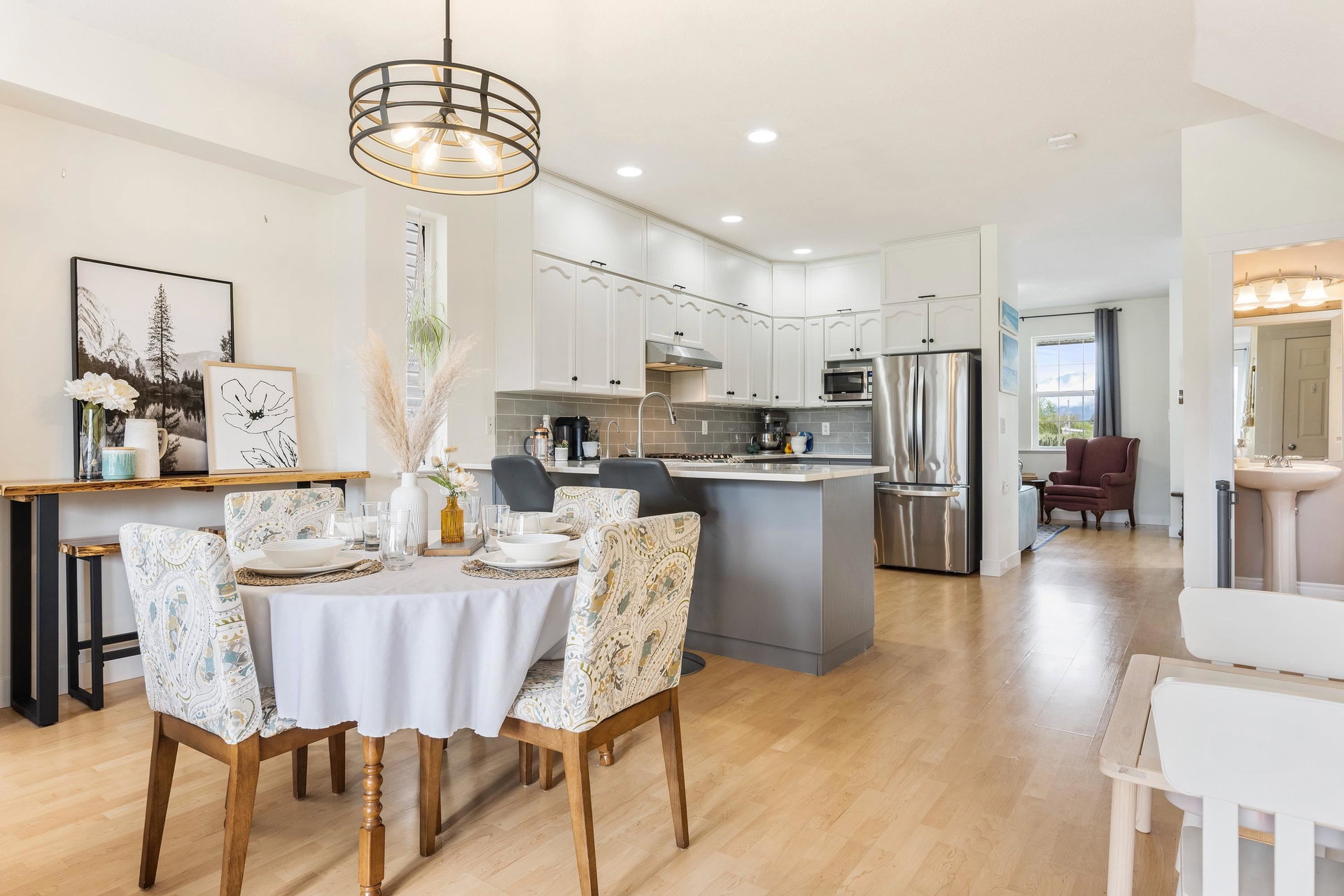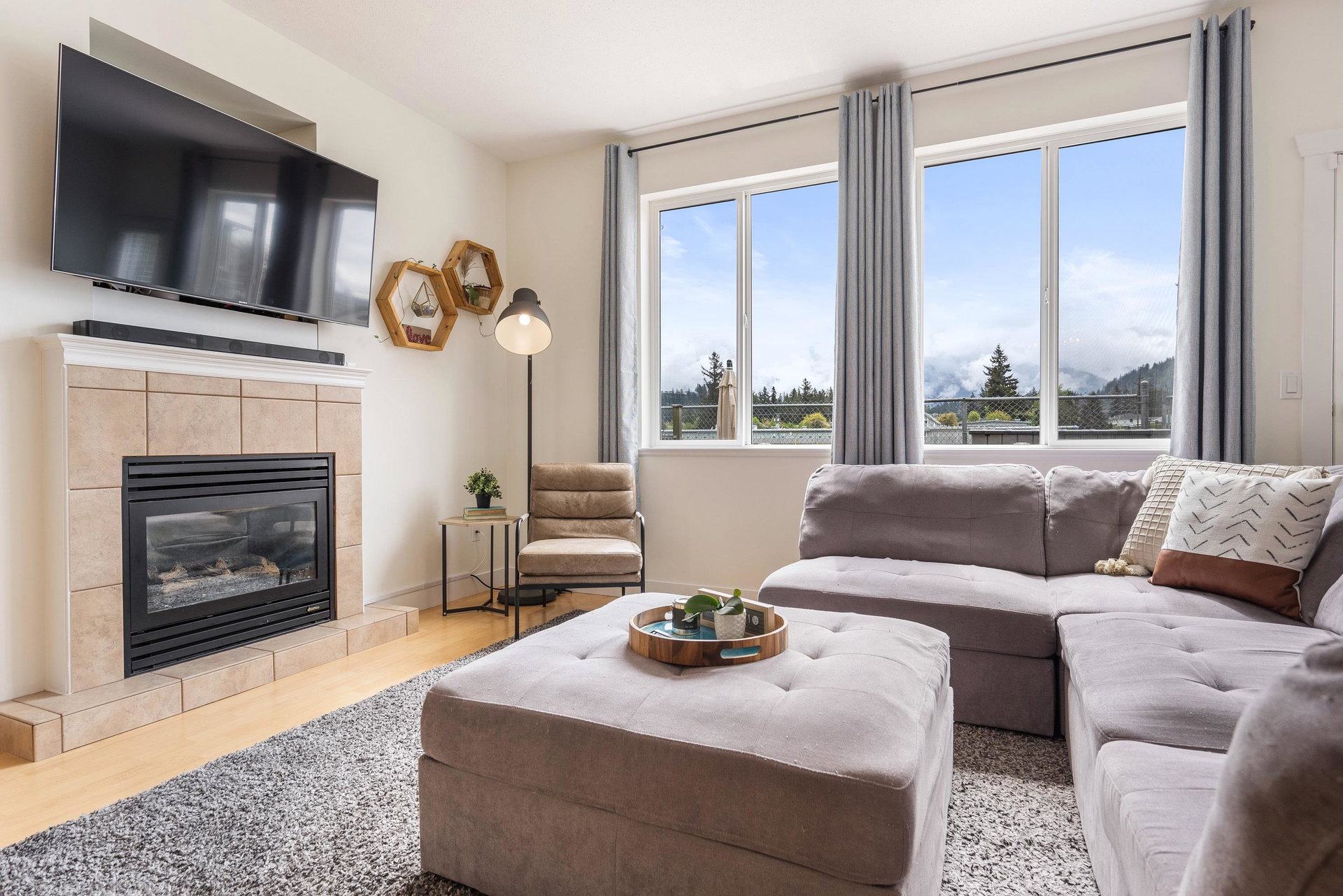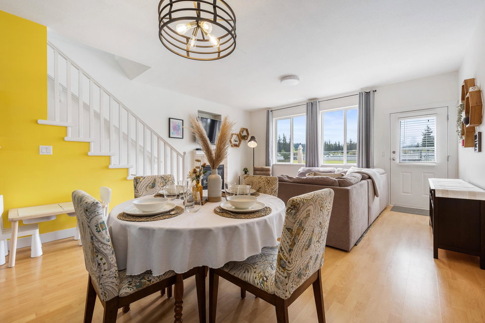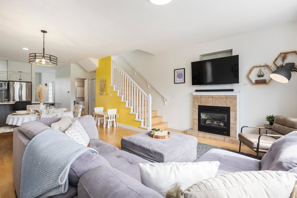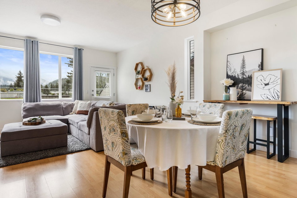 DETACHED SARDIS HOME UNDER 800K! Well maintained AND upgraded, this 4 bdrm & 4 bathroom family home awaits! This small complex is centrally located and features INCREDIBLE southern mountain views, backs the field of Watson Elementary, and boarders Balmoral Park! Main floor w/ dual family rooms, 2 pc bath, spacious kitchen w/updates gas stove & eating bar also direct access to the FENCED BACKYARD w/ newly completed patio! Upper floor w/ 3 large BDRMS, laundry, & 2 bathrooms. The FINISHED BSMT is complete with a large rec room, storage area, utility room, & large 4th bdrm. Updates Include Heat pump & Central A/C, Quartz counter tops & S/S appliances! This is a great investment or a starter detached home in the HEART OF SARDIS.