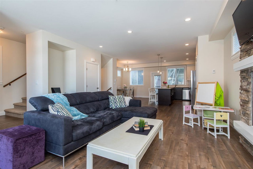 DETACHED HOME UNDER $560,000 with amazing VIEWS! Open concept main floor with gorgeous kitchen featuring SS appliances, quartz counters & large pantry. Step right outside into your fully fenced backyard w/ covered cedar patio BACKING ONTO GREENSPACE… perfect for the kids and pets! Spacious living room w/ gas fireplace and a lovely sitting balcony to enjoy the views and to watch your kids play at the park! Upper level w/ 3 large bdrms incl. STUNNING master w/ large walk in and spa like 5 piece ensuite w/ soaker tub. SUPERSIZED double garage w/ storage room/mancave/workshop @ the back- whatever your heart desires! Enjoy the benefits of a strata without the “attachment”!! $170/month (water/sewer/garbage/etc) BEST DEAL ON PROMONTORY!!