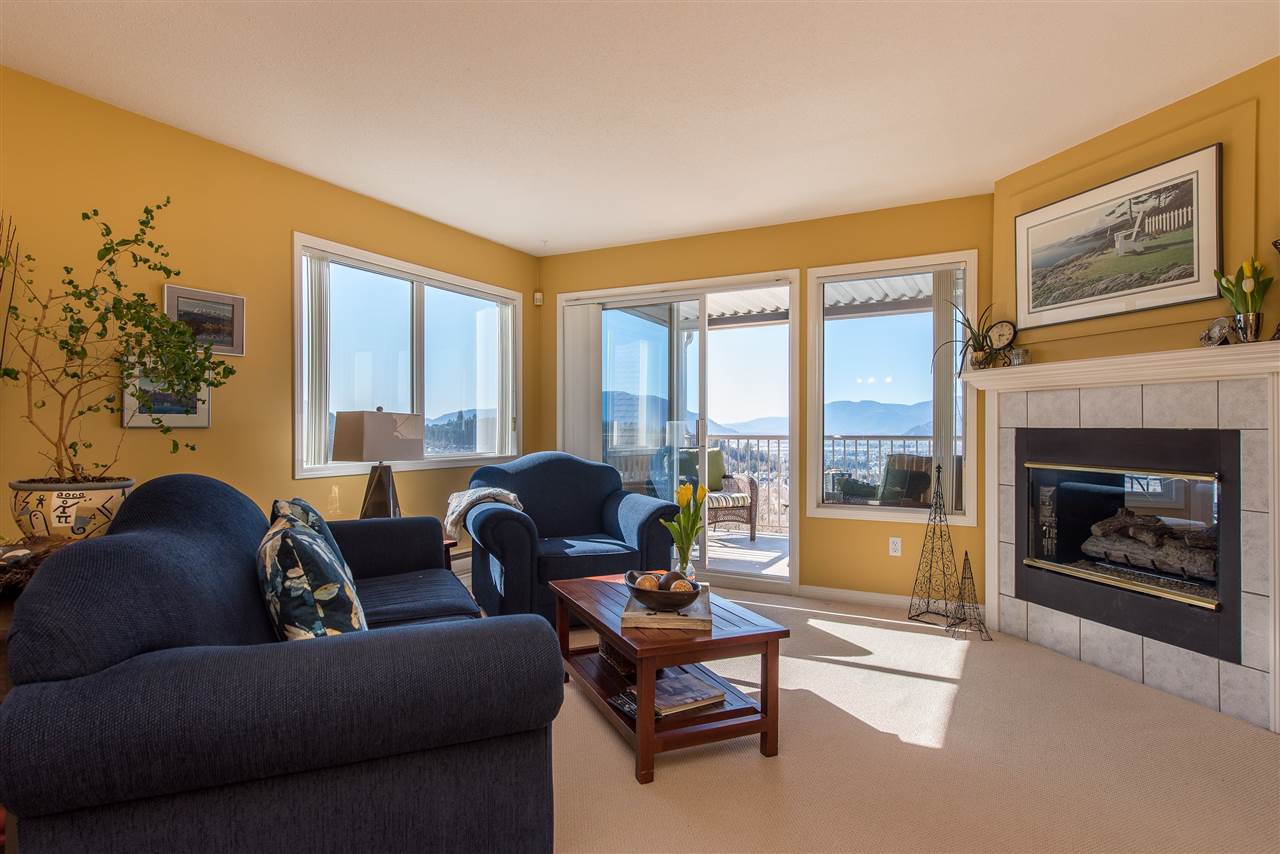 Enjoy life ABOVE IT ALL and experience GOLDSPRING HEIGHTS. This highly desirable 2 bdrm/2 bath MAIN FLOOR LIVING layout is incredible and RARE. Entry level with oversized single car garage and welcoming tiled foyer. A set of stairs leads you to the sprawling main floor with UNOBSTRUCTED VIEWS of the valley floor- simply incredible. Spacious kitchen w/ ample storage & bright eating nook w/ access to the LARGE COVERED VIEW PATIO. Living room w/ 2 way gas fireplace to stay cozy on those chilly evenings. LARGE master w/ vaulted ceilings & walk in closet PLUS a HUGE ensuite w/ soaker tub & separate shower. Excellent strata & quality built from top to bottom. Don’t miss your chance and book your showing today! Pets & all ages allowed but not rentals.