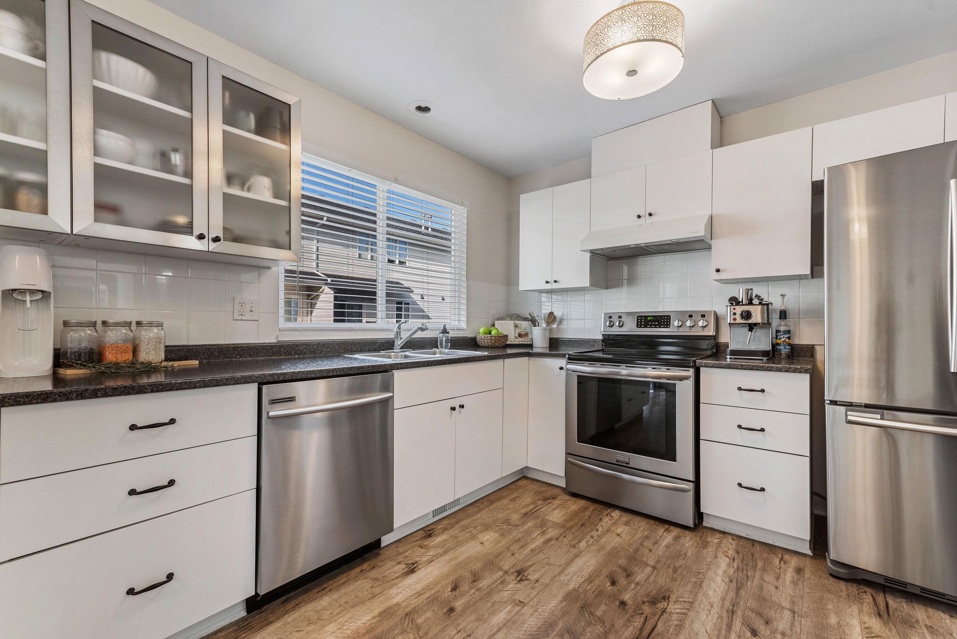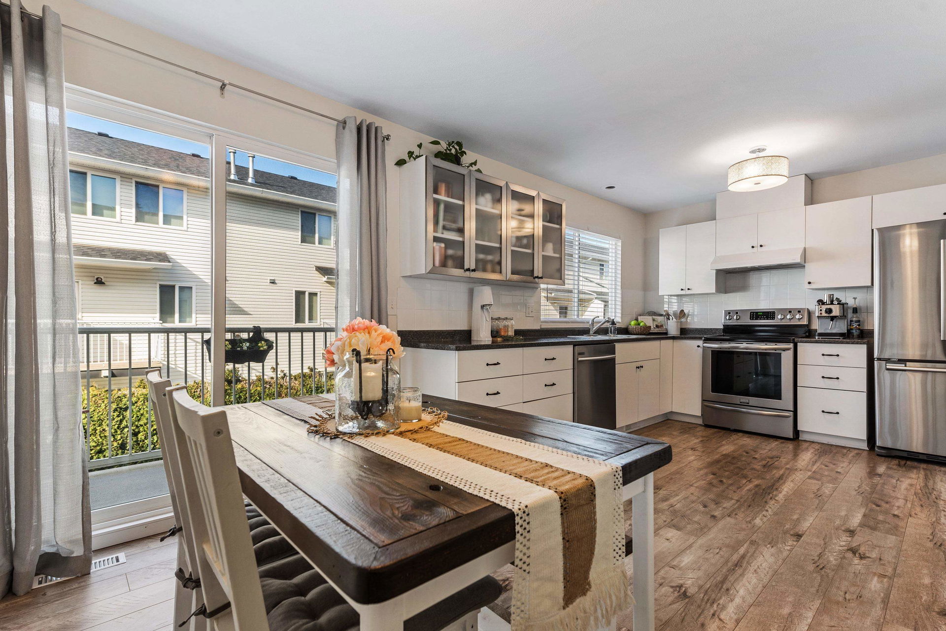 RENOVATED SARDIS TOWNHOME! This 3 bdrm + rec room home SHINES and has been kept in IMMACULATE CONDITION. Beautiful main floor w/ spacious living room featuring laminate flooring & natural gas fireplace w/ barnwood shiplap. BRIGHT UPDATED KITCHEN w/ white cabinets, SS appliances, eating nook, & access to the upper patio. Upper floor has 3 bdrms, including the master suite w/ walk-in closet & private 3 piece ensuite w/ shower. Fresh paint, modern fixtures, & newer carpeting upstairs. Finished bsmt w/ large rec room (can be 4th bdrm) w/ access to the FULLY FENCED BACKYARD. Complex is in walking distance to Garrison Crossing for shopping & parks, across the street from Watson Elementary, & excellent highway access for commuting! Low fees, pet friendly, & newer roofs! Offers AS PRESENTED!