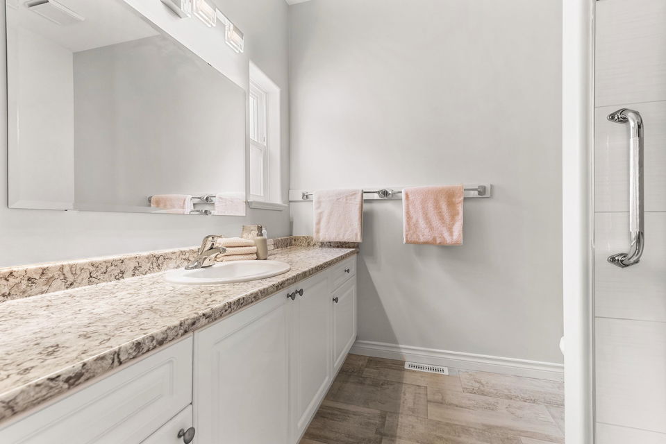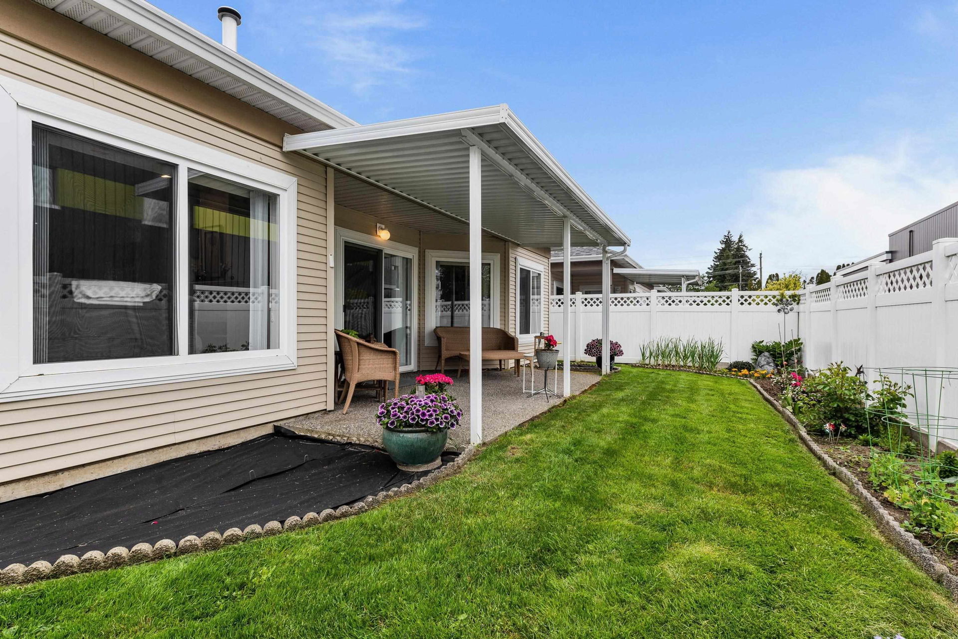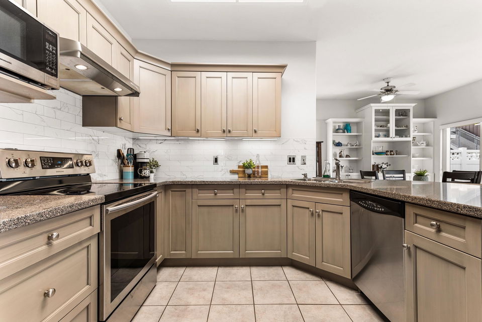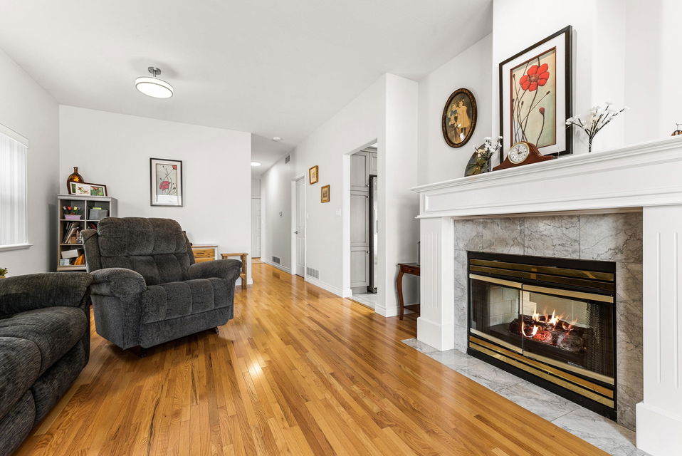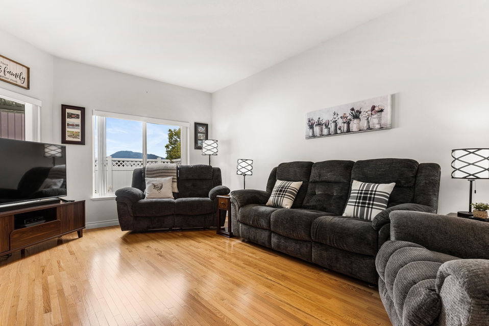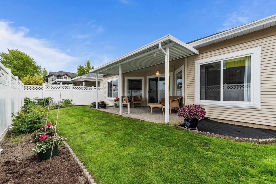 Welcome to Hazelwood Grove! This well kept, detached rancher features 3 large bedrooms & 2 fully updated bathrooms. A private fully fenced backyard & large updated kitchen with double sided fireplace. This unit features one of the larger backyards in the complex; providing lots of sunshine and space to garden or relax under the cover patio. Enjoy the new hardwood flooring as well as the stainless steel appliances. The 55+ gated community is centrally located to shopping and recreation and has a clubhouse that has something for everyone. Amenities of the clubhouse include games room, indoor pool, hot tub, sauna, library and guest suite. Plus, RV parking is available and lots of visitors parking. Strata $333/month