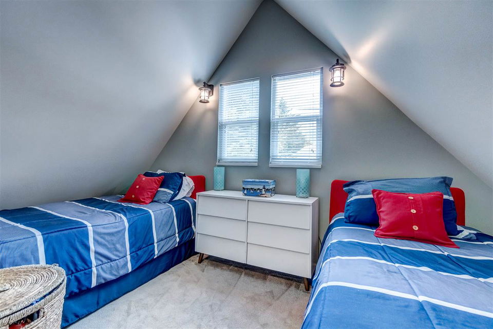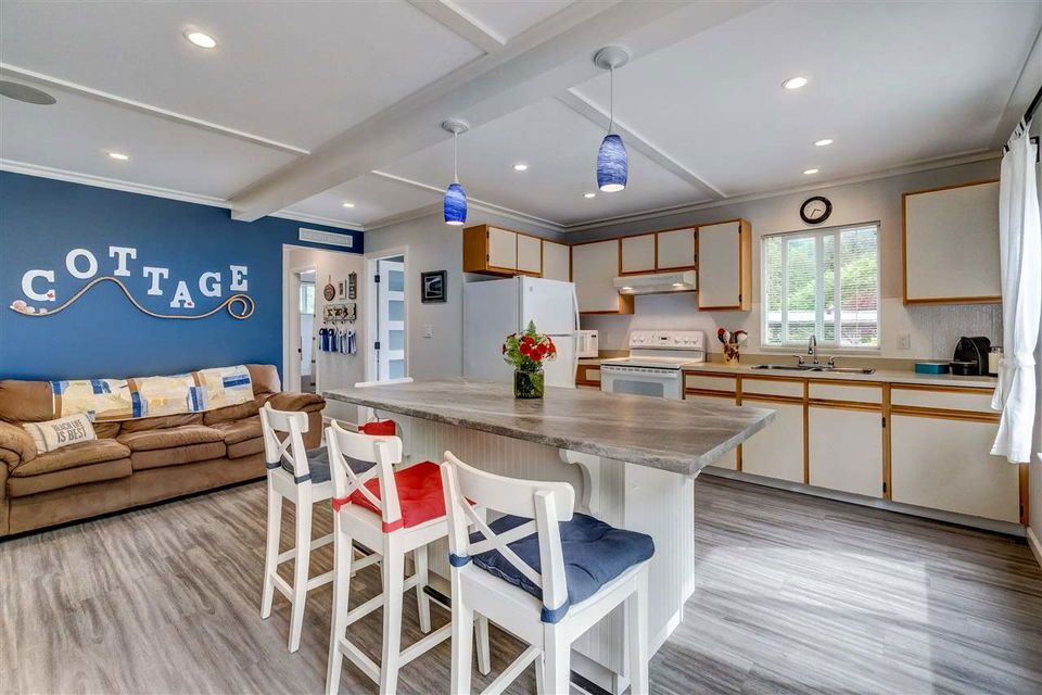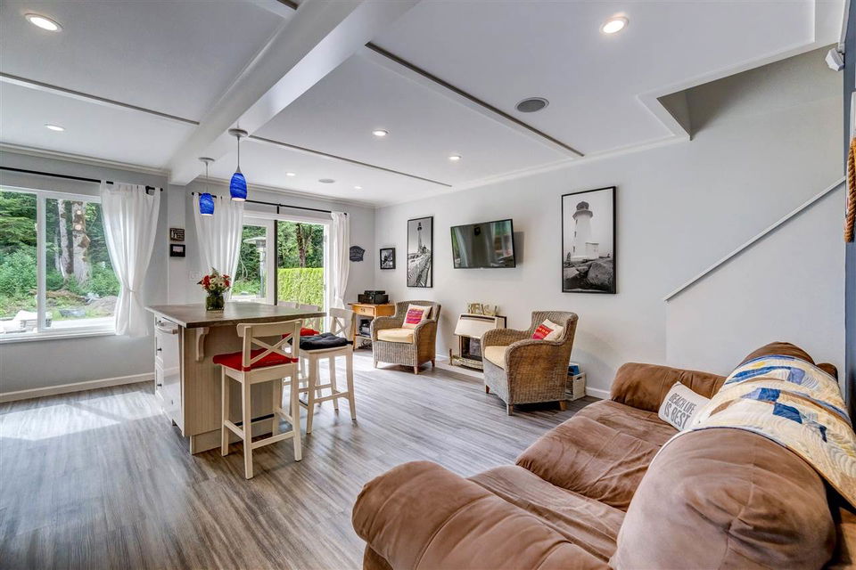 Spectacular 3 bdrm & 2 bathroom RENOVATED home only a 2 minute walk to the PRIVATE community waterfront & docks @ LINDELL BEACH! Sitting on a lovely 4835 sq ft lot w/ ample parking for 6 cars. Private location across from parkland w/ biking trails, & steps to the tennis courts & playground. Designed for entertaining & enjoying the beauty that surrounds, you’ll find a HUGE 510 sq ft wrap around sundeck w/ breathtaking mountain views PLUS a nice backyard w/ a storage shed for the lake toys. Spacious open concept kitchen w/ oversized island w/ seating for 4+. Cozy living room w/ natural gas fireplace-great for year round heating! TURN KEY HOME-this home comes fully equipped w/ all appliances, furniture-the WORKS. (Amazing rental investment!). Have a boat? No problem-mooring available!