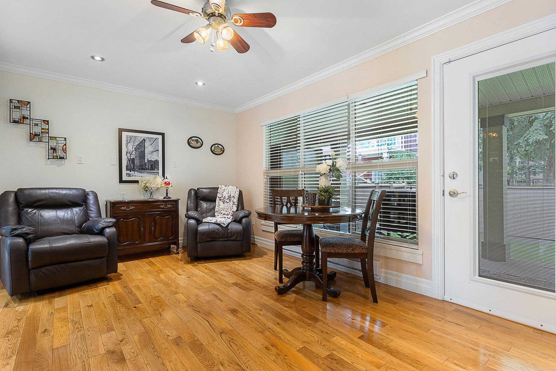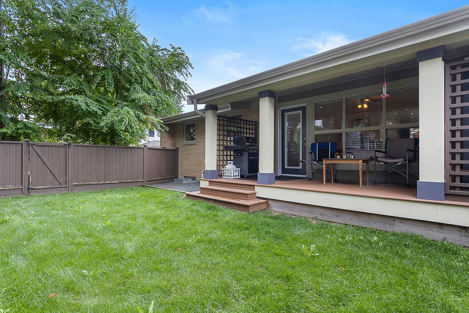 RARE FIND! A VERY UNIQUE layout of a RANCHER W/ BSMT in the popular complex of Quarters West in stunning Garrison Crossing! Tucked away in the quiet back corner, this immaculate END UNIT has a private location w/ large fenced backyard & mature privacy trees. Charming curb appeal w/ a large covered front porch and parking for 3 cars in the driveway! ALL main floor living w/ 2 bdrms, full bathroom, laundry, & a spacious kitchen w/ upgraded SS appliances. Hardwood flooring, crown mouldings, modern paint, upgraded fixtures- shows 10/10. Finished bsmt w/ 3rd bdrm, massive recreation room, & AMPLE STORAGE! Updated BWT, b.i. vac, & exterior & interior storage cabinetry to stay! BEST location w/ a peaceful quiet backyard- 2 pets all sizes allowed, rentals ALLOWED.