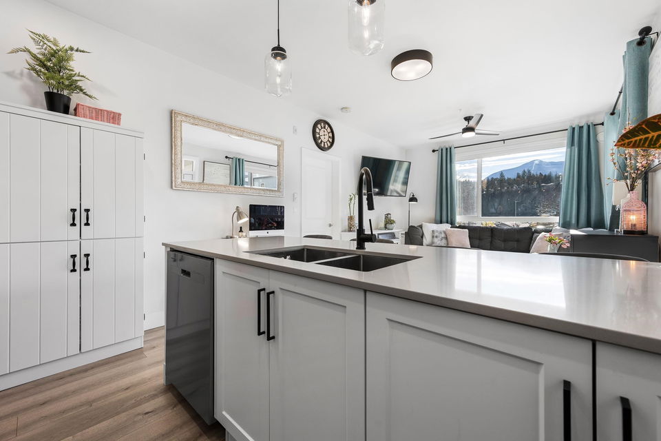 Immaculate 2-bedroom, 2-bathroom corner unit condo in the heart of Sardis’ vibrant Iron Horse community. Looks like new—without the GST! Beautifully designed interior featuring quartz countertops, white shaker cabinets, SS appliances & thoughtful finishes throughout. Huge covered balcony w/ stunning mountain VIEWS. In-suite laundry & secure underground parking for added convenience. Located in a prime walkable area, just moments from schools, shopping, restaurants & parks. With easy access to scenic trails, the Vedder River & Cultus Lake, this location is a dream for nature lovers. This bright, modern home offers exceptional value in one of the area’s most sought-after neighbourhoods.