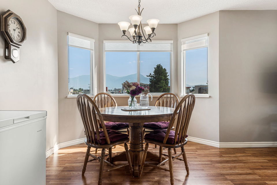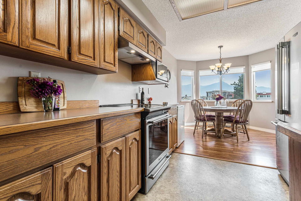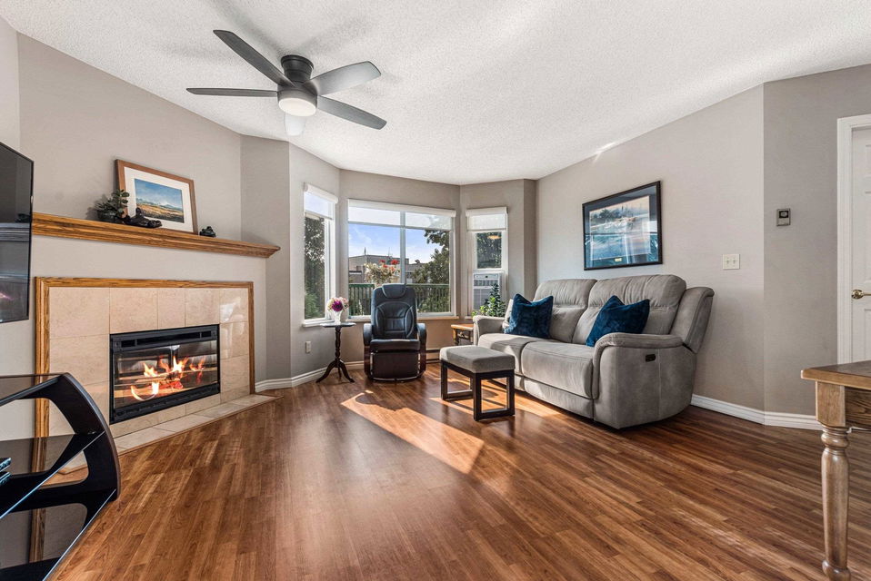 FABULOUS SOUTHERN 2 bdrm & 2 bathroom CORNER SUITE @ The Hawthorne! Located blocks to the Chilliwack Landing Leisure Center, Cultural Center, Art Gallery, & only 5 mins to District 1881. This 2 bedroom & 2 bathroom condo has seen multiple renovations including laminate flooring, paint, and STAINLESS STEEL APPLIANCES! Spacious living room w/ natural gas fireplace (included in strata fees), & beautiful mountain views. OVERSIZED master bdrm w/ full ensuite washroom. Covered patio for those morning coffees and afternoon wines! NEW WASHER/DRYER, storage locker, amenity room, elevator, & secure underground parking too! 45+ age restrictions, no pets or rentals. Wonderful quiet living for retirement and no car needed- walking distance to all shops and recreation!