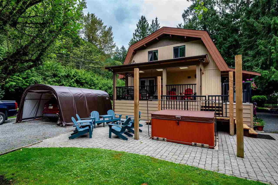 ORIGINAL OWNER HOME located on a majestic 8668 sq ft lot backing Frosst Creek w/ partial CULTUS LAKE VIEWS! This 2 story 1871 sq ft home features an updated kitchen w/ fir floors, pine cabinets, granite counters, undercab lights, SS appliances, & french door access to a MASSIVE covered patio w/ skylights, privacy shades, & mountain views- amazing for year round enjoyment! Cozy living room w/ gas fireplace & b.i. cabnitry, hardwood floors, laundry room w/ sink, & a convenient mud room off main entry. 4 bdrms and a full bathroom upstairs, incl. master w/ private upper patio. Concrete 5’10 CRAWL SPACE (currently used as workshop), ALL patios w/ under storage for all the lake toys, garden shed, wood shed, HOT TUB, & dual gates front & back for the boats/RV! Boat mooring options available!
