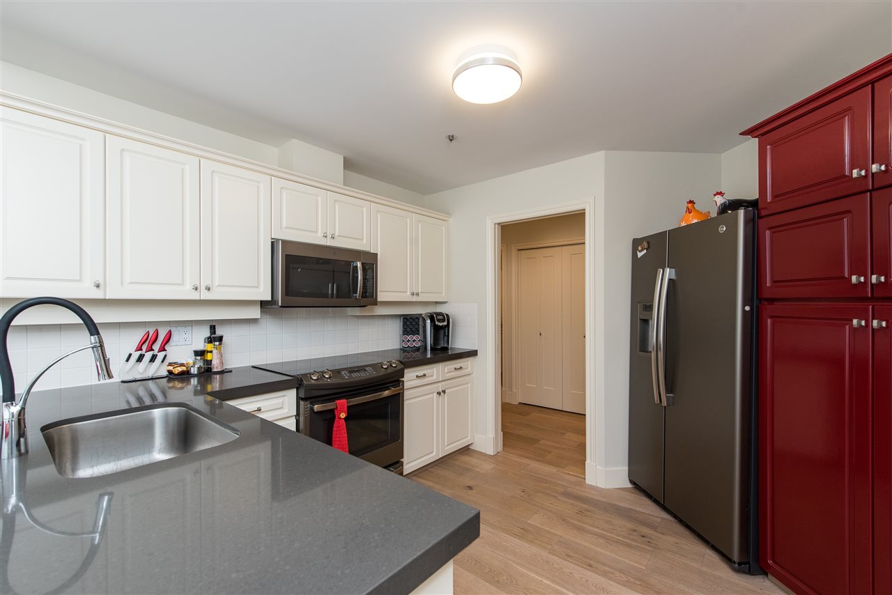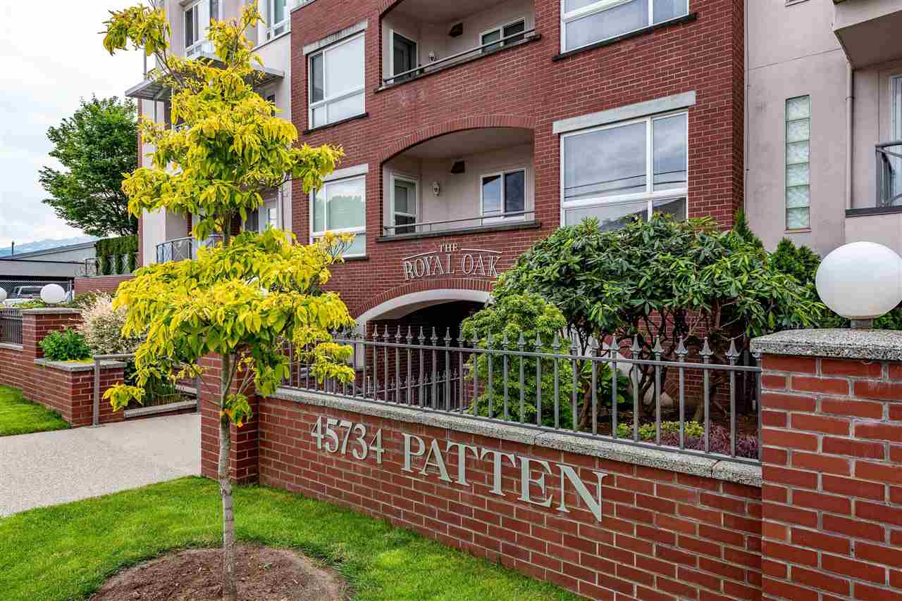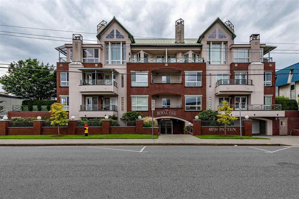 MAGAZINE WORTHY 2 bdrm & 2 bath CORNER UNIT in the prestigious 55+ building of “THE ROYAL OAK”. This jewel of a building features an indoor pool, sauna, hot tub, exercise room, guest suite, secure underground parking, storage lockers, AND a large meeting room. This modern classy condo was FULLY RENOVATED in 2018 feat.hardwood flooring, designer paint, new trim/doors/hardware, & a lovely kitchen w quartz & SS appliances. Spacious bedrooms incl. master w/ private en-suite and large closet. Southern exposure w/ lots of natural light and a covered patio w/ lovely mountain views. ALL IN strata fees incl. water/sewer/garbage/insurance/natural gas/ hot water & ALL amenities- excellent deal @ $405/month! Come find out why “The Royal Oak” has ALWAYS been the Cadillac of Chilliwack condo living.