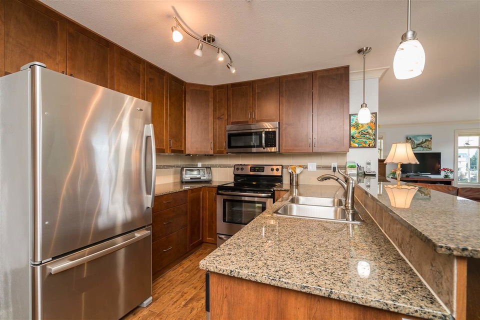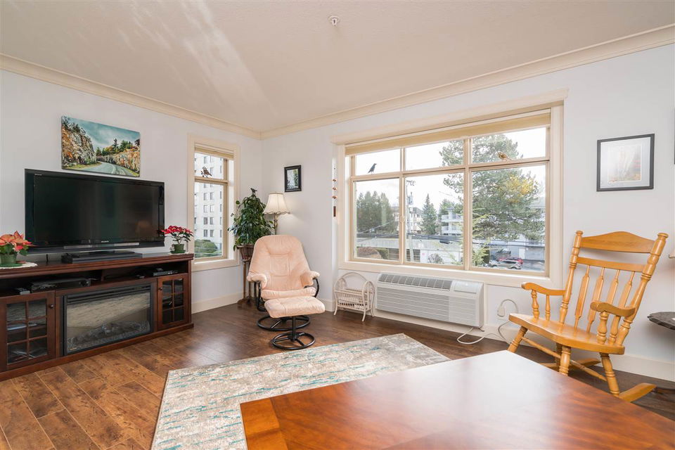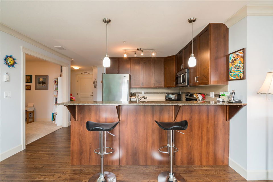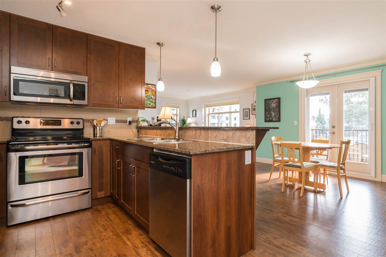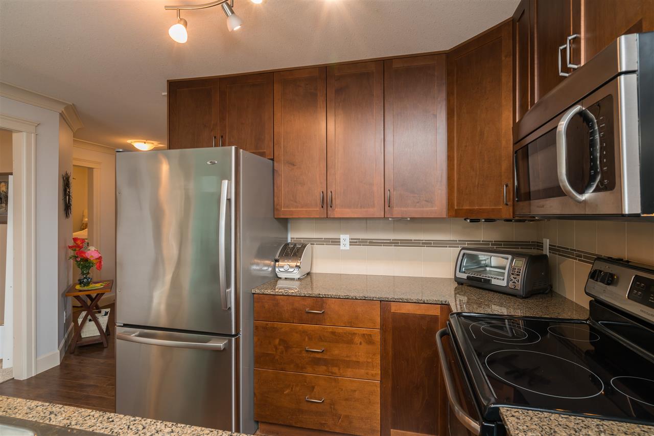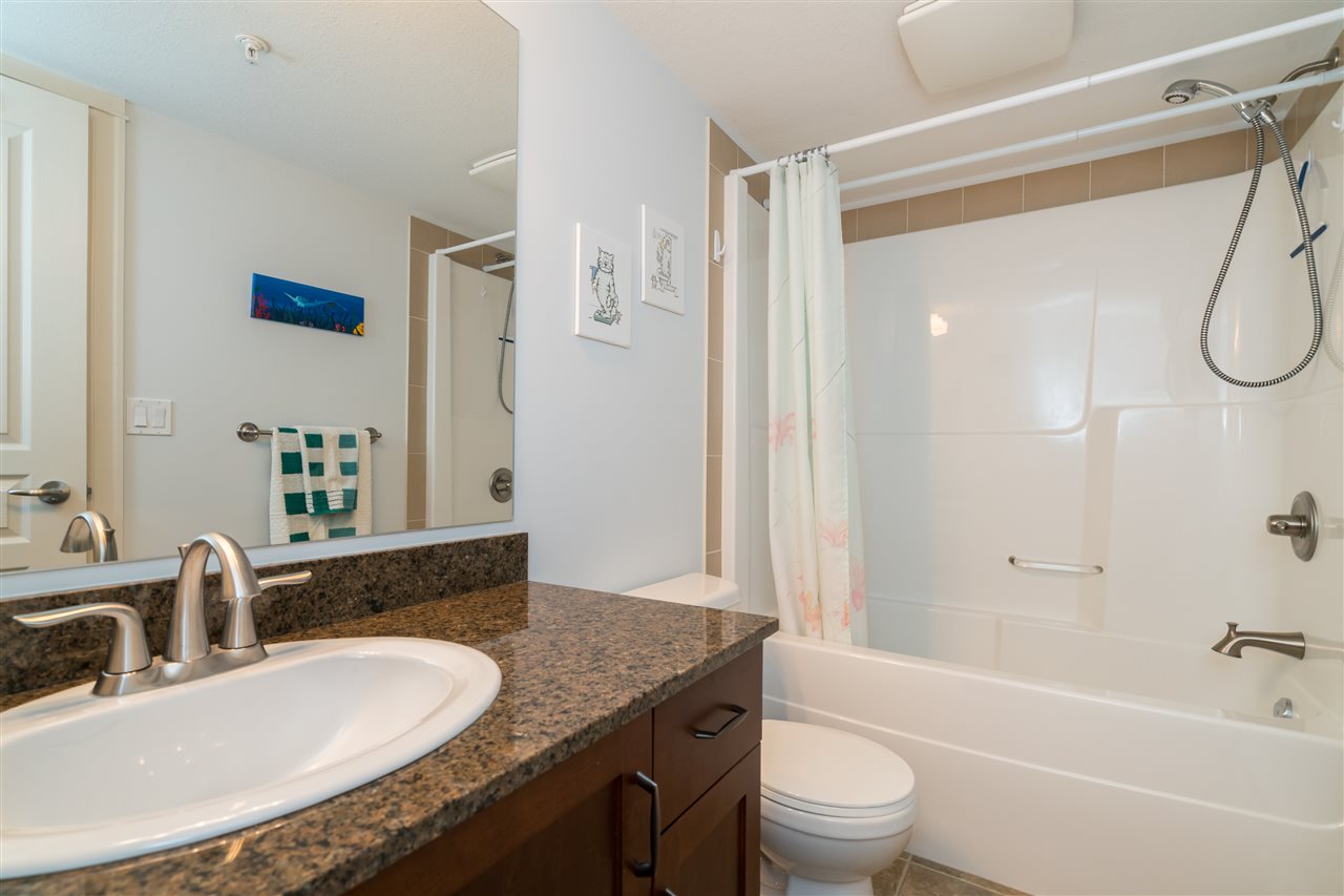 CORNER 2 BDRM & DEN @ SIERRA GRANDE! Condo living at its finest in this 1245 sq ft original owner BRIGHT SOUTH FACING home that shows BRAND NEW. Enjoy stunning mountain views from all windows and your large covered patio w/ phantom screen door. Open concept kitchen w/ granite, maple cabinets, stainless steel appliances, & a tiered 4 person eating bar. Large living room w/ electric fireplace, & upgraded window coverings. Newer carpet in bdrms & den, newer washer/dryer, & designer paint throughout. Spacious master bdrm w/ 6 piece ensuite w granite & a large walk in closet! Secure underground parking, exercise room, & storage locker. 19+ age restriction, no rentals, & pets w/ restrictions. Steps to all amenities!