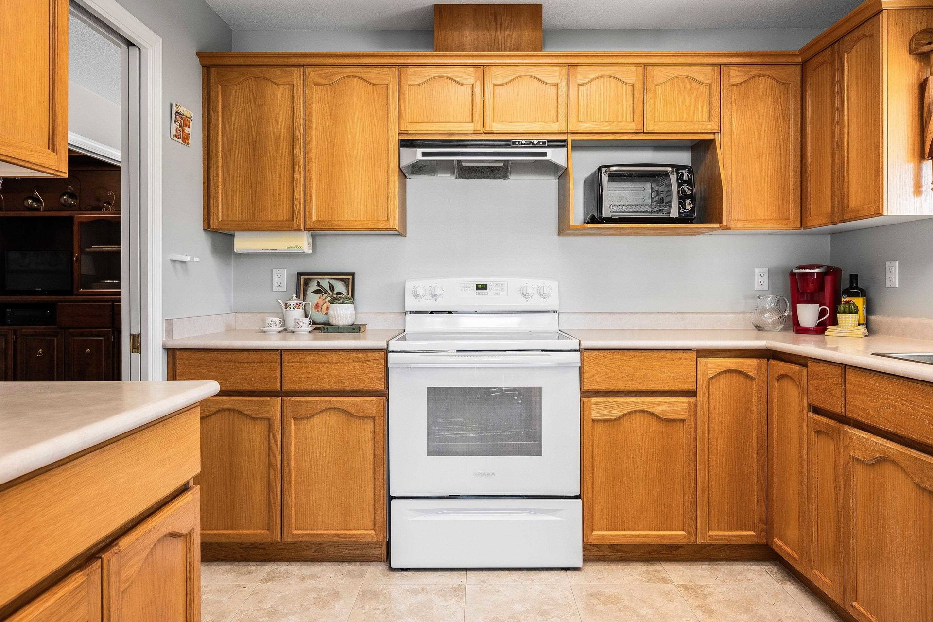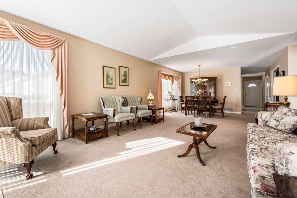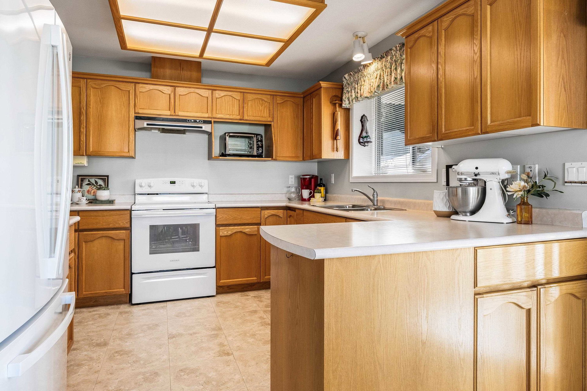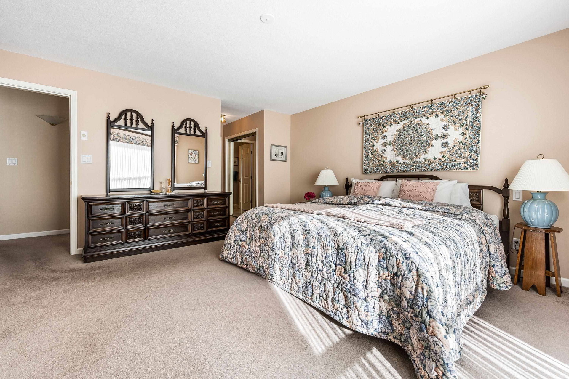 PRIME CORNER LOT! This BEAUTIFULLY maintained home offers the perfect blend of comfort, functionality & pride of ownership. Featuring 2 beds, 2 baths + den, this HIGHLY desirable layout is ideal for downsizers or those seeking one-level living. Major updates incl. newer furnace & A/C for worry-free comfort. Bright kitchen with updated appliances opens to a warm, inviting living space. Step into your private backyard oasis with extended patio — PERFECT for summer BBQs & quiet evenings. Not to mention the spacious primary with 3pc ensuite & his-and-hers closets & en with B/I shelving. The skylit laundry adds natural charm, R/I vacuum for added convenience & a fully finished garage complete with built-ins, workbench & enhanced lighting. Absolutely move-in ready!