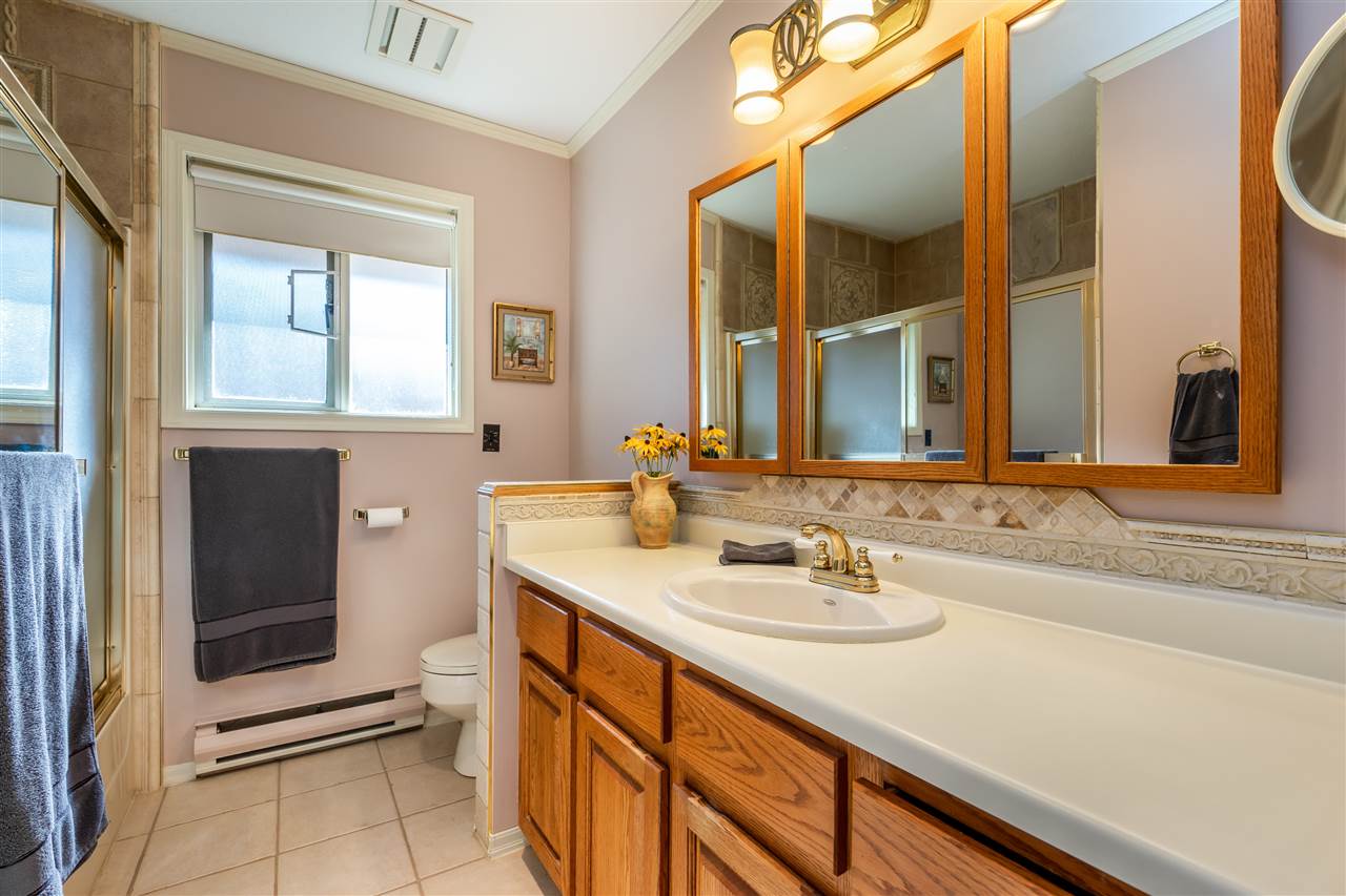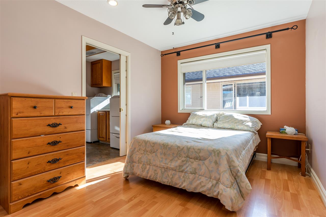 MOVE-IN-READY upper level townhome backing GREENSPACE in the exclusive gated comlpex of EDENBANK. This popular 55+ age restricted community features a clubhouse w/ pool, tennis courts, RV parking, and manicured gardens/grounds. This 1280 sq ft 2 bdrm PLUS den home has seen numerous updates over the years including paint, flooring, fixtures, and kitchen renovations. South facing BRIGHT kitchen w/ granite counters, under cab lighting, and STAINLESS STEEL appliances. Classy office w/ modern barn door, skylight, oak panelling & crown mouldings. Large master bedroom overlooking the trees w/ private ensuite feat. dual sinks. Spacious living room w/ gas fireplace & great views. Single car garage parking w/ full driveway. Come and see why Edenbank is one of Sardis’s premium gated communities!