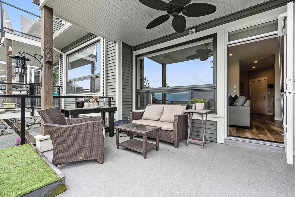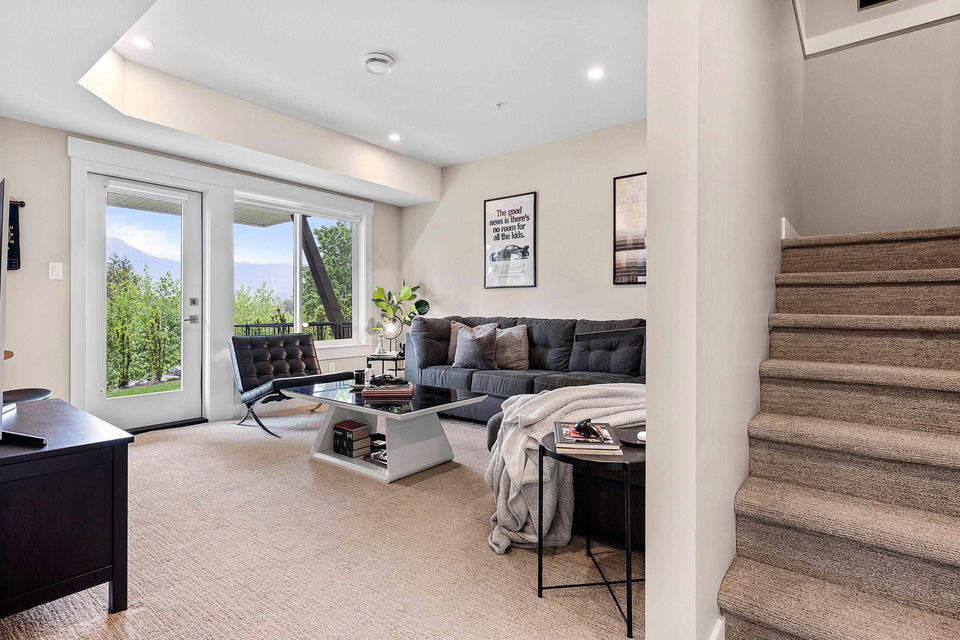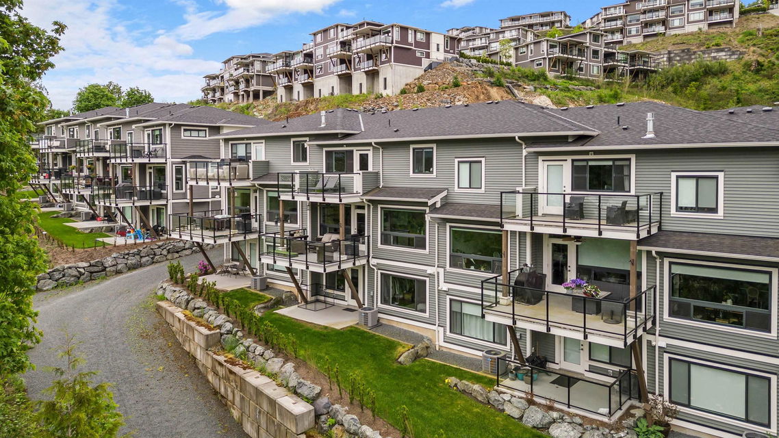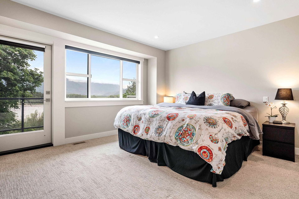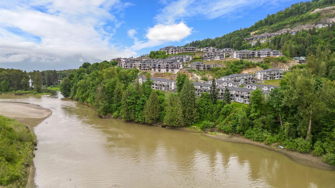 WATERFRONT 4 BDRM & 4 BATHROOM TOWNHOME! Located at “Water’s Edge” on Chilliwack Mountain, the FRASER RIVER VIEWS and endless surrounding mountains are your backdrop for SERENITY! Nearly new and shows 10/10, enjoy the spacious open concept main floor w/ modern 2 tone kitchen & SS appliances. Step out to the covered patio w/ gas BBQ & deck fan or relax in the living room w/ gas fireplace. Upper floor w/ 3 bdrms; primary w/ INCREDIBLE SPA ENSUITE incl soaker tub w/ RIVER VIEWS, walk-in closet, & PRIVATE PATIO. Laundry on upper level for added convenience! BRIGHT WALKOUT BASEMENT w/ 4th bdrm, full bathroom, large family area w/ yard access. LARGE lower storage room, DOUBLE GARAGE, full driveway, central A/C, & built in vac. Fabulous VALUE for an incredible lifestyle!