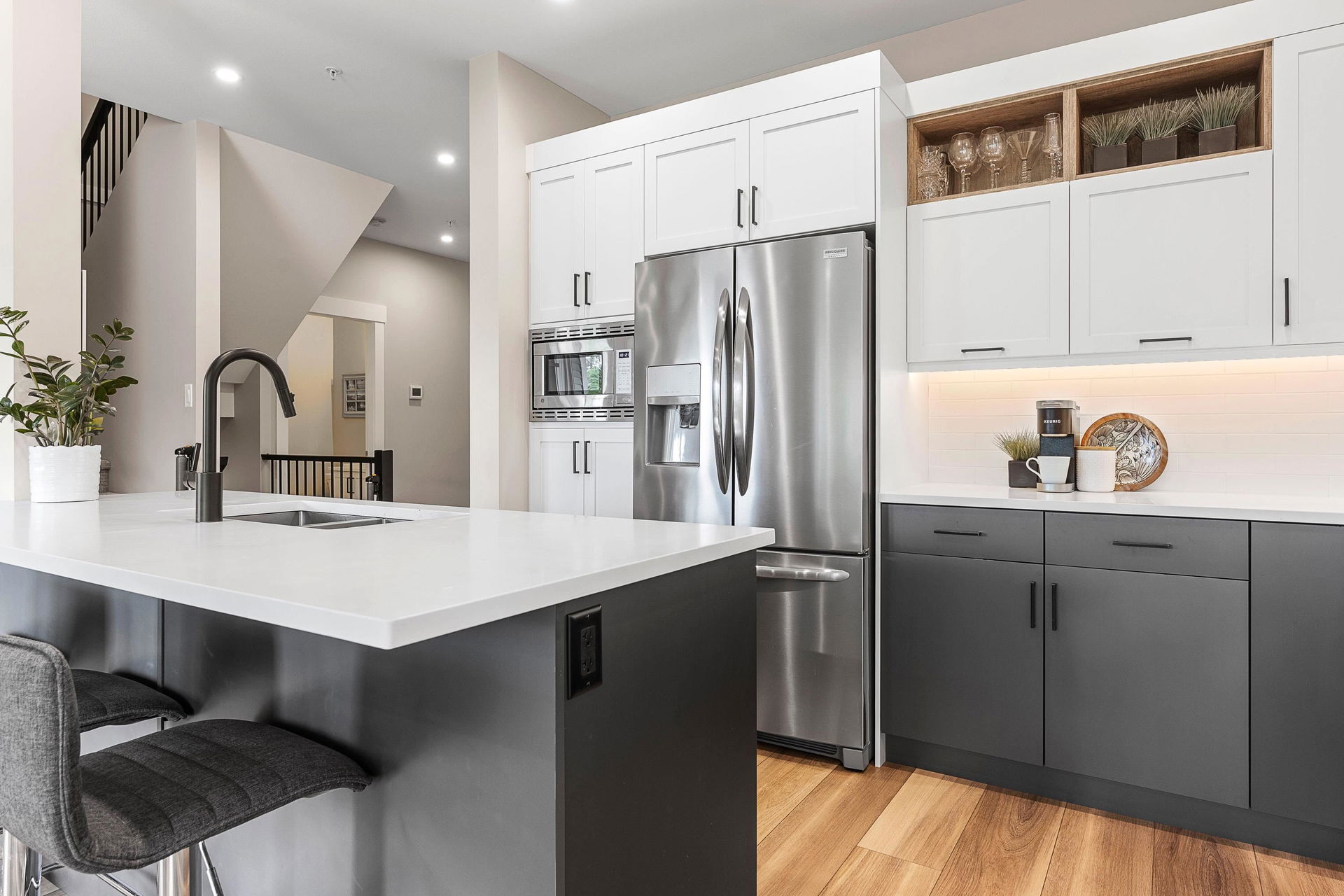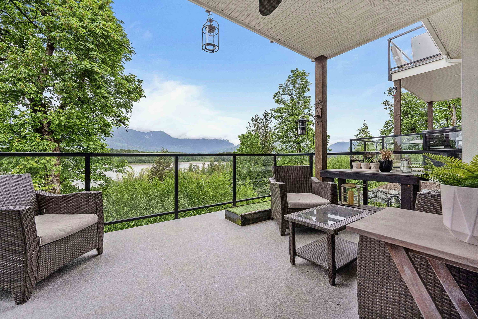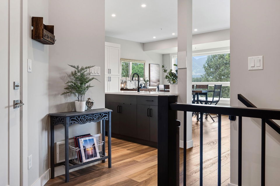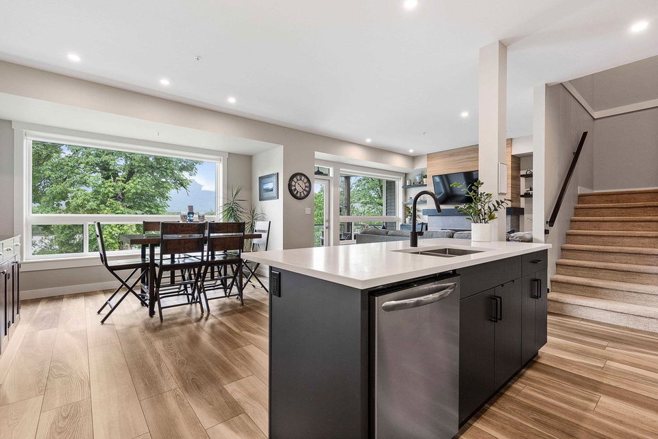 WATERFRONT 4 BDRM & 4 BATHROOM TOWNHOME! Located at “Water’s Edge” on Chilliwack Mountain, the FRASER RIVER VIEWS and endless surrounding mountains are your backdrop for SERENITY! Nearly new and shows 10/10, enjoy the spacious open concept main floor w/ modern 2 tone kitchen & SS appliances. Step out to the covered patio w/ gas BBQ & deck fan or relax in the living room w/ gas fireplace. Upper floor w/ 3 bdrms; primary w/ INCREDIBLE SPA ENSUITE incl soaker tub w/ RIVER VIEWS, walk-in closet, & PRIVATE PATIO. Laundry on upper level for added convenience! BRIGHT WALKOUT BASEMENT w/ 4th bdrm, full bathroom, large family area w/ yard access. LARGE lower storage room, DOUBLE GARAGE, full driveway, central A/C, & built in vac. Fabulous VALUE for an incredible lifestyle!