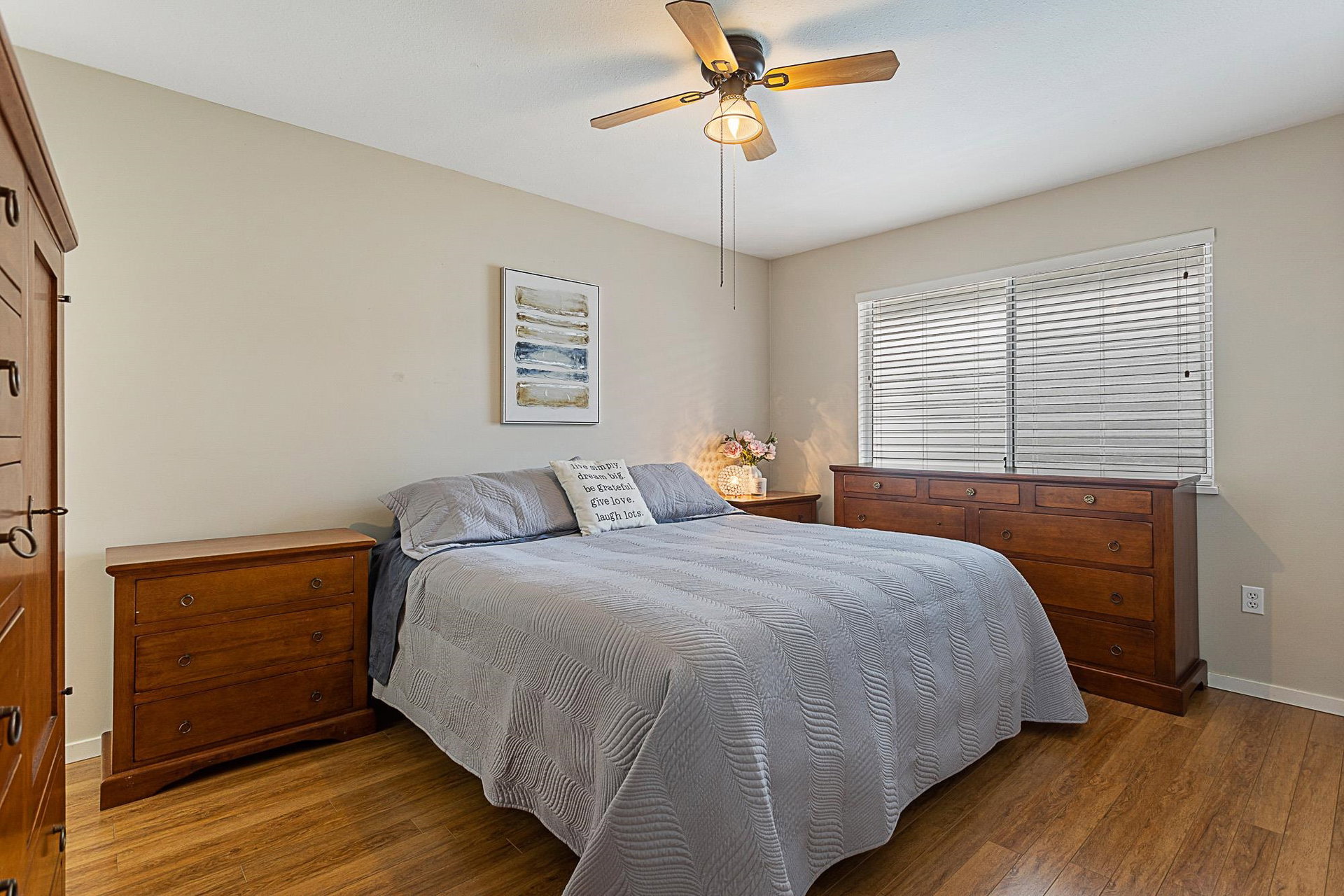 Cottonwood Retirement Village! This incredible 2 bdrm and 2 bathroom RENOVATED home sits at the quiet back of the complex and across from visitor parking near the clubhouse! Updated laminate flooring, modern paint, and beautiful kitchen w/ newer white cabinets and upgraded appliances. High efficiency furnace and central AC! Living room w corner gas fireplace that opens outside to a large covered patio. Bonus- storage shed in the backyard & an additional one in the covered carport parking! Master bdrm w/ quad closet & updated 3 piece washroom w/ walk in shower. $260/month fee & that covers maintenance & exteriors! Great location and fantastic complex. 55+, 1 pet, and no rentals.