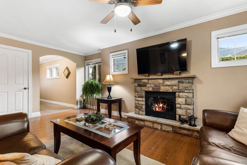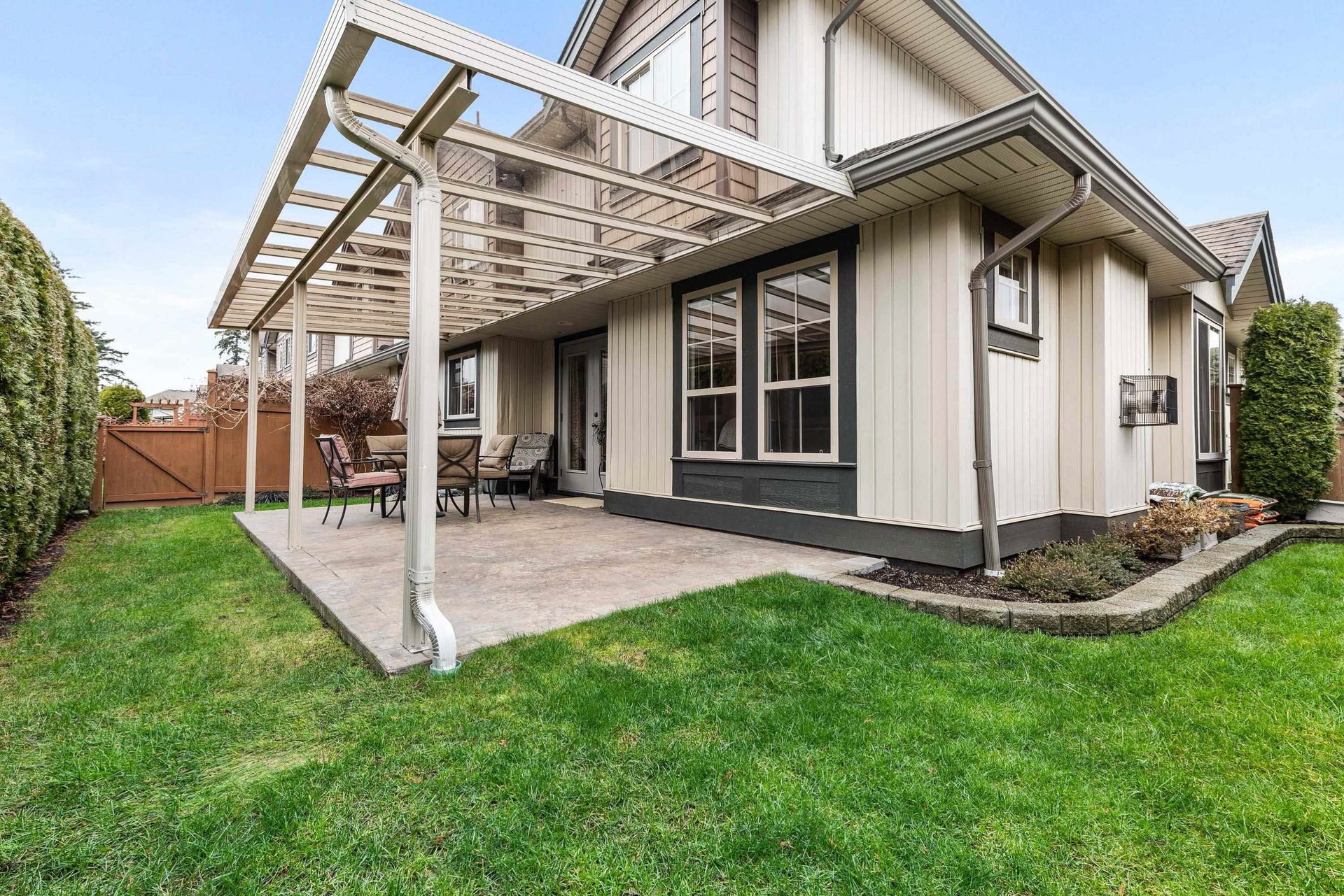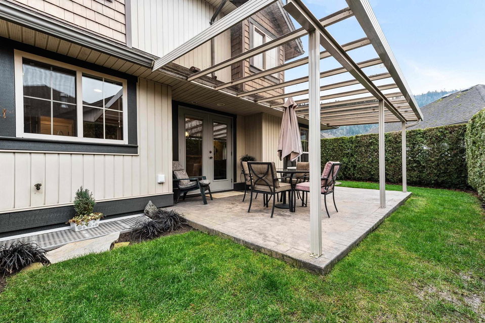 END UNIT @ ‘The Grove’ in the highly desirable community of Webster’s Landing! Steps from the Vedder River trail, parks, schools, & shopping. This is THE place to be in Sardis. Located on a BRIGHT corner lot w/ southern exposure, fenced wrap around yard, & extended covered stamped concrete patio! Inside you’ll find an open concept main floor, beauty LR w/ large windows & stone f/p, kitchen w/ gas range, granite counters, & laundry w newer W/D. 3 bdrms up, master w/ lrg w.i. closet & full ensuite. (Stair lift to upper floor too!) Finished bsmt w/ rec room & room for 4th bdrm! DBL garage & FULL driveway. A/C, b.i vac- you name it!