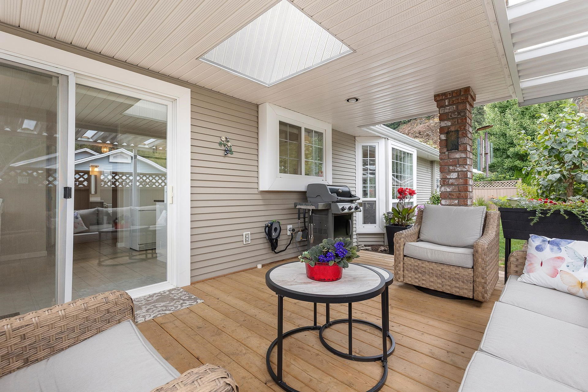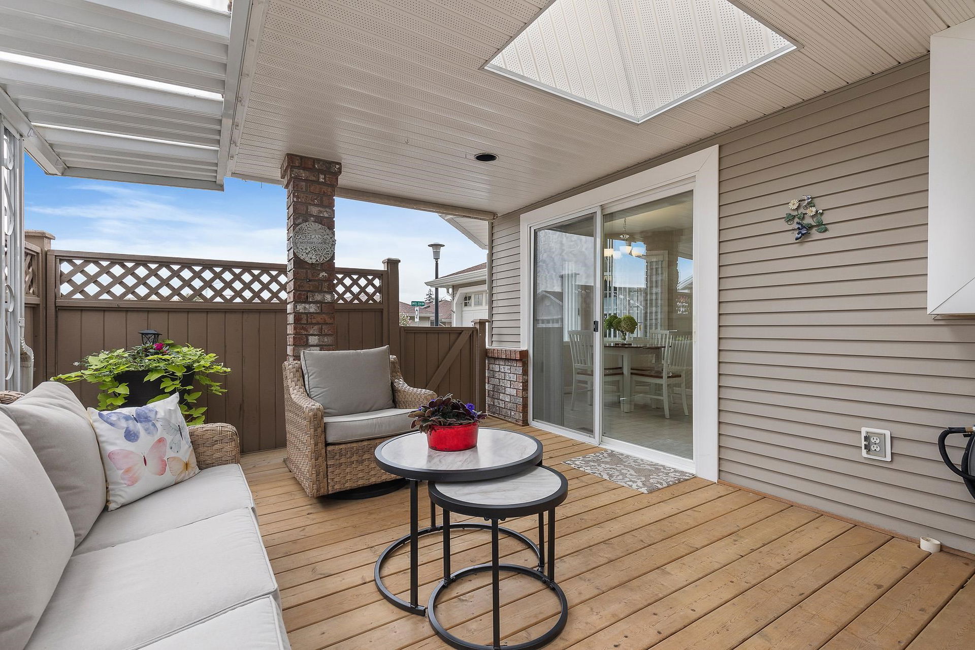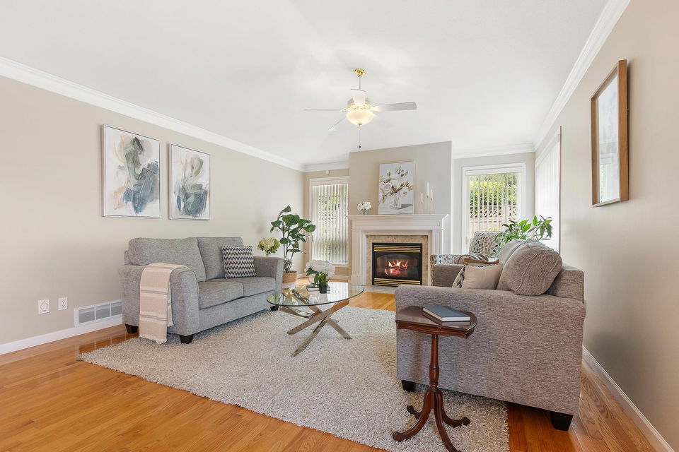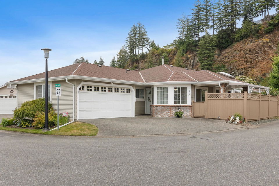 Beautiful RANCHER nestled on a lovely CORNER LOT offering PEACE & PRIVACY! Over 1600 sq.ft, this 2 bed, 2 bath + DEN home has had many updates throughout the years – fresh paint, NEW FURNACE(2024), NEW HWT(2023), MODERN kitchen, newer appliances, A/C, & STUNNING bathrm renovations featuring a NEW walk-in shower & vanity! Spacious layout w/ BRIGHT kitchen & breakfast nook, large DEN/OFFICE & living room w/ gas fireplace for the chilly evenings. GRAND primary suite w/ his/hers closets & fabulous 3pc ensuite. Step outside to your PRIVATE backyard w/ COVERED DECK, fenced yard, inground sprinklers & manicured gardens! DBL garage w/ b.i storage cabinets. Promontory Lake Estates is a 45+ age restricted GATED community w/ gardens, water fountain, walking trails & an active clubhouse! Pet friendly!