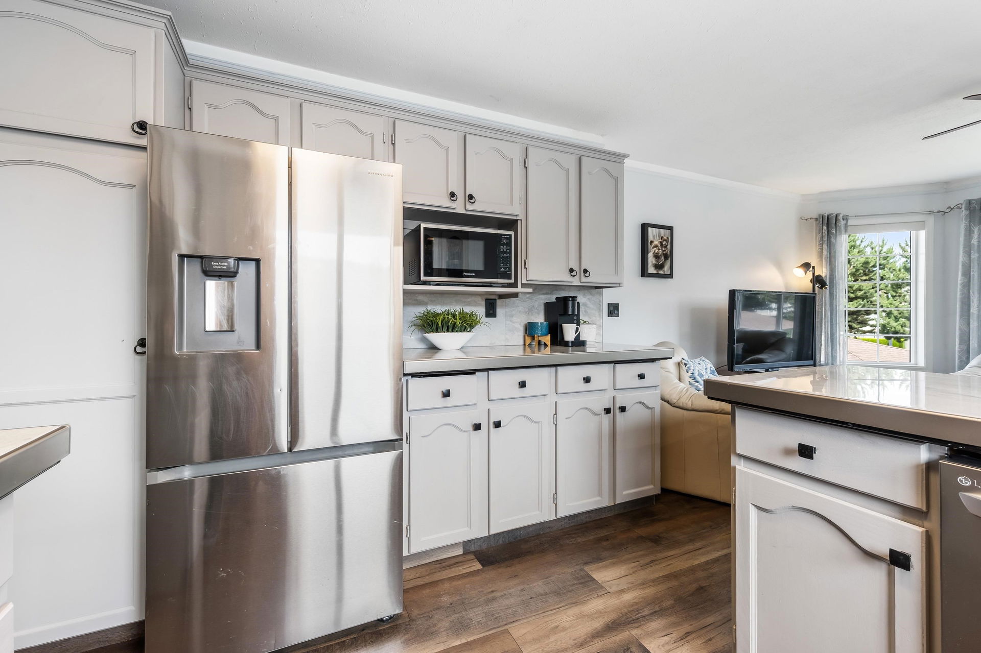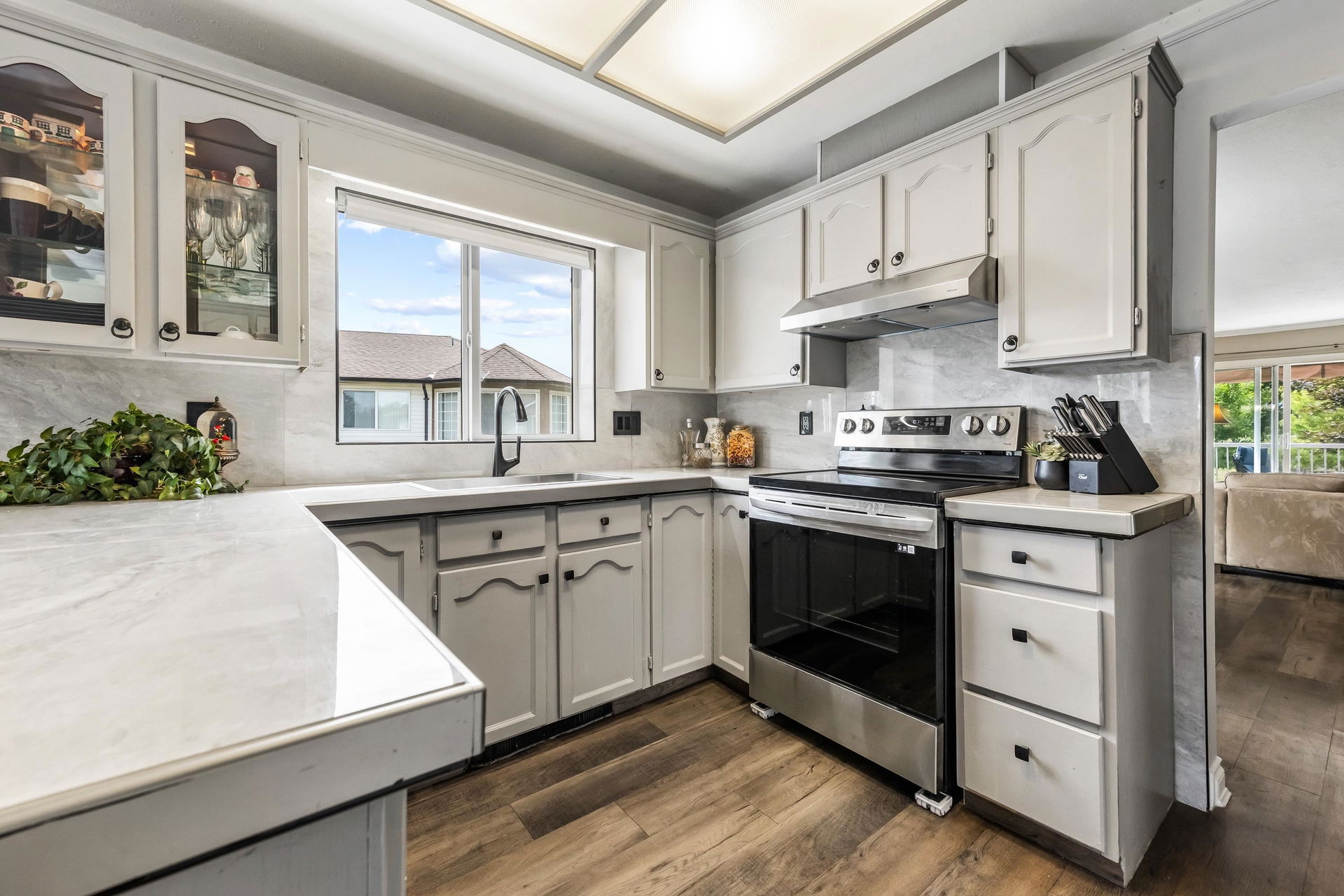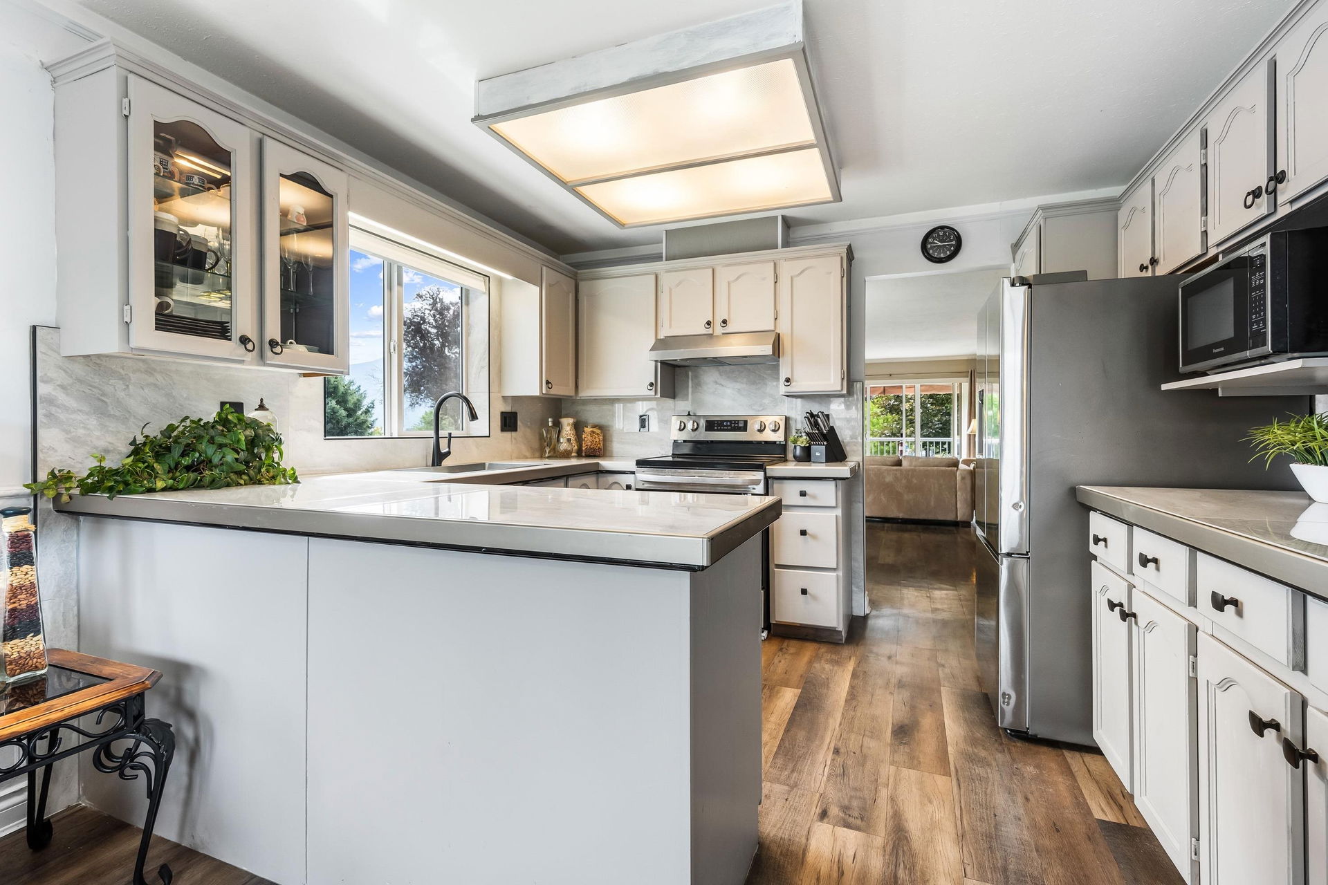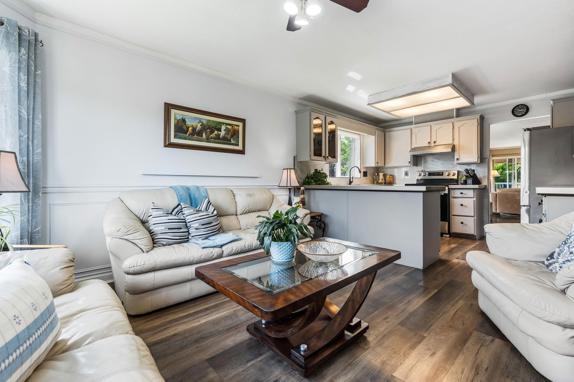 Beautifully maintained upper unit townhome in a peaceful 55+ age restricted community! Fabulous layout w/ 2 bedrooms & 2 bathrooms featuring tasteful updates throughout. Modern kitchen & lovely living room w/ bay window. Second living room has a cozy gas fireplace & access to the charming balcony overlooking greenspace! Spacious primary bedroom w/ walk in closet & renovated 3 pc ensuite w/ new vanity & walk in shower. Also including a secondary bedroom, full 4pc bath, in suite laundry, a carport parking stall & RV parking available! Central location close to shopping, transit & essential amenities!