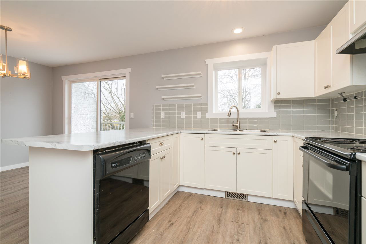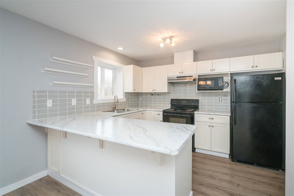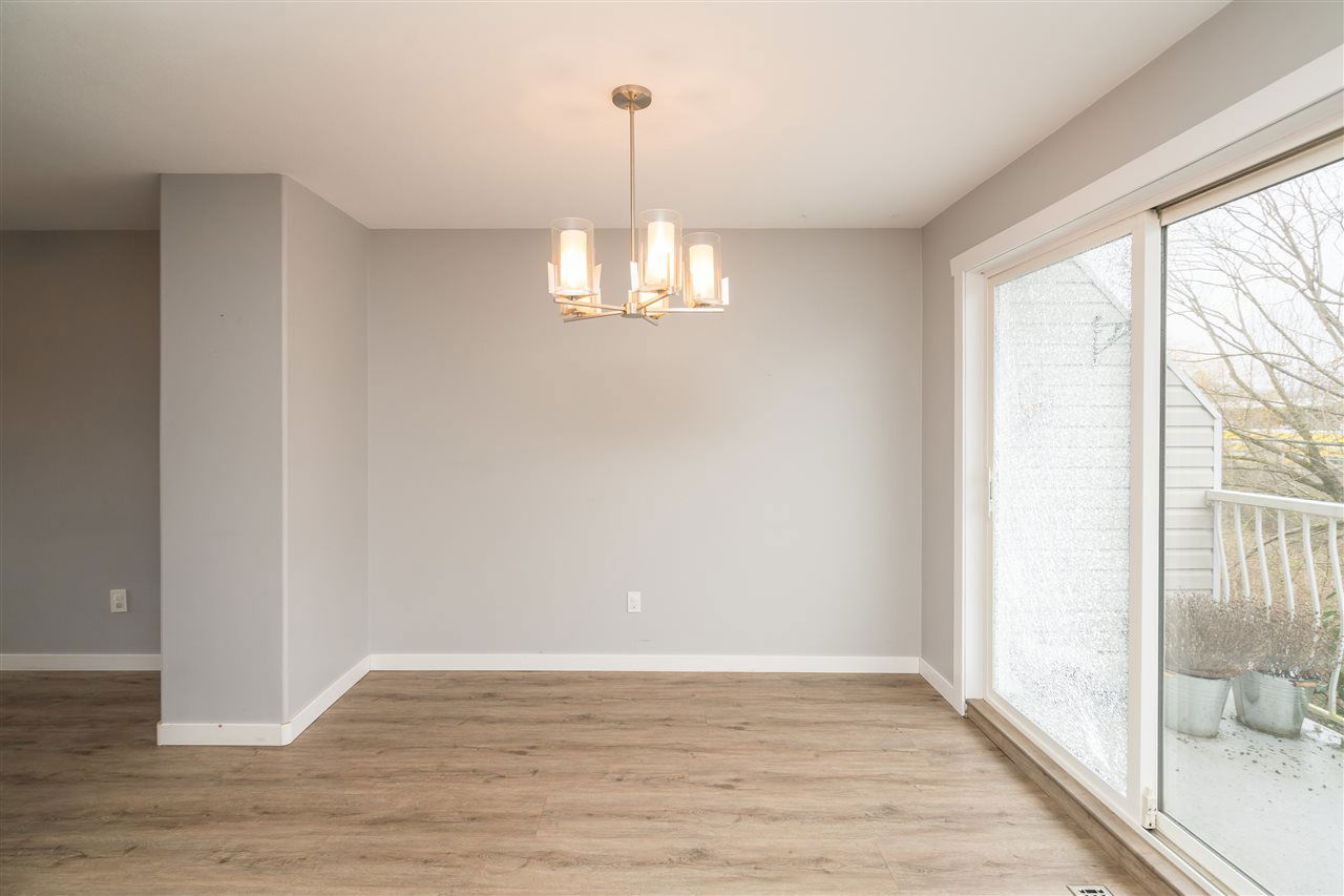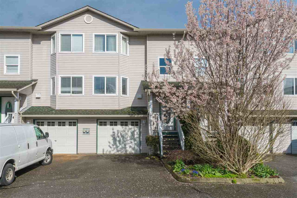 SPRINGFIELD PLACE! RENOVATED 3 BDRM TOWNHOME w/ fenced backyard in CENTRAL SARDIS! Walking distance to Cottonwood Mall, restaurants, Evans Elementary, & 2 mins to Eagle Landing Shopping Center & HWY #1! Excellent central location for everyone. This home is located in a great spot that backs onto GREENSPACE and is across from visitor parking. The spacious main floor has updated VINYL PLANK flooring, modern paint, and a re-freshed kitchen w/ white cabinets & modern counters. Large living room w/ gas fireplace & mountain views. 3 bdrms upstairs incl. master w/ 3 piece ensuite & walk in closet. Finsihed bsmt w/ yard access (can be 4th bdrm). LARGE DOGS allowed (3), no age restrictions, and no rentals. FORCED AIR heat- no expensive electric baseboard bills here! Immediate Possession Possible.