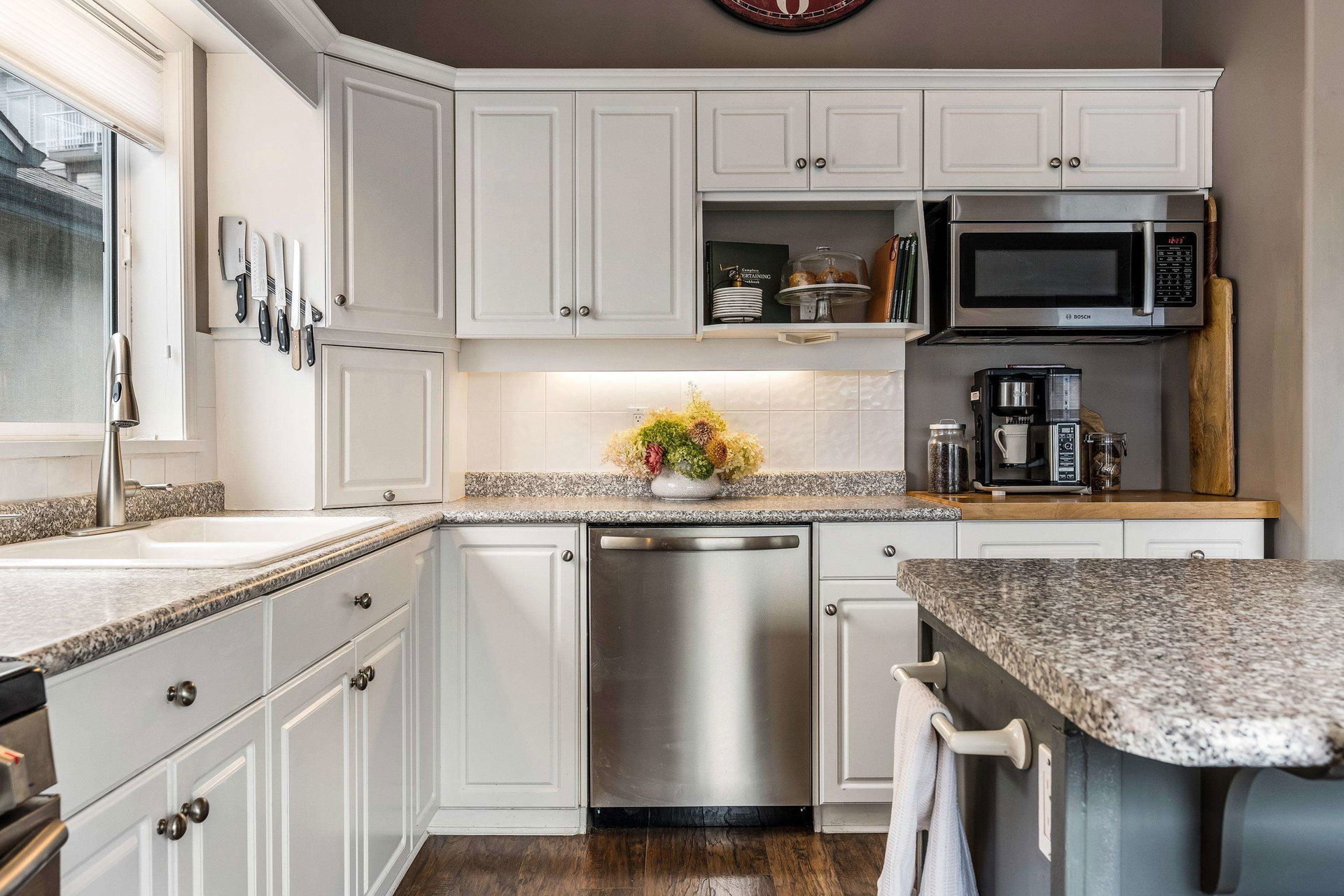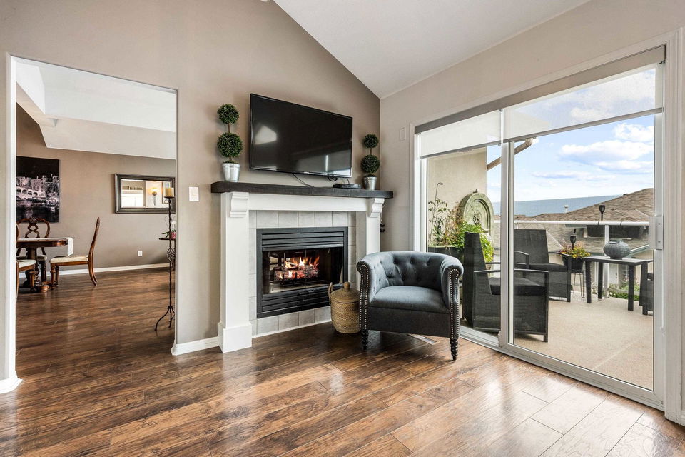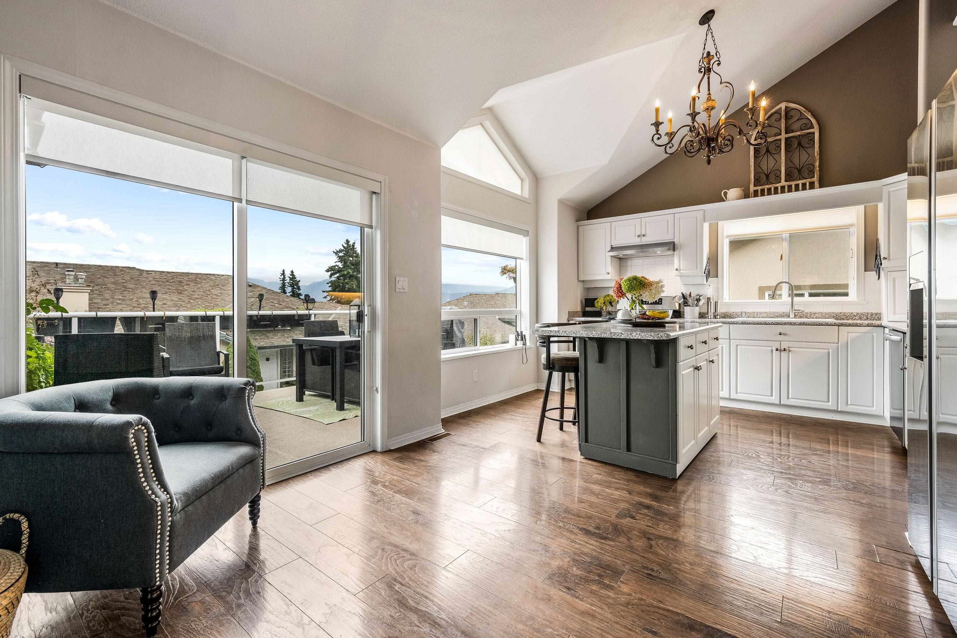 BEAUTIFUL end-unit w/STUNNING MOUNTAIN VIEWS! This 4 level split townhome offers a unique layout – walk in to the large foyer w/a bright spacious bedroom just off the entrance. Head up to the expansive family/rec room featuring a bar & full bath, IDEAL for entertaining! Up from there you will find the GORGEOUS living room w/MASSIVE windows, vaulted ceiling, & 2 sided gas f/p shared with the kitchen. Chef’s kitchen w/island bar, S/S appliances, extended cabinetry, newer lighting, & designer remote blinds – not to mention a large front deck w/BREATHTAKING views. Some more notable features are new vinyl plank in foyer, high-end laminate in main areas & extended back patio w/covered awning for privacy. FAB!