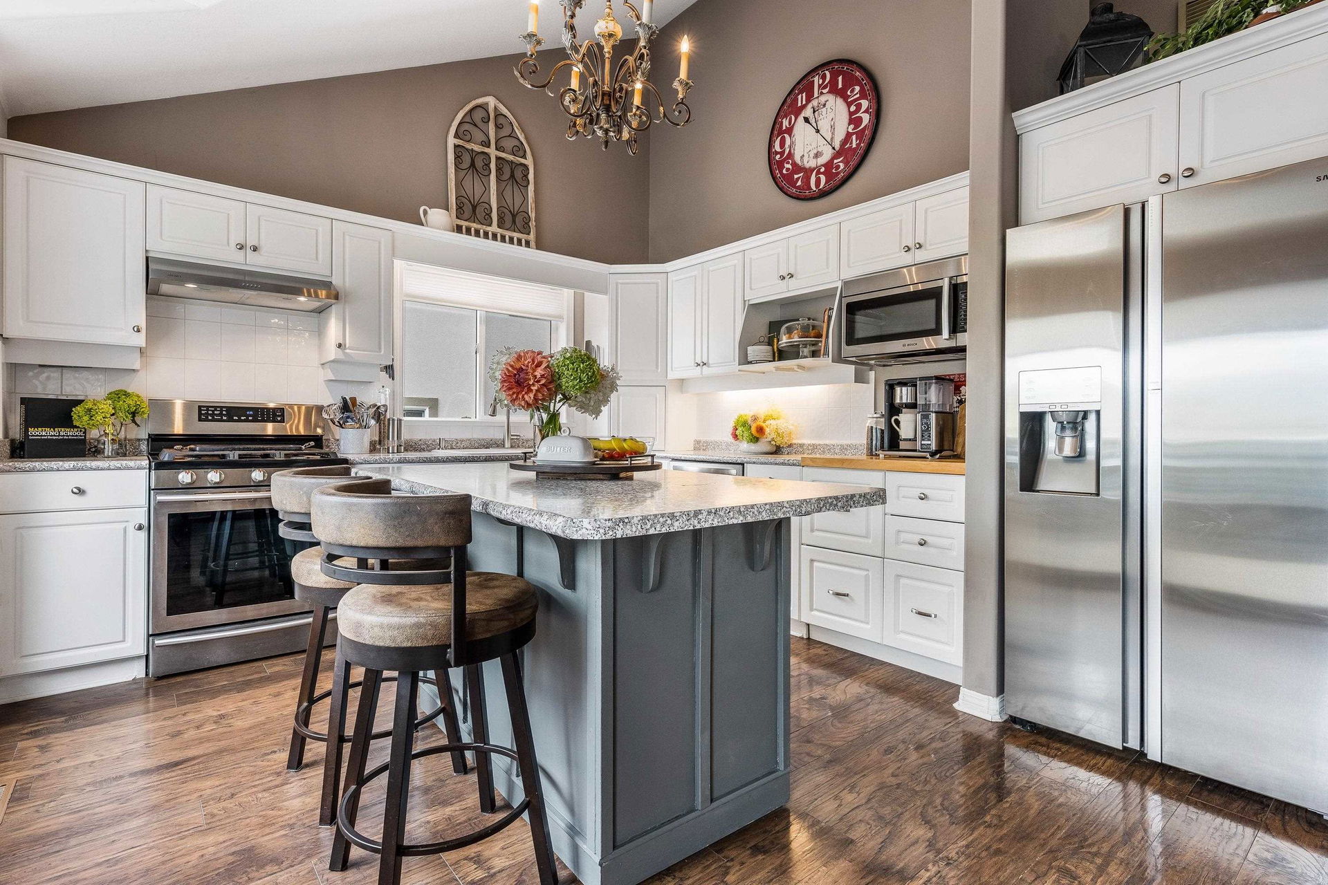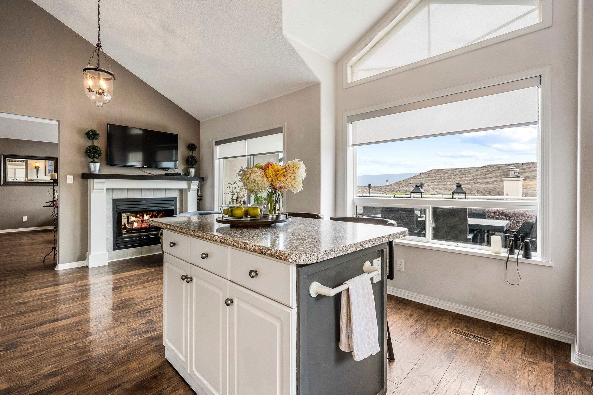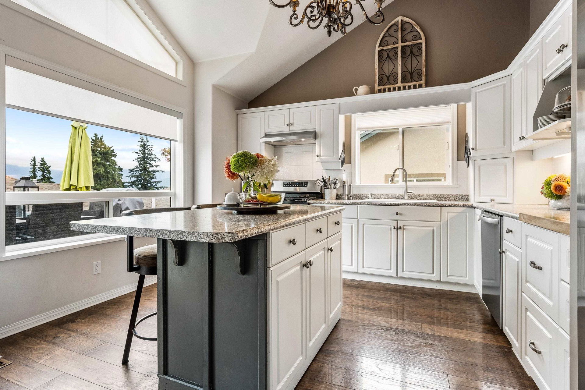 BEAUTIFUL end-unit w/STUNNING MOUNTAIN VIEWS! This 4 level split townhome offers a unique layout – walk in to the large foyer w/a bright spacious bedroom just off the entrance. Head up to the expansive family/rec room featuring a bar & full bath, IDEAL for entertaining! Up from there you will find the GORGEOUS living room w/MASSIVE windows, vaulted ceiling, & 2 sided gas f/p shared with the kitchen. Chef’s kitchen w/island bar, S/S appliances, extended cabinetry, newer lighting, & designer remote blinds – not to mention a large front deck w/BREATHTAKING views. Some more notable features are new vinyl plank in foyer, high-end laminate in main areas & extended back patio w/covered awning for privacy. FAB!