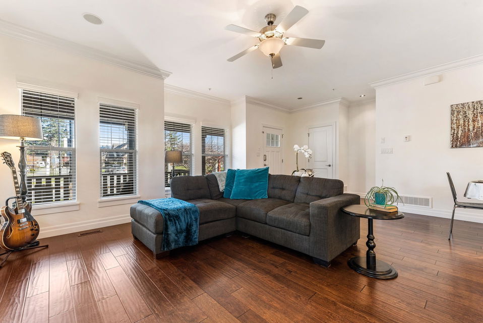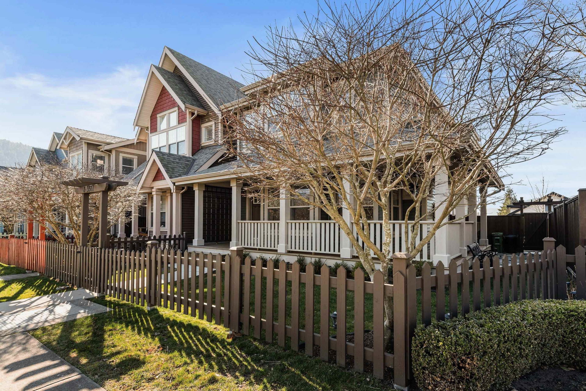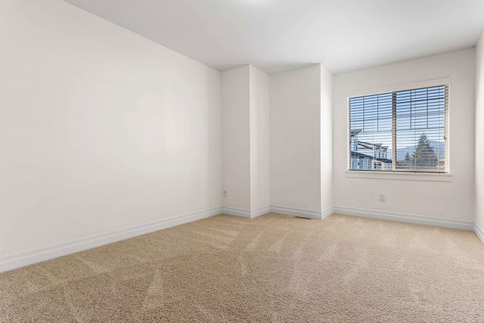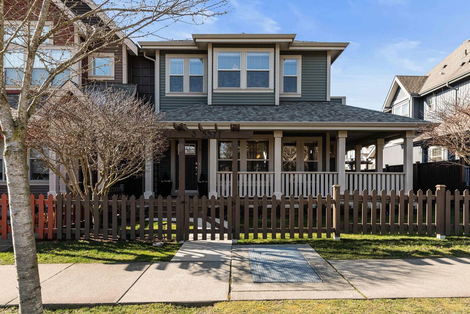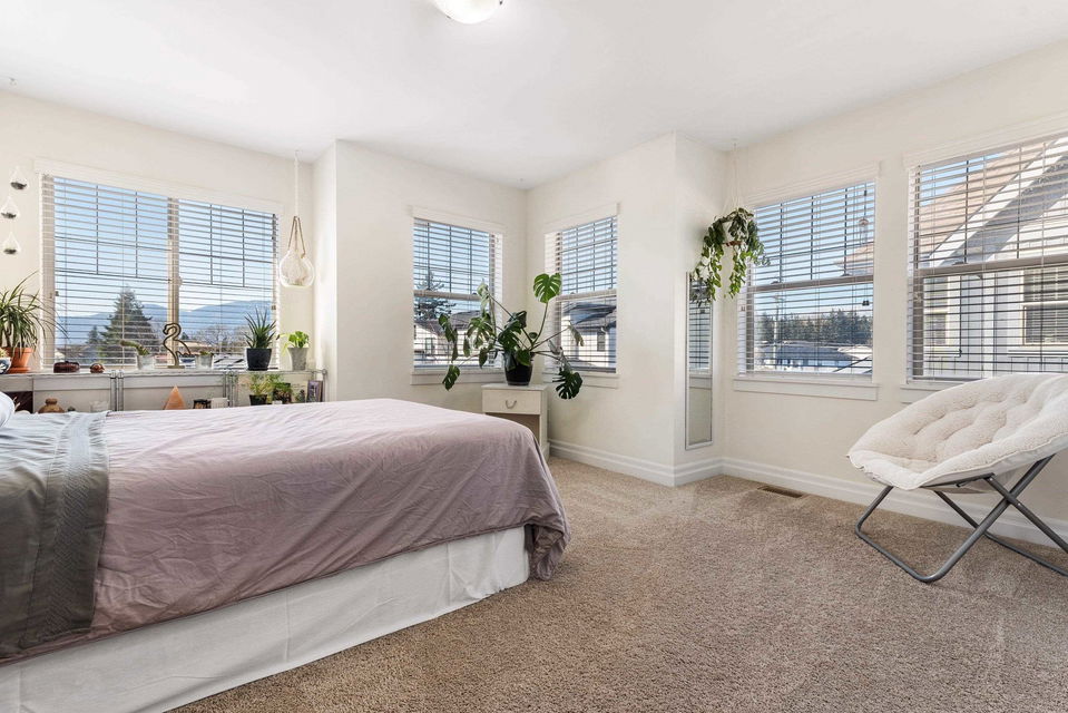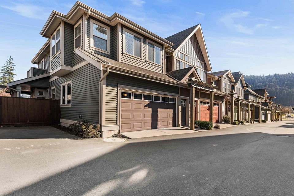 END UNIT TOWNHOME @ Ravens Roost across from Lindy’s Park! A small 10 unit family complex of duplex homes in famous Lindy’s Crossing- steps to Webster Park, UFV, Unsworth Elementary, & 2 blocks to the VEDDER RIVER TRAIL. When location matters- this is THE PLACE to live. Built in 2014, this home is MODERN & has been kept in 10/10 condition. Main floor w/ hardwood floors & open concept kitchen w/ updated GAS range & new fridge, & access to the WRAP AROUND PATIO & fenced yard. Upper floor features 3 bdrms incl master suite w/ his/her closets, private patio, & ensuite w/ dual vanities & large glass tiled shower. The partially finished bsmt has room for a 4th bdrm, rough-ins for 4th bathroom, & is a great play space for the kids. OVERSIZED dbl garage; fits a truck!