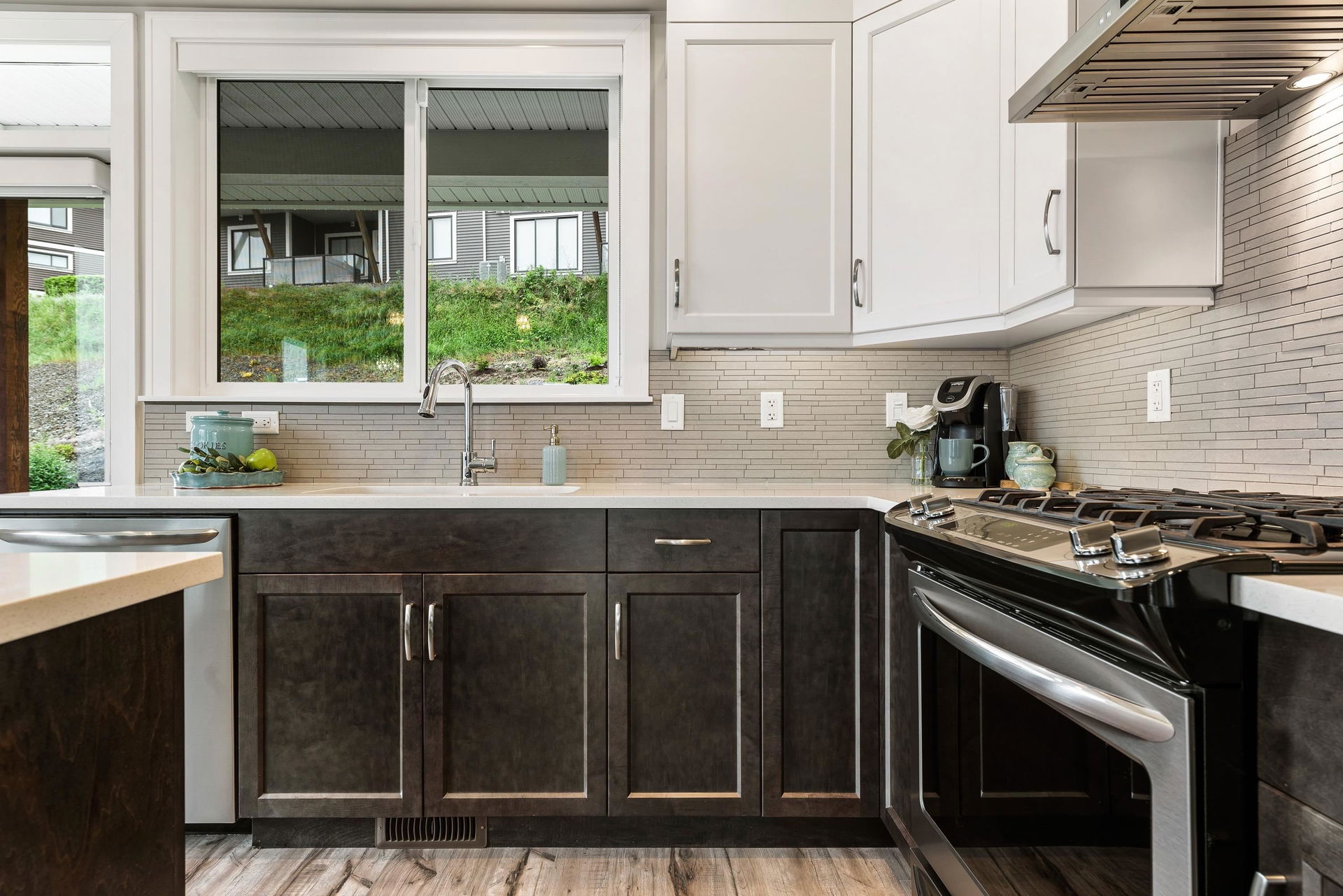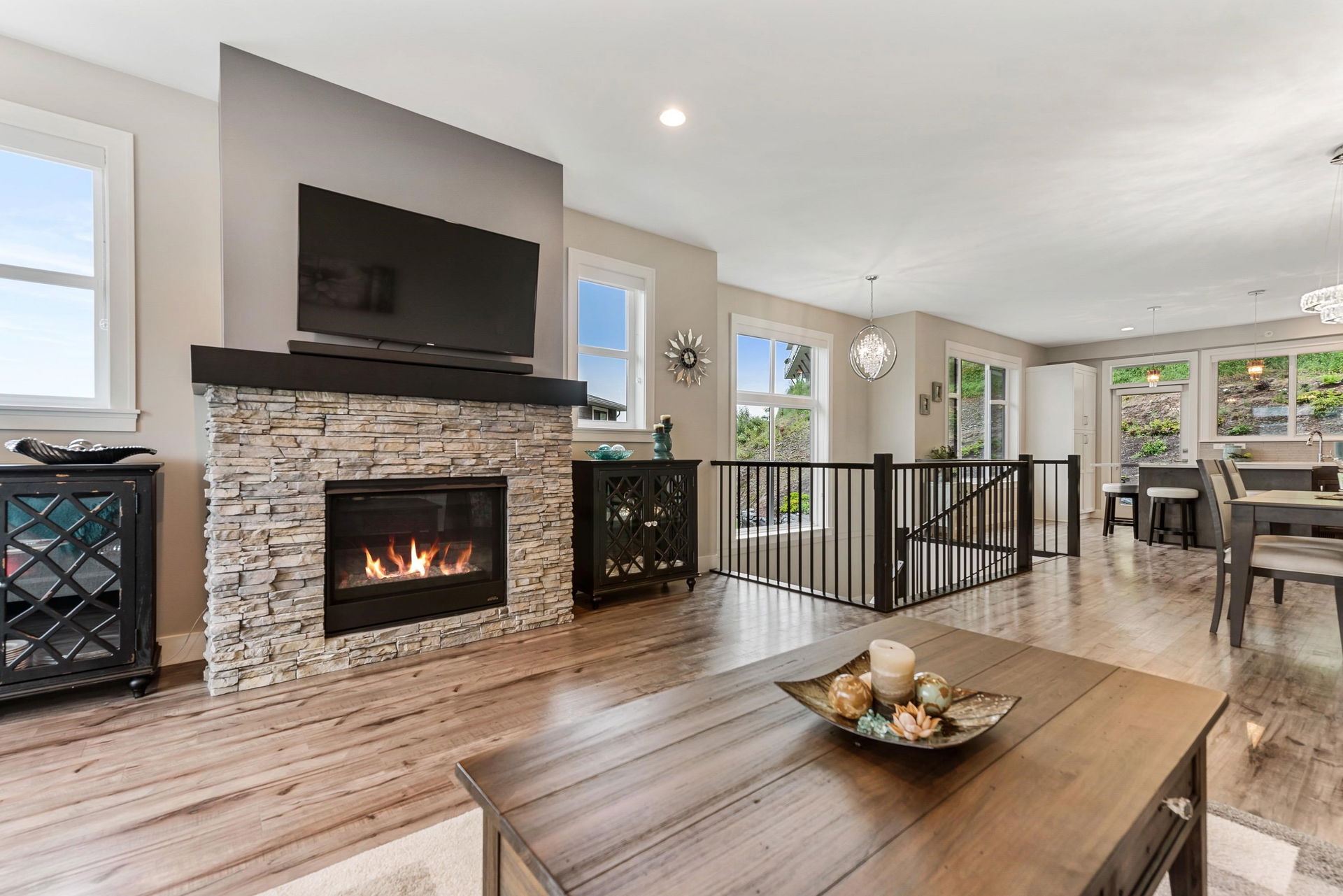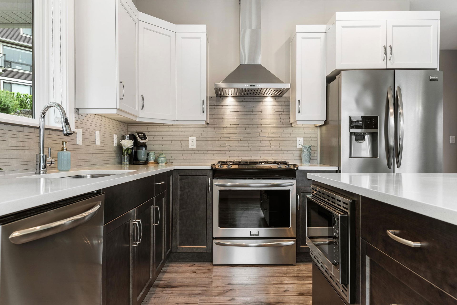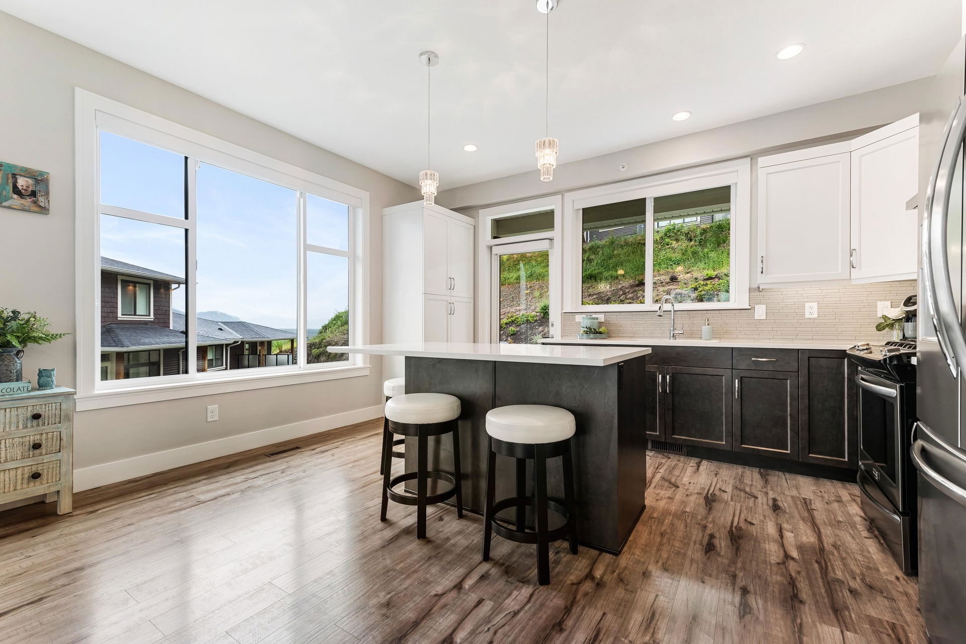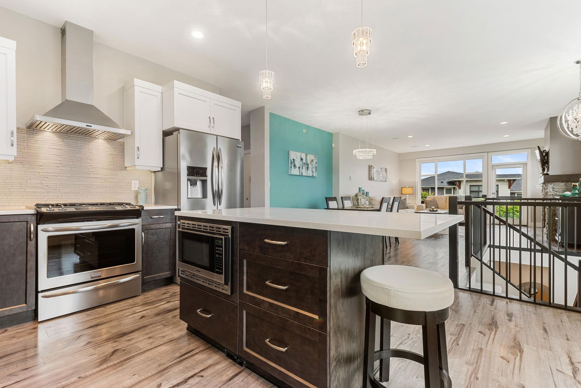 FRASER RIVER VIEWS! Welcome home and enjoy this 3 bdrm + den BRIGHT END UNIT w/ rare TRIPLE CAR GARAGE. Open concept high end kitchen w/ SS appliances, gas range, quartz counters, & b.i. pantry. Walk out access to a large covered patio w/ mountain & river views to the east. Spacious living room w/ rock faced gas fireplace & private patio w/ river views to the west to enjoy the gorgeous sunsets. Beautiful master bedroom w/ full 5 piece ensuite (dbl vanity & soaker tub) + a walk in closet! Entry level w/ welcoming foyer, office/den, and a large media room/ 3rd bedroom. Added highlights; central A/C, moisture proof laminate flooring, LED lighting throughout, Sonos speaker system, custom drapes in bdrms, b.i. vac, Heppa filter, & upgraded light fixtures, new carpets. Shows brand new & NO GST!