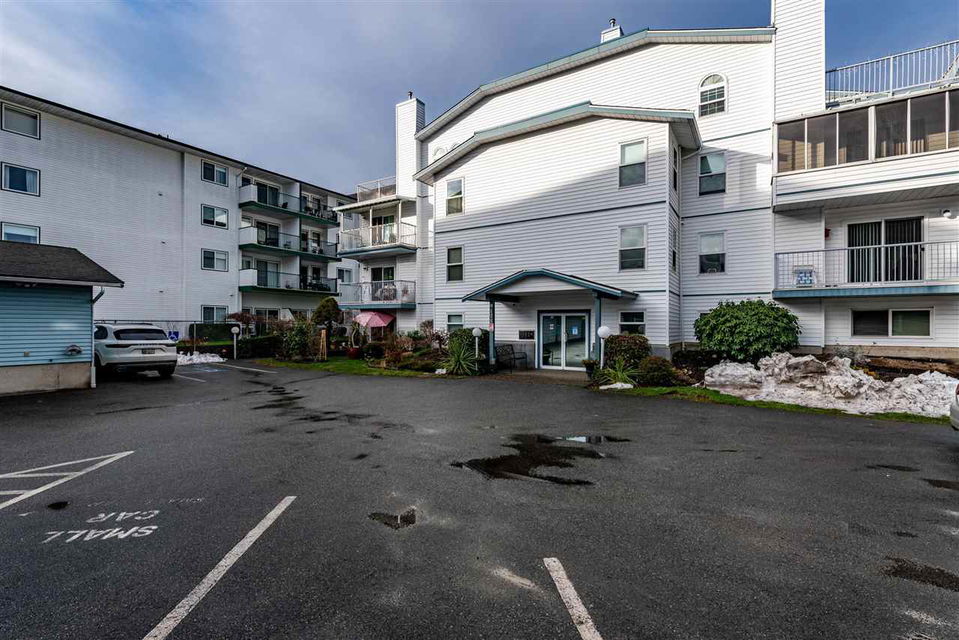 MUST SELL! PRICED SHARP TO MOVE! This 1101 sq ft CORNER SUITE in popular “Lombardy Lane” in Chilliwack has 2 LARGE bdrms, including a master w/ walk-in closet & ENSUITE WASHROOM! Spacious living room w/ gas fireplace & lovely sunset views over the mountains to the west. Laundry & nice sized storage room both located in-suite. Covered enclosed parking for 1 vehicle! Great sized kitchen w/ample counter space and storage. Amenities include a hobby shop, COVERED ENCLOSED PARKING FOR 1, & lounge area. This 55+ apartment is just steps away from the Leisure Centre, hospital, pharmacies, shops, Cultural Centre & Much More!! The strata fees includes hot water, natural gas, garbage pickup & water/sewer. 55+ No Pets or Rentals Allowed. Open to offers- HURRY!