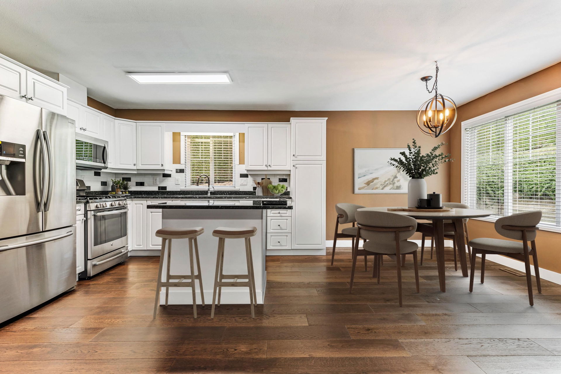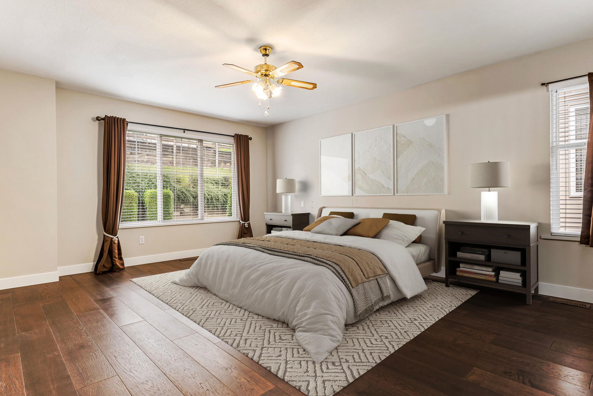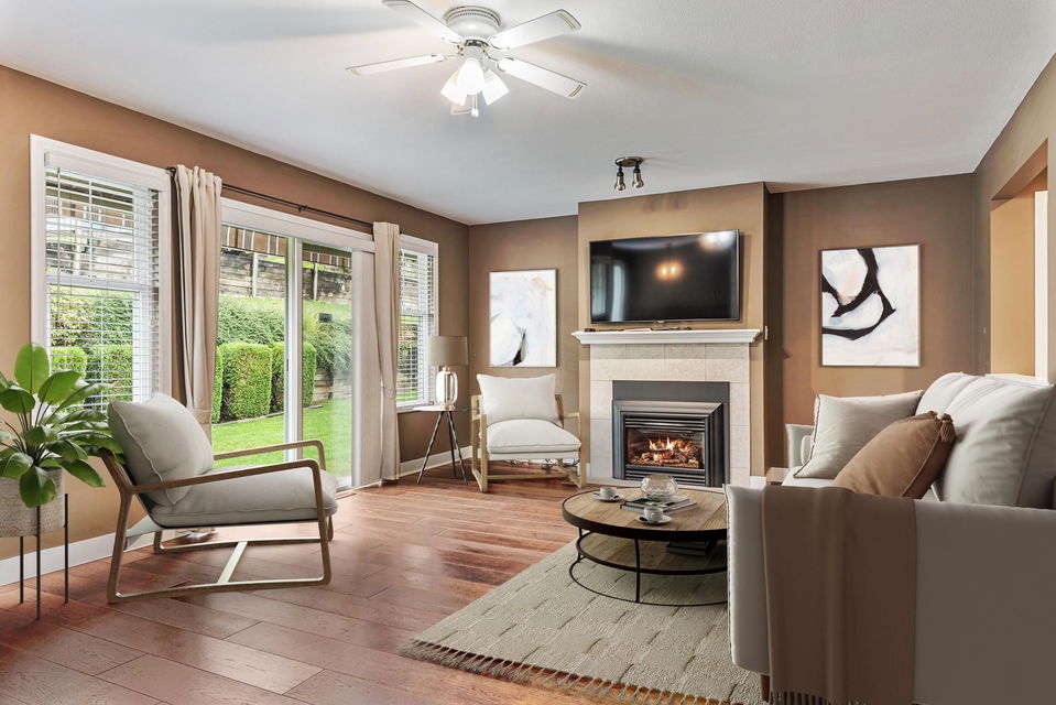 RENOVATED RANCHER W/ LOFT in sought after Thom Creek Ranch! This 55+ gated community sits on stunning Promontory with beautiful grounds, trails, and views. This 2065 sq ft home features all MAIN FLOOR LIVING w/ NEWER engineered HARDWOOD flooring, updated baseboards, modern light fixtures, & bright WHITE kitchen w/ QUARTZ counters & SS appliances. TWO large living spaces on main w/ gas fireplaces, built in speakers, NEW ROOF, 1 yr old central AC, NEW hwt & lovely walk out access to the backyard from the main- easy for pets WITH remote control Awning over patio! Primary suite w/ walk-in closet + 5 piece ensuite w/ dual vanities & shower w/ body jets. Upper room w/ loft space PLUS a second bedroom + full bathroom. WONDERFUL STRATA w/ clubhouse & located only 5 mins to all major amenities!