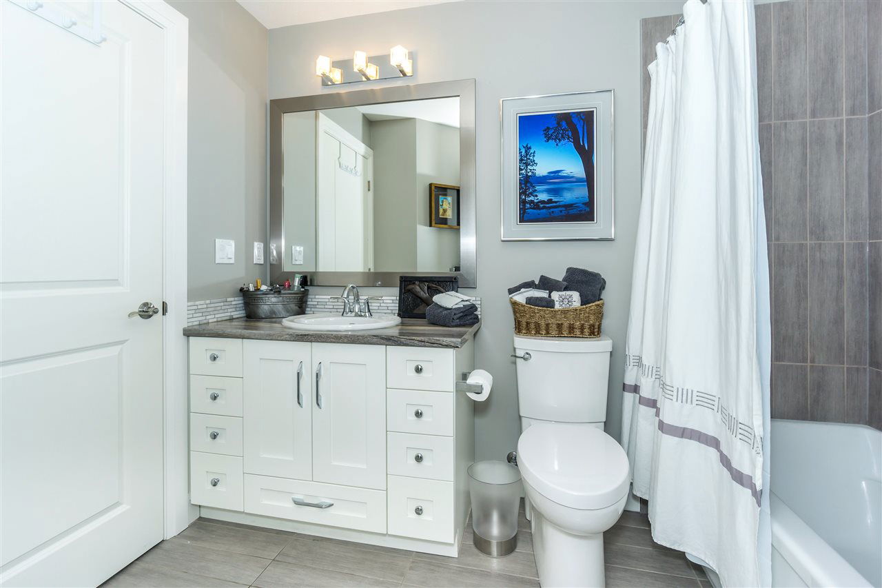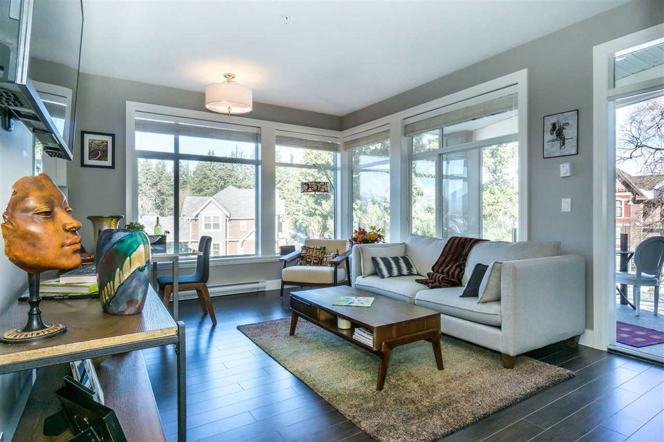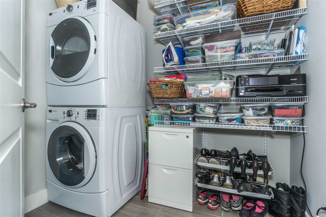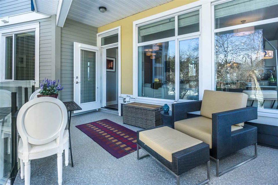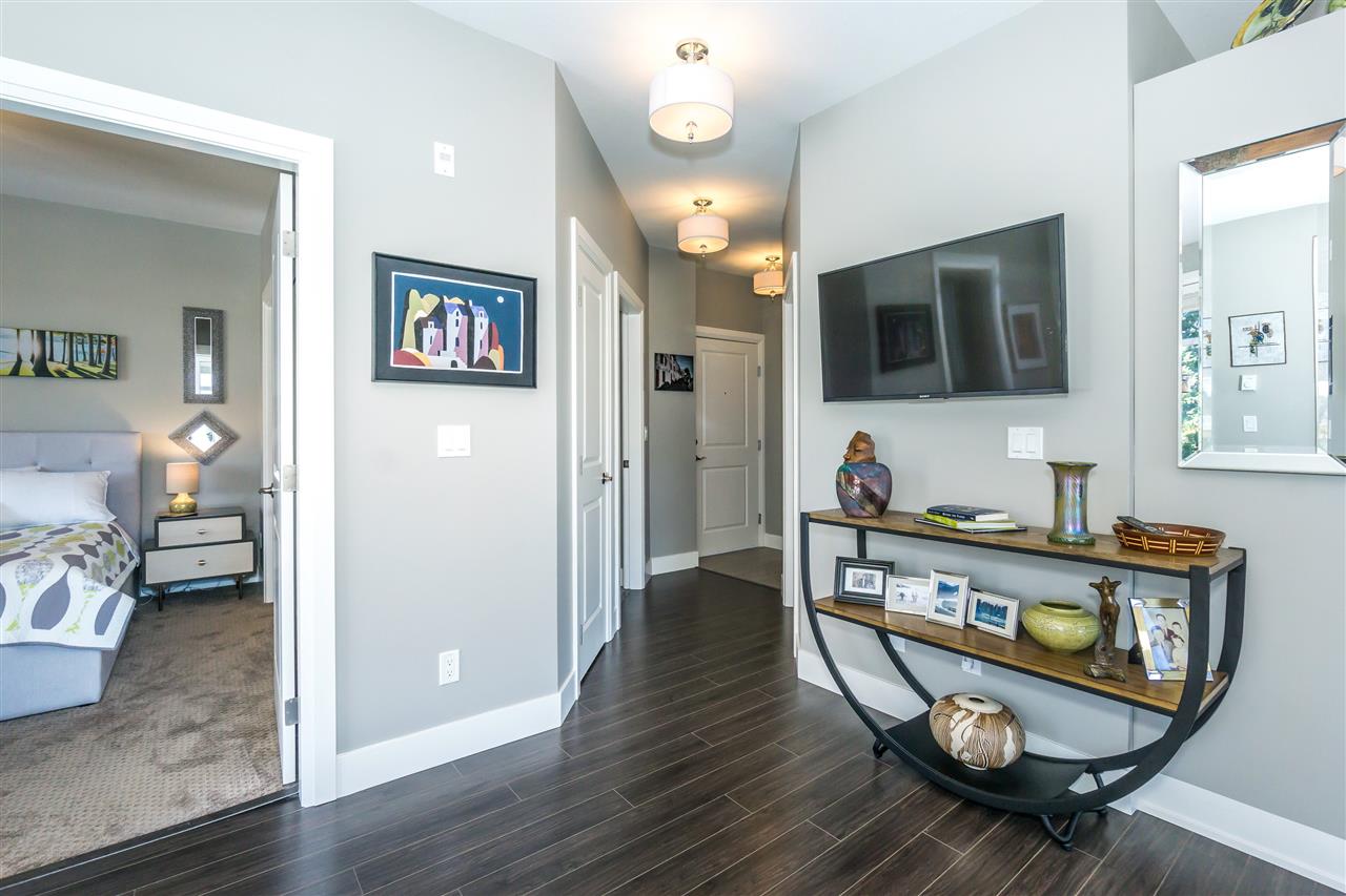 CORNER CONDO @ THE RADIUS in award winning GARRISON CROSSING. This gorgeous BRIGHT home features a massive covered patio overlooking the Boulevard & greenspace- a great location for year round enjoyment! Chic kitchen w/ SS appliances, quartz counters, tiled backsplash, undercabinet lights, & added pull out drawers (incl. spice rack!) for convenience. Master bedroom w/ added Pax wardrobe & jack and jill ensuite complete w/ soaker tub & tiled floors. Modern paint, 2″ faux wood blinds, high end laminate flooring, & 9′ ceilings. AMAZING building- steps to Garrison Village, UFV, & the Vedder River Trail! Guest suite, storage locker, & underground parking. Low $174/month strata fees, all ages, rentals, & pets allowed.