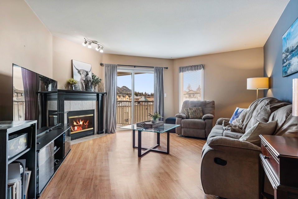 TOP FLOOR 3 BEDROOM & 2 BATHROOM CONDO in Sardis! This 1239 sq ft home is the perfect place to call your new home! Centrally located in walking distance to Garrison Crossing, Vedder River, shops, parks, schools … ALL! 3rd floor property with mountain & western sunset views. Laminate flooring, nice kitchen w/ tiled backsplash, living room w/ gas fireplace & access to private patio. Master bedroom w/ full ensuite washroom & walk through closet. In suite laundry and covered parking! All ages, no rentals, & pets w/ restrictions. BEST DEAL IN SARDIS!