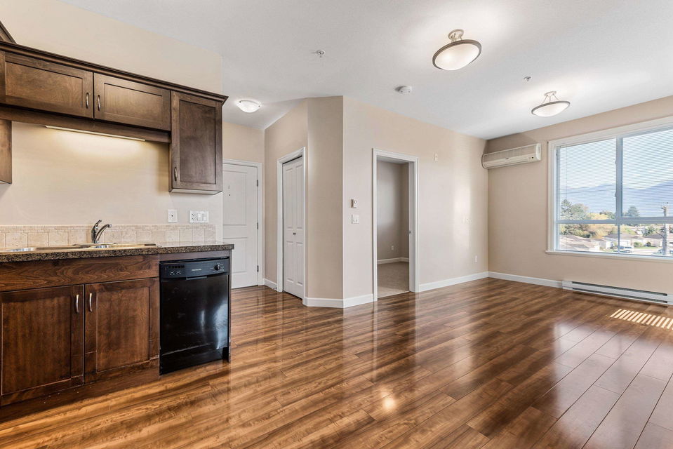 Welcome to Auburn Retirement Living! This resort like community features seniors independent living in the heart of Chilliwack. This third floor CORNER SUITE has MOUNTAIN VIEWS and SOUTH EASTERN VIEWS! TWO BEDROOMS, in suite laundry, & FULL kitchen! Air conditioning and a lovely open concept layout. One underground parking included. The Auburn Seniors Residence has a variety of unique amenities to create a fun, vibrant, social and active living environment for residents; including a 50’s inspired hubcap diner, a European style patio, and weekly outings to participate in. Mandatory Meal Package with three meals per day, housekeeping once a week & a personal call pendant ($1543 per month). Come find out how easy and FUN your retirement is about to become!