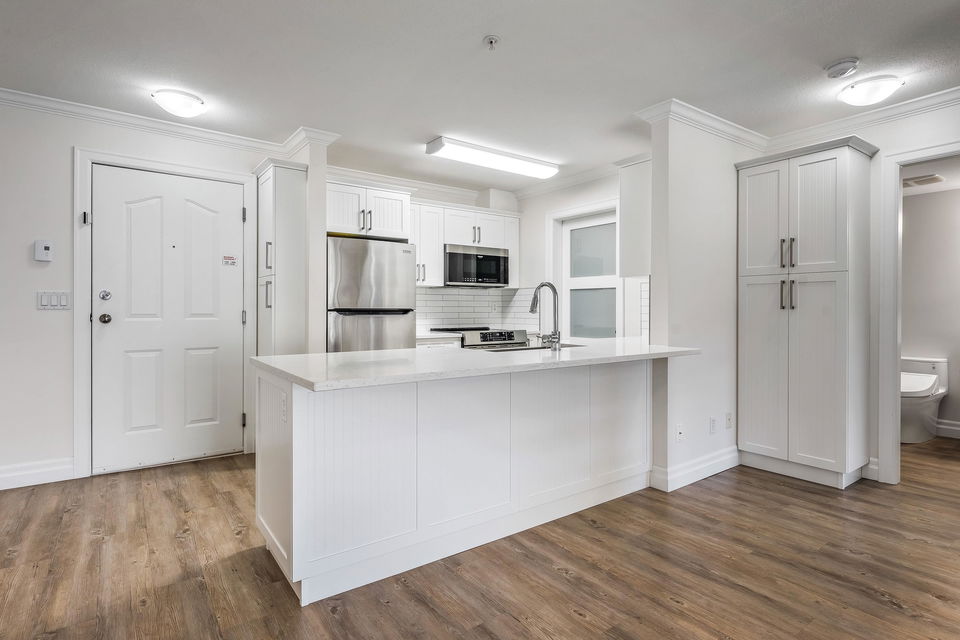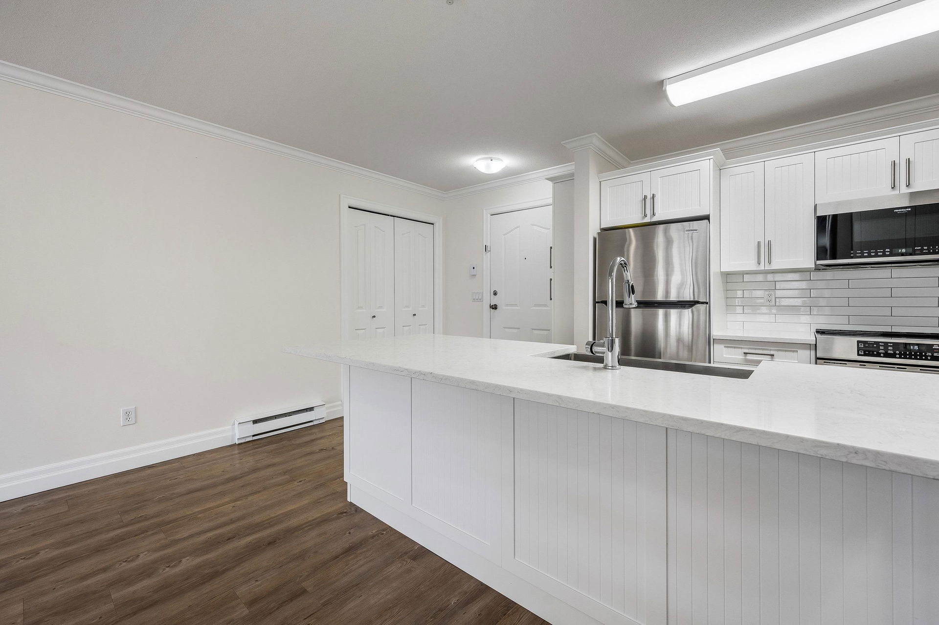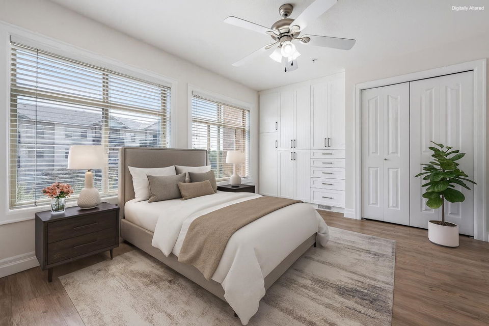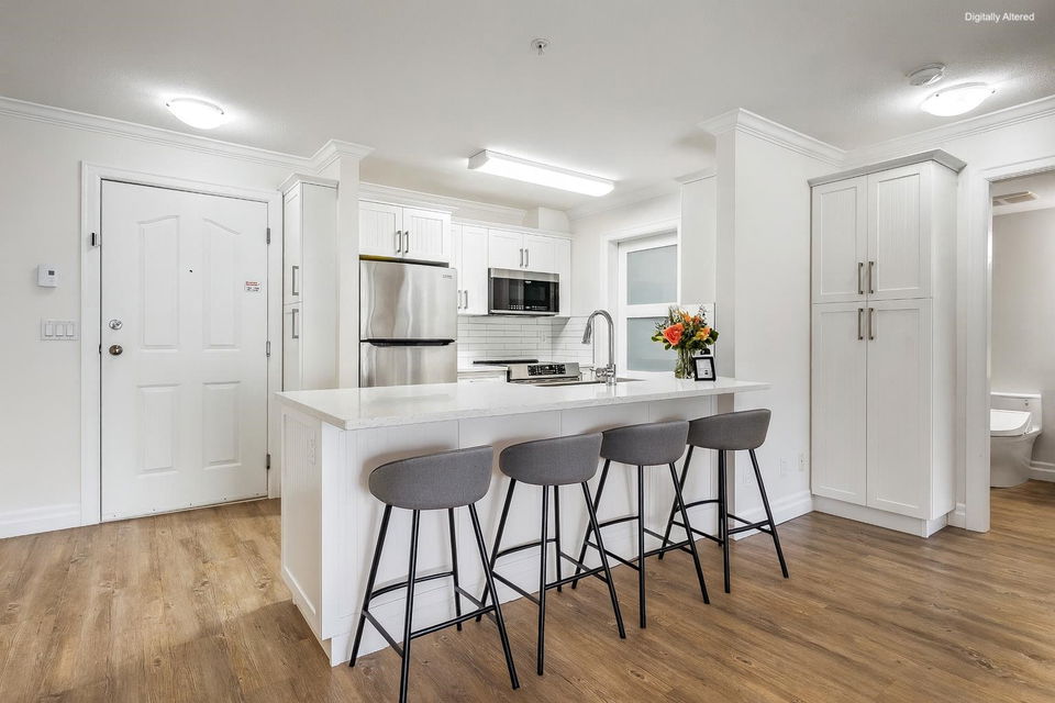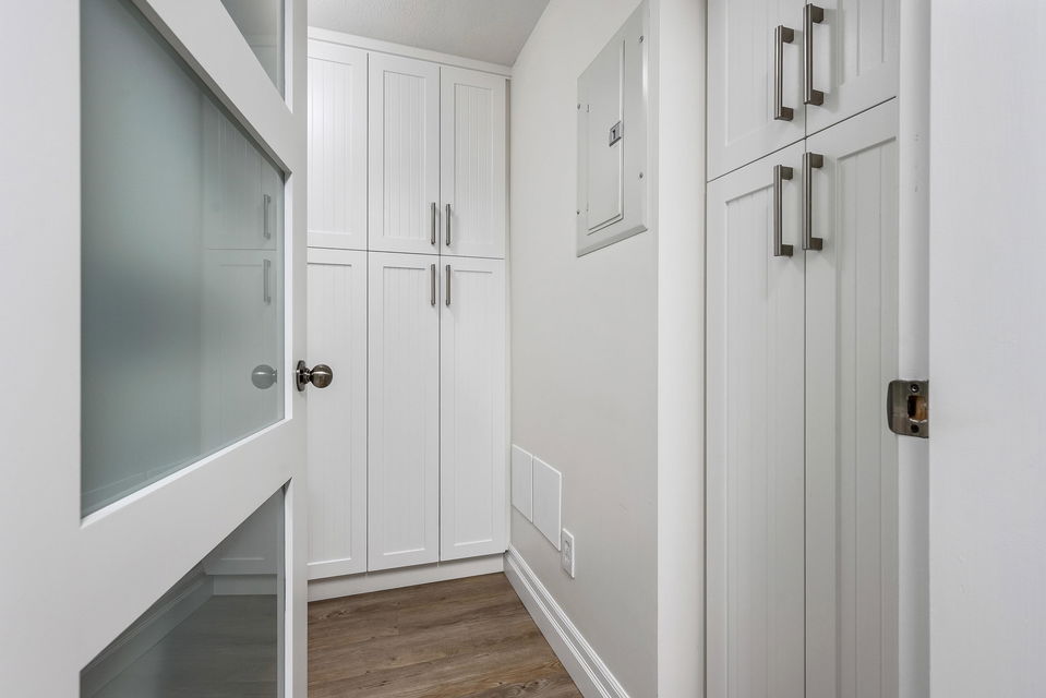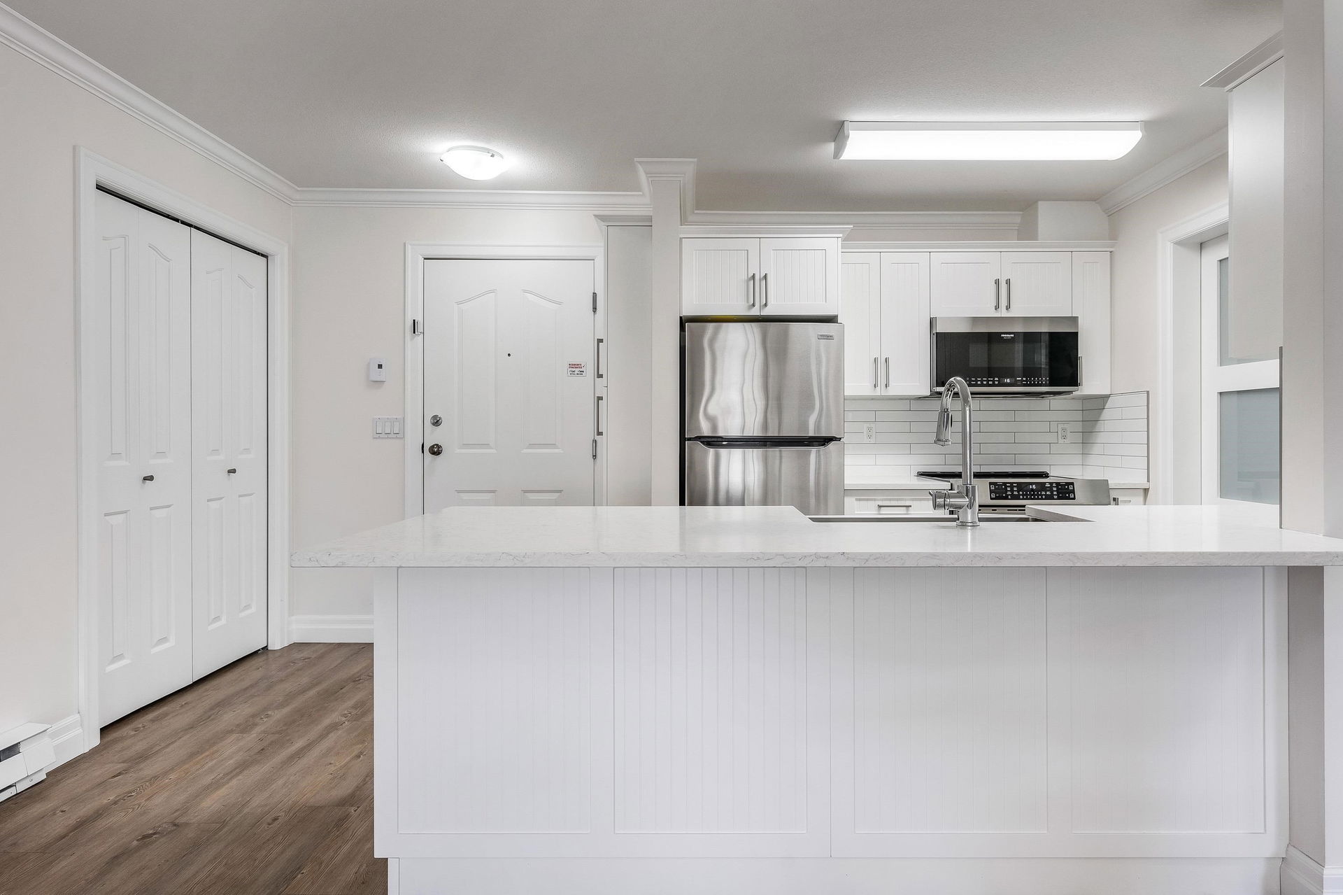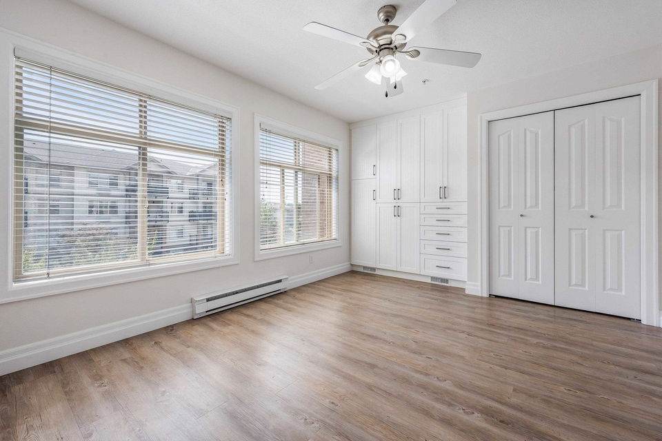 FABULOUS LOCATION! Ideally situated near shopping, schools, recreation, AND transit, this bright & airy 2-bedroom condo offers INCREDIBLE value. Step into a SPACIOUS open-concept living area bathed in natural light, featuring a generous kitchen w/newer SS appliances, quarts countertops, & AMPLE counter space. The versatile laundry room includes shelving AND room for pantry storage. STUNNING primary suite boasts large windows, a roomy closet w/built-in cabinets, & a calm, inviting ambiance. A second bedroom sits privately across from a FULLY RE-DONE 4pc bathroom w/walk-in glass shower. Fresh paint, newer vinyl plank, & added cabinets are just some other highlights to this FABULOUS unit. Unwind on the covered patio at day’s end! Ready to fall in love? Come see it for yourself!